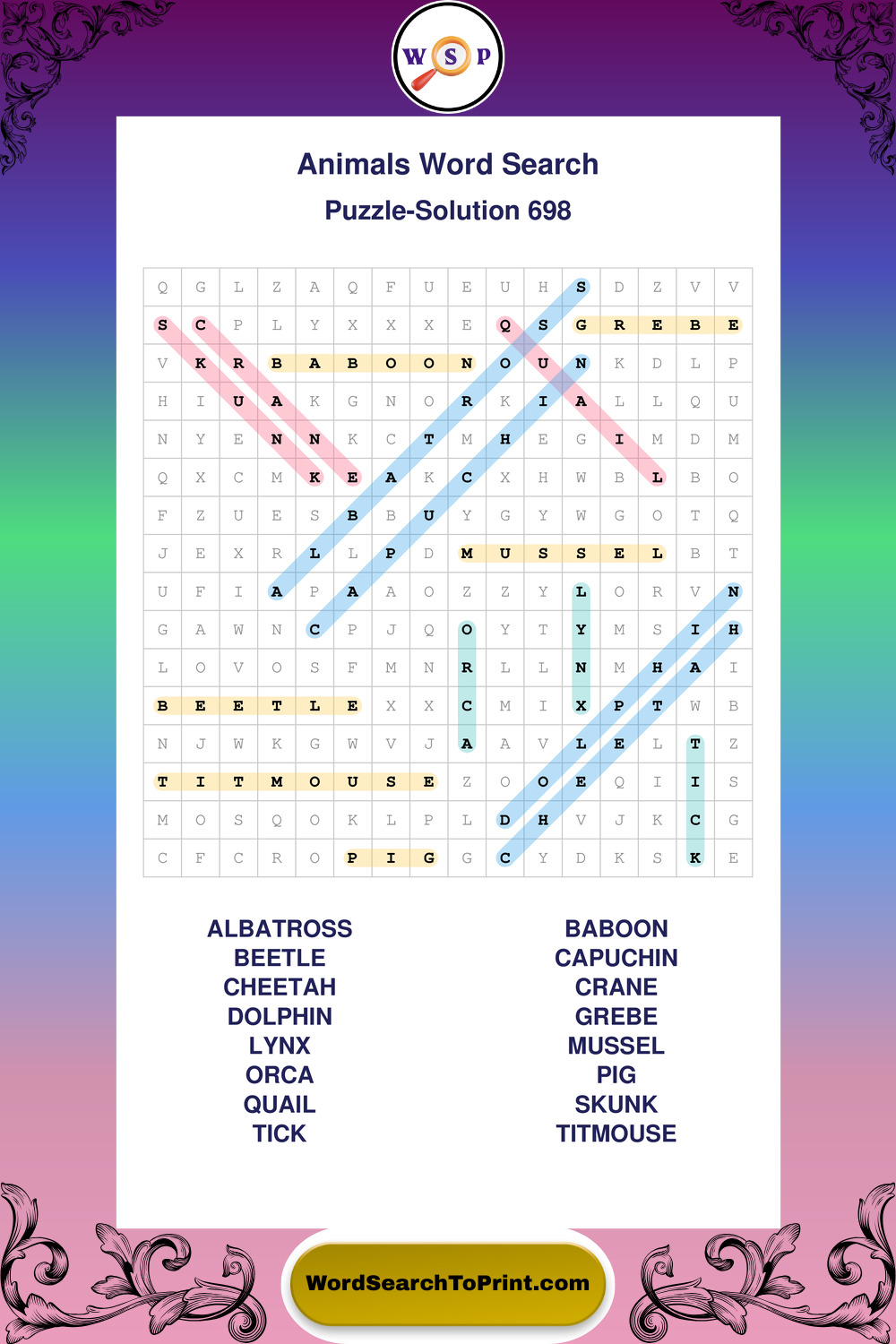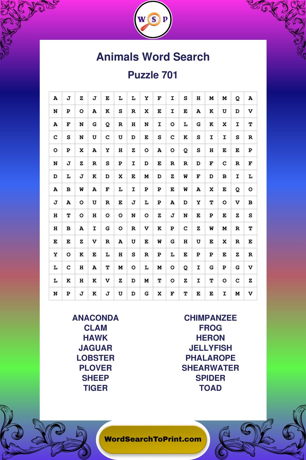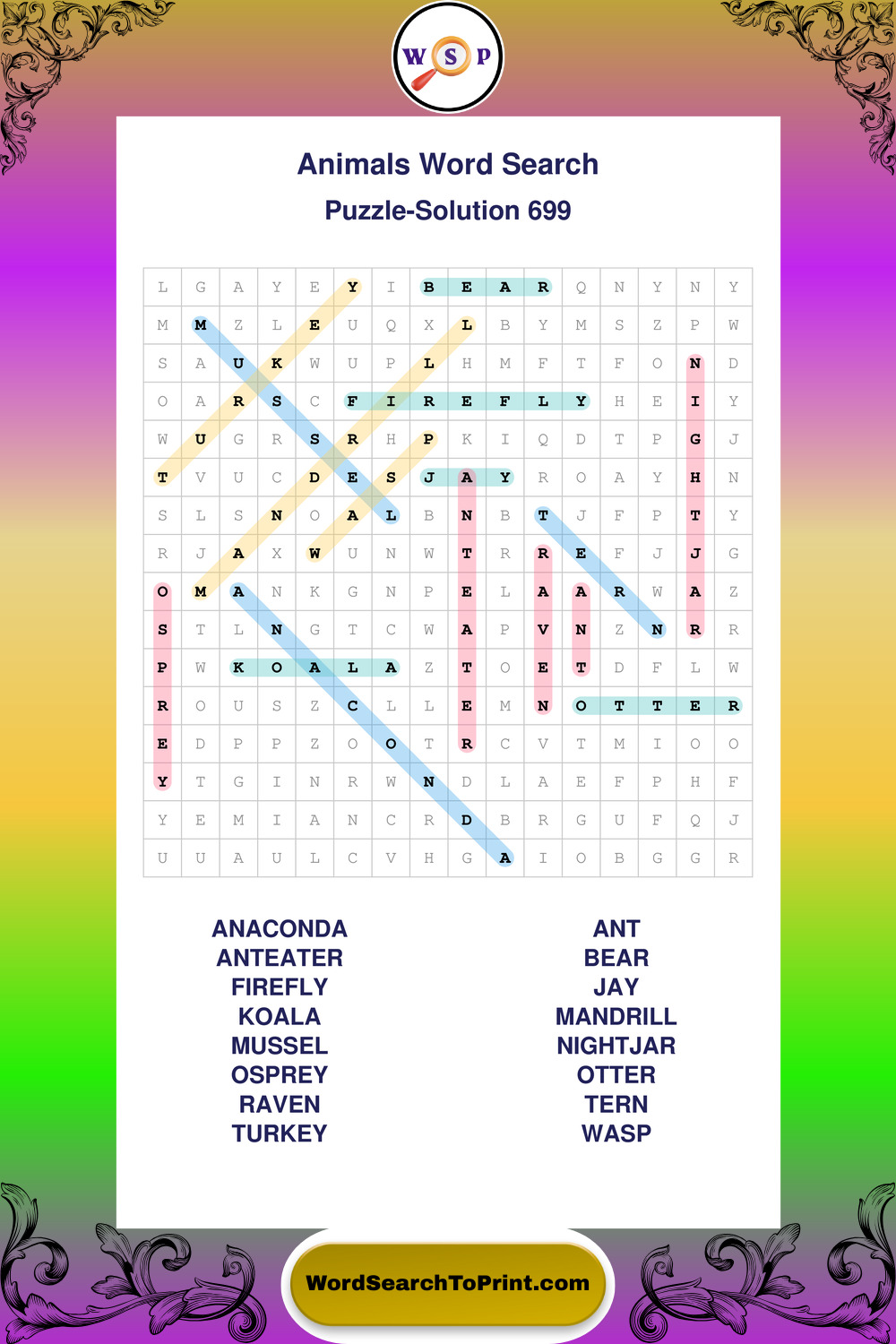 Who Are These Animals Word Search Puzzles For?