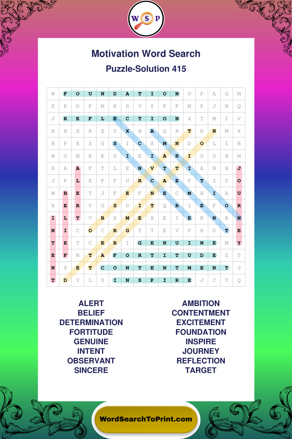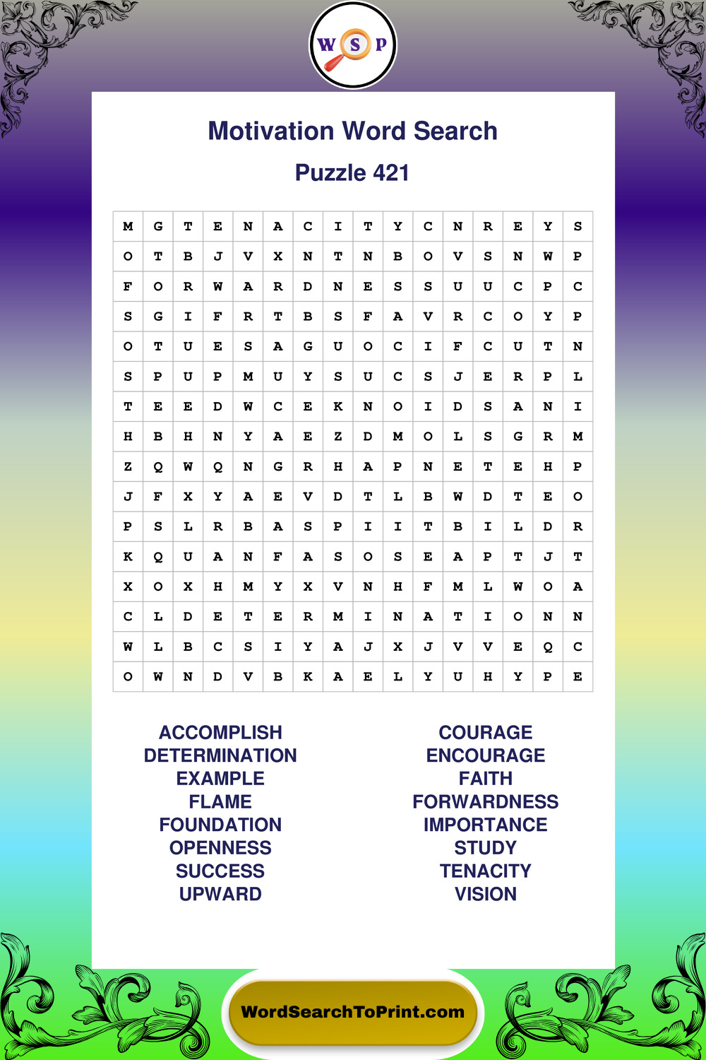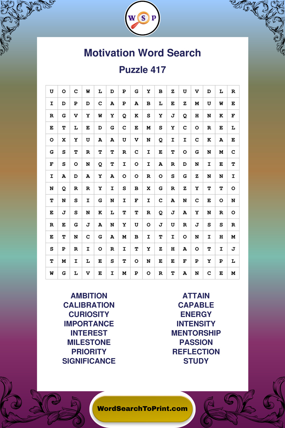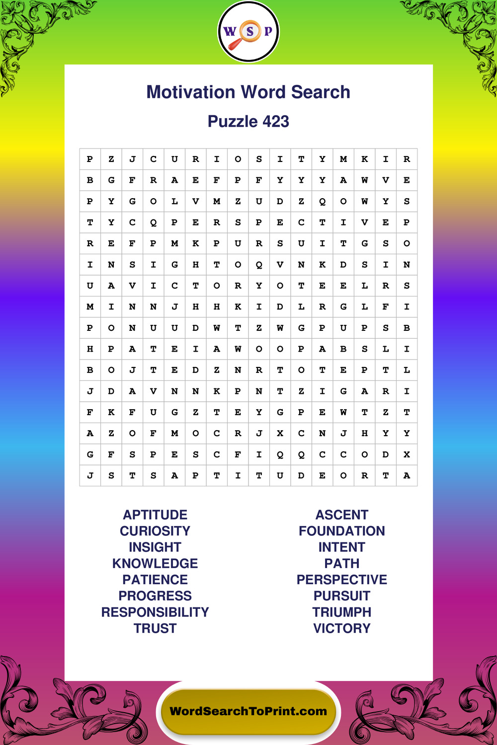 These puzzles focus on motivation, goal setting, life lessons, inspiration, and personal development concepts. They offer a structured and engaging way to explore this topic while strengthening concentration and vocabulary recognition. You may also enjoy our Inspiration word search puzzles and Wisdom word search puzzles.