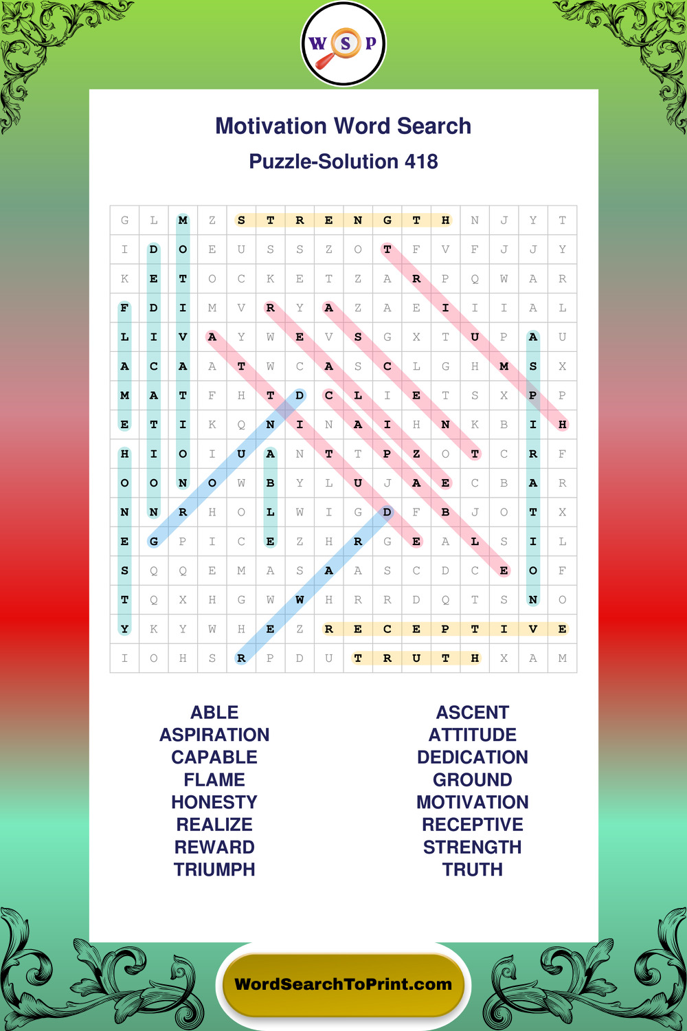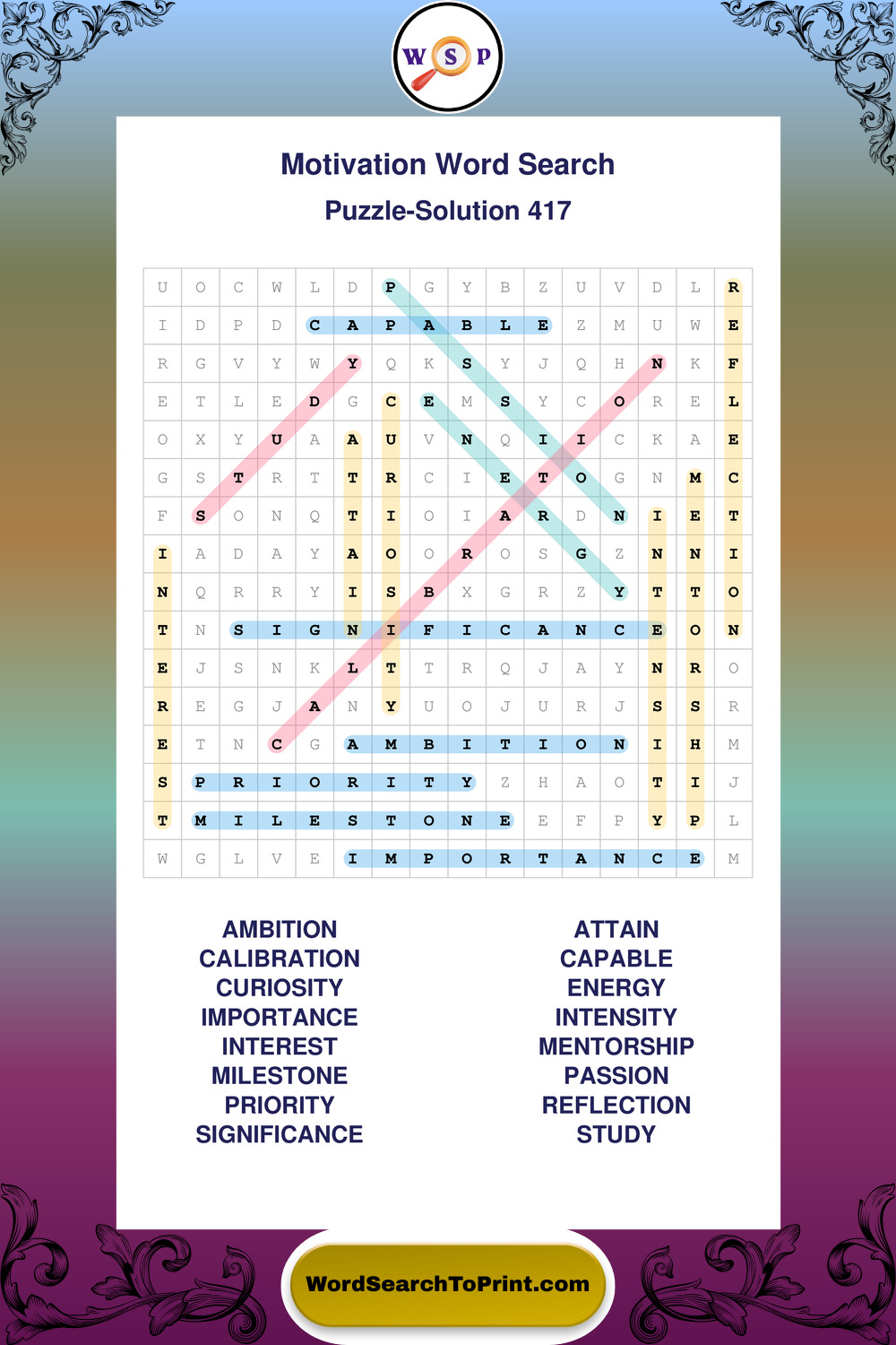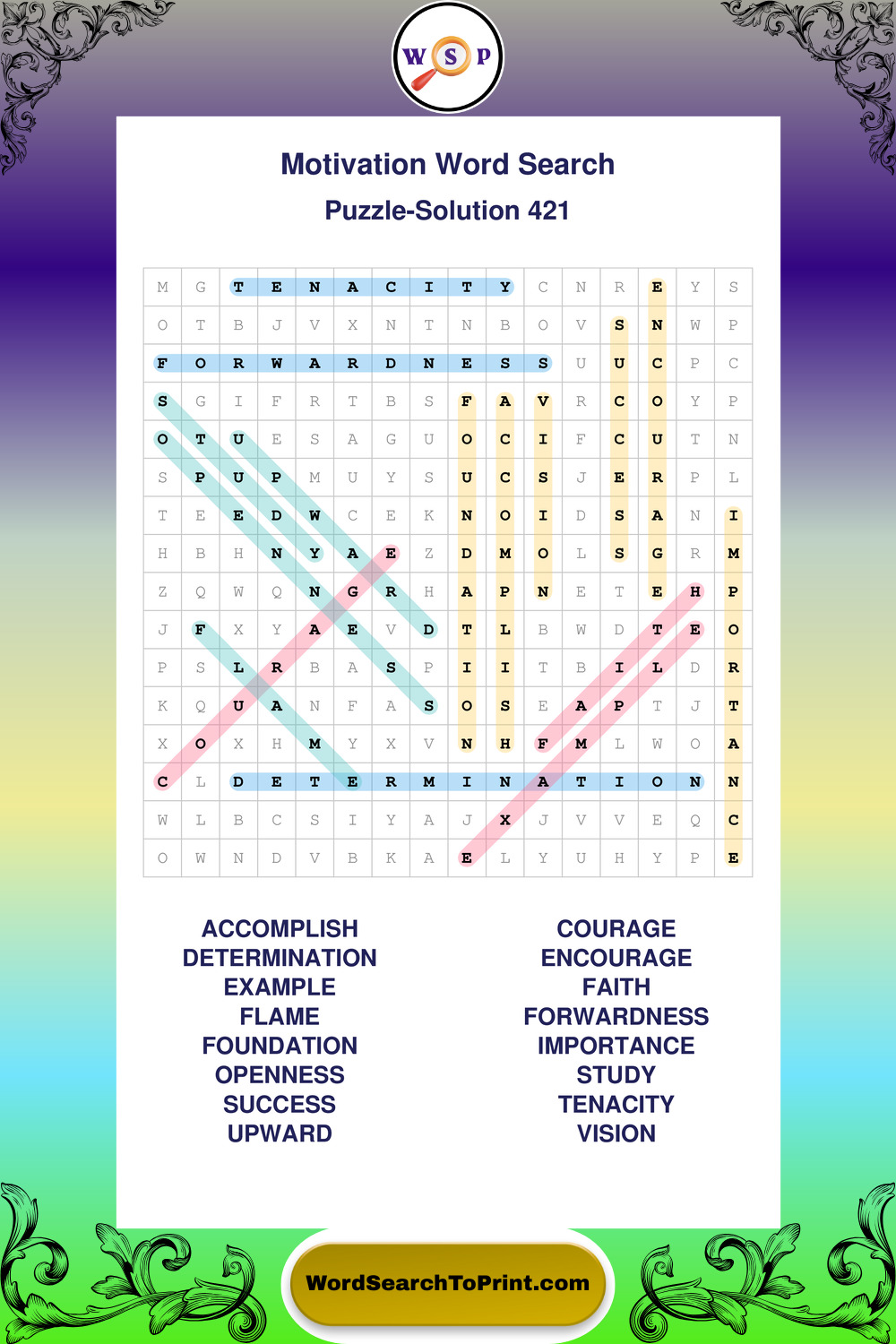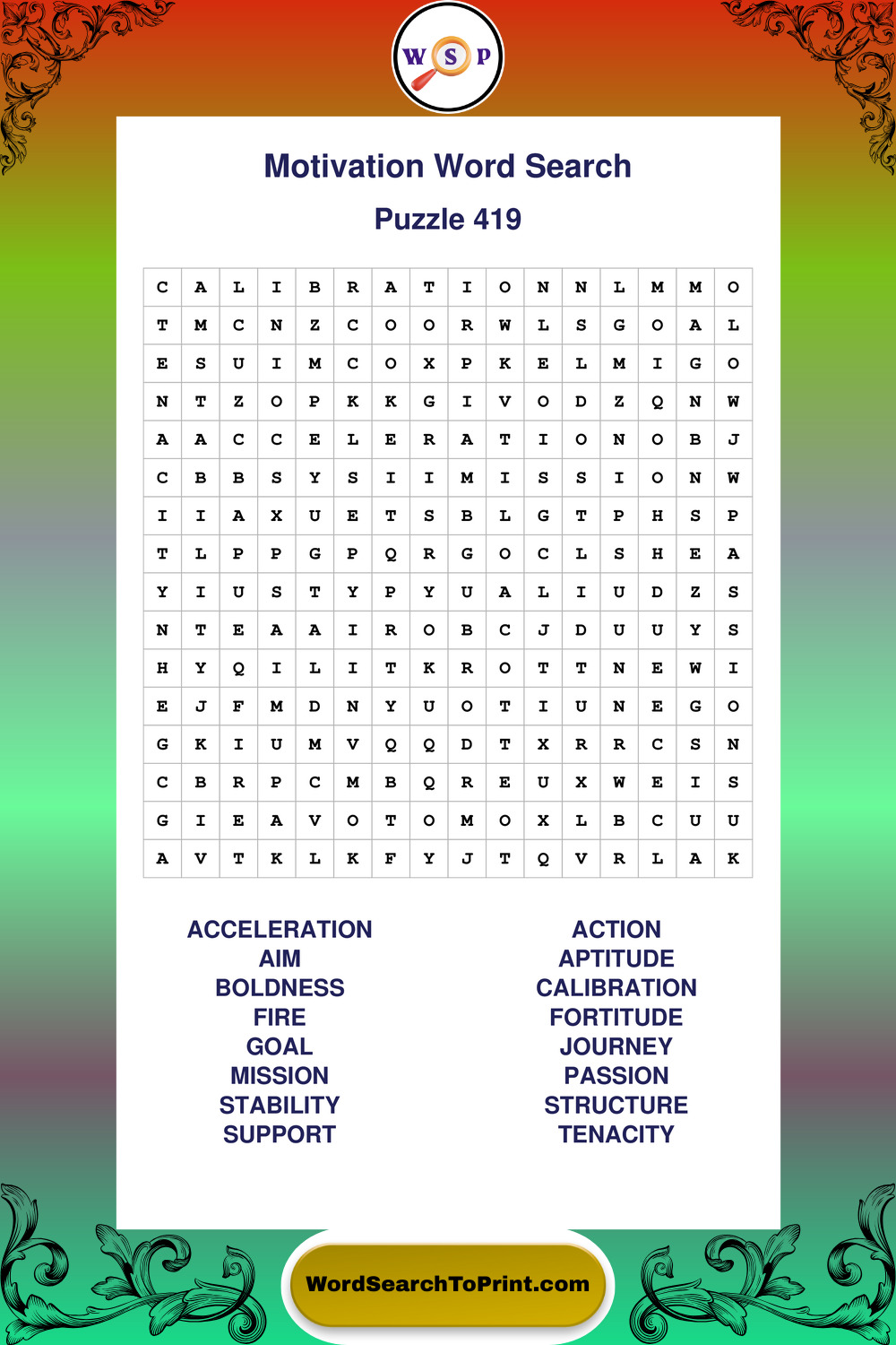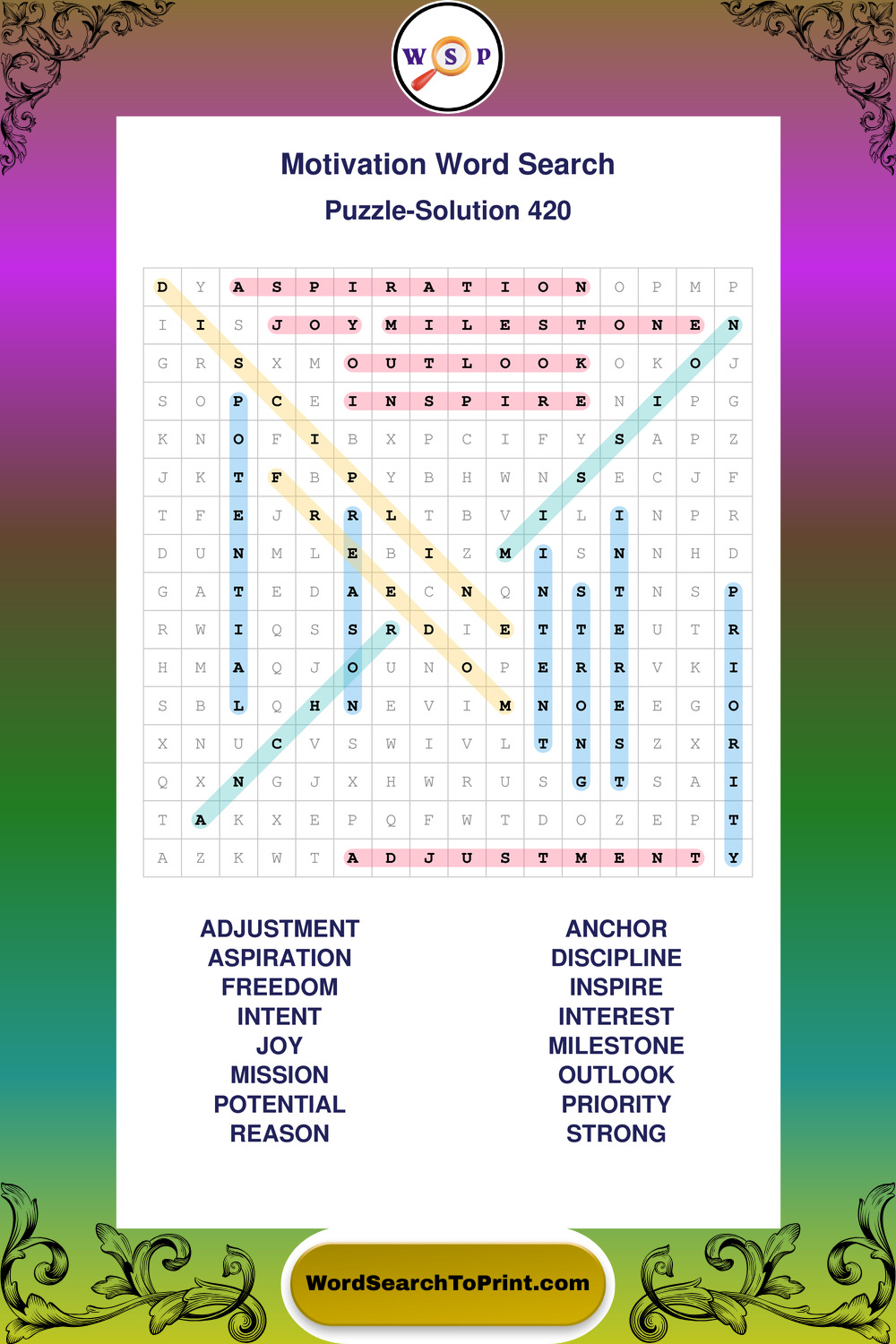 These puzzles focus on motivation, goal setting, life lessons, inspiration, and personal development concepts. They offer a structured and engaging way to explore this topic while strengthening concentration and vocabulary recognition. You may also enjoy our Inspiration word search puzzles and Wisdom word search puzzles.