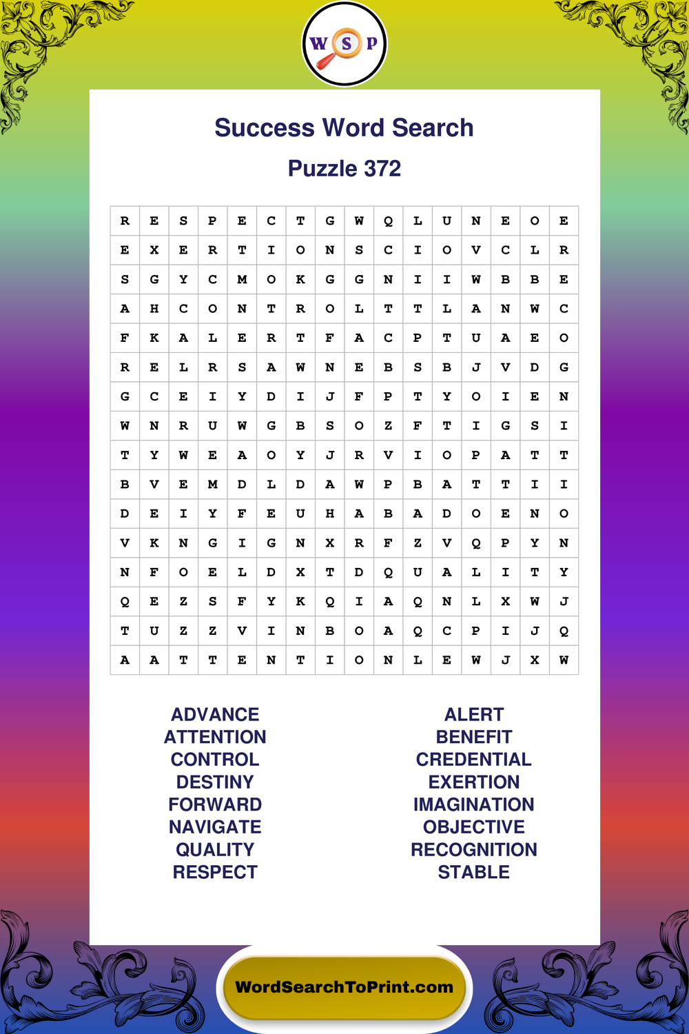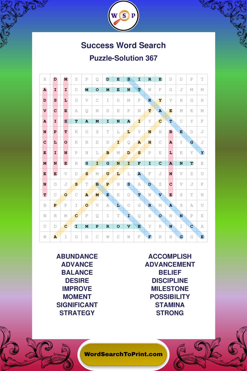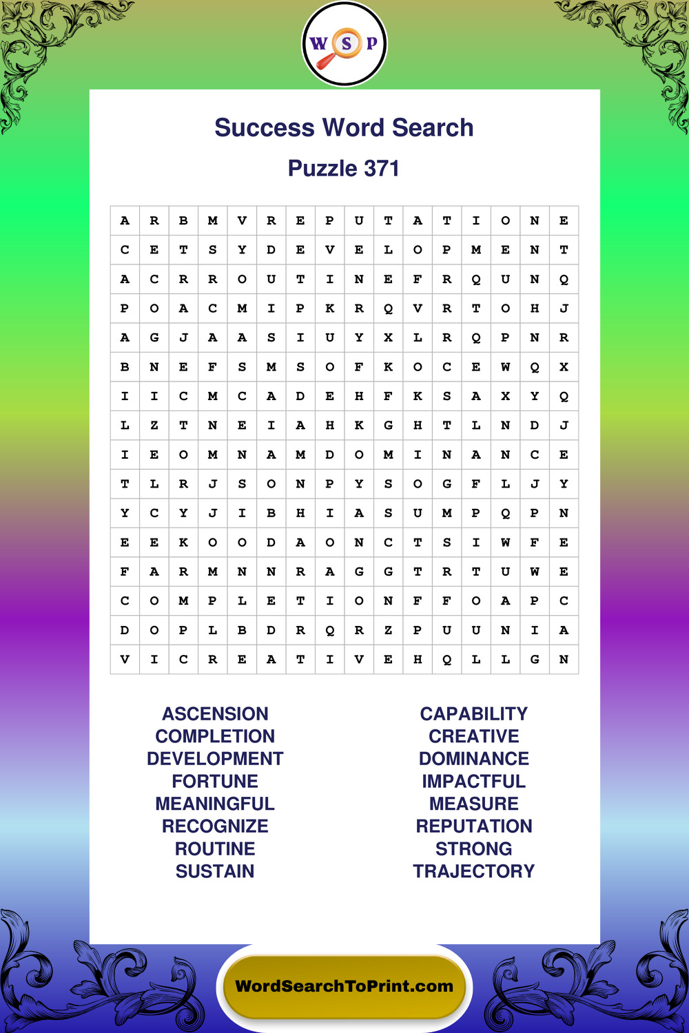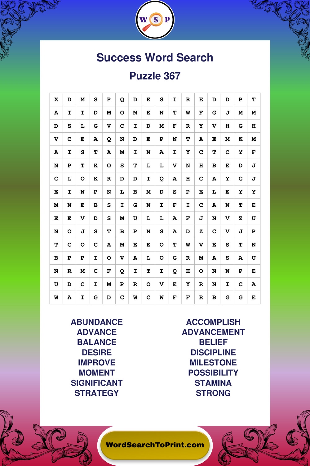 Printable Success Wordsearch Puzzles