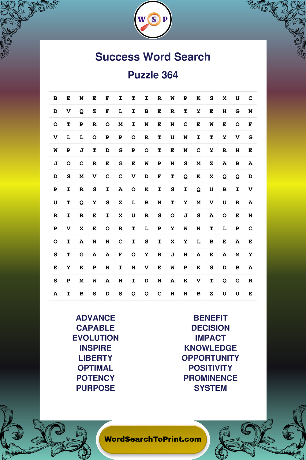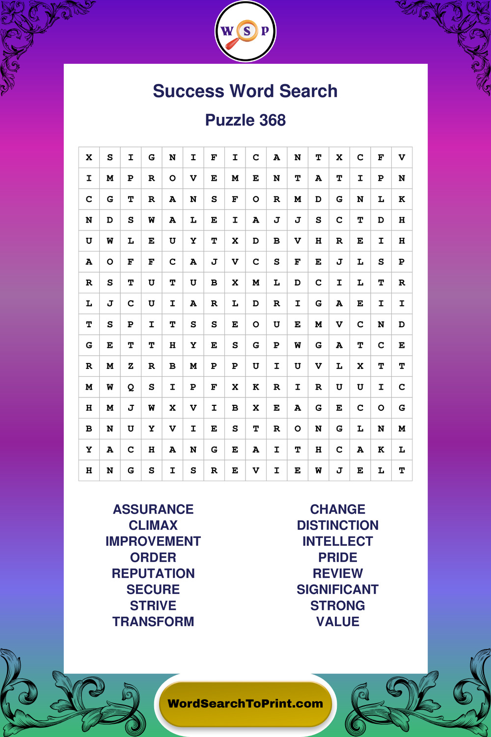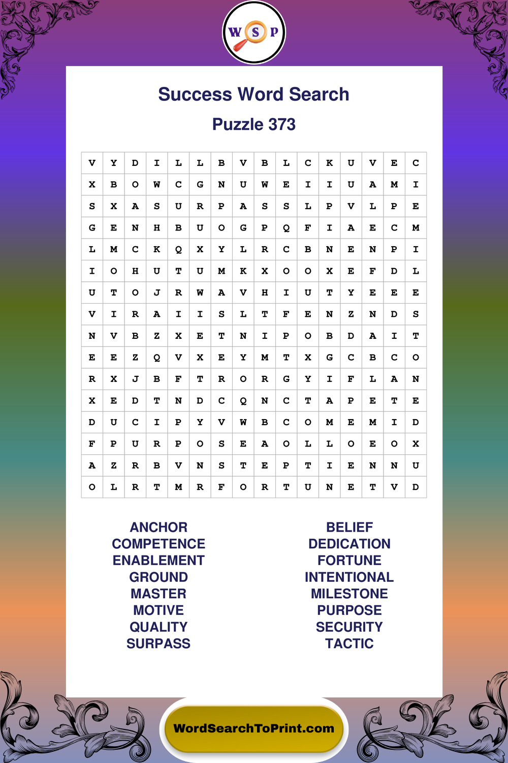 Printable Success Wordsearch Puzzles