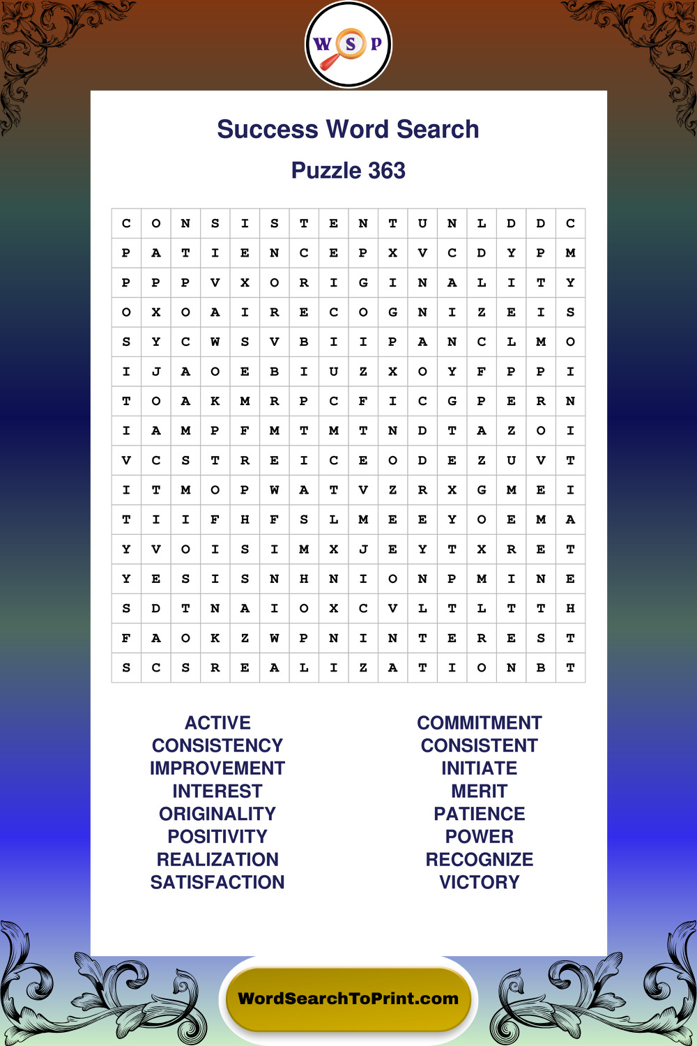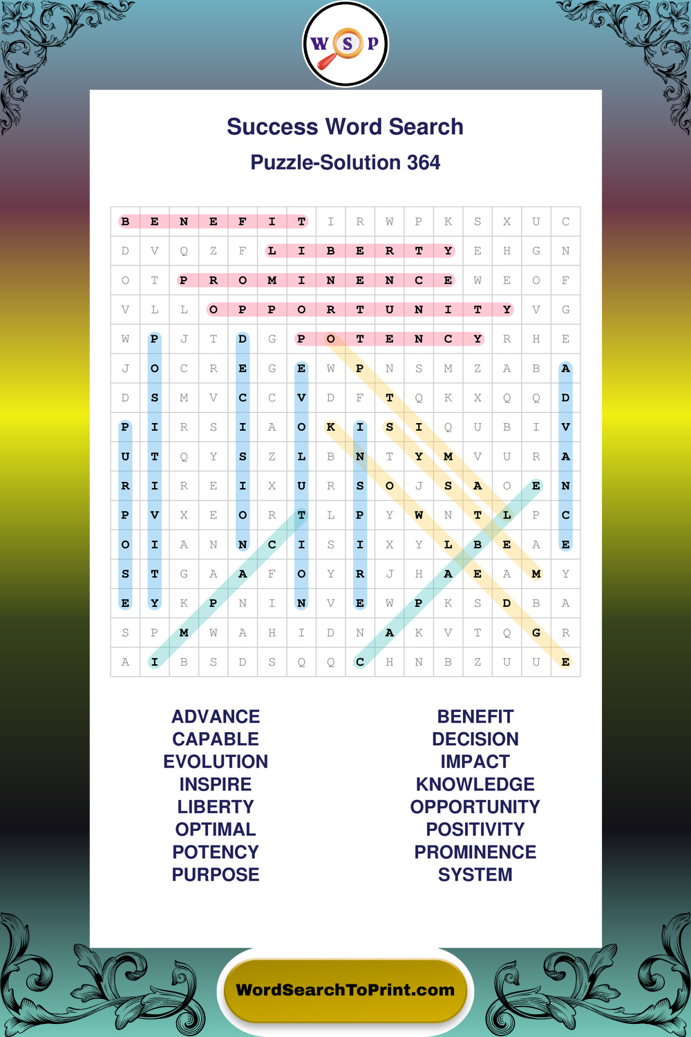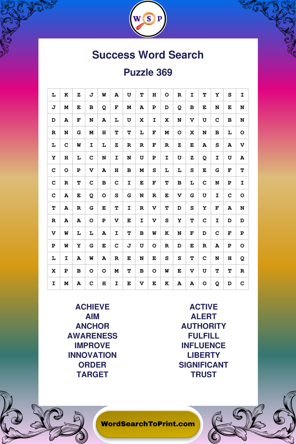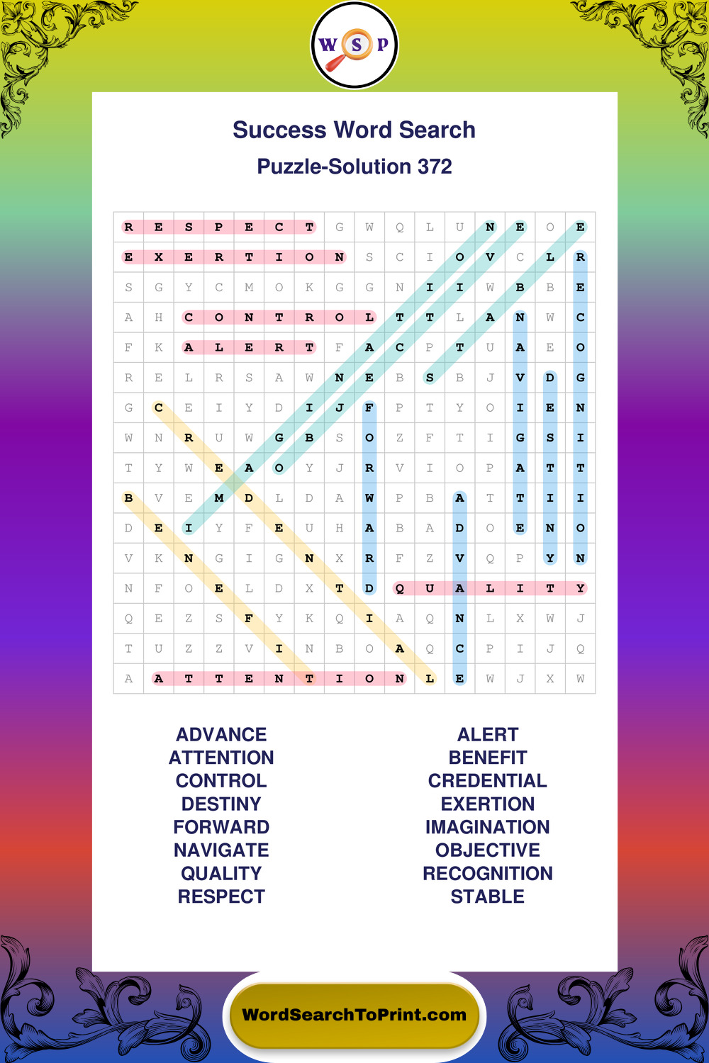 Printable Success Wordsearch Puzzles