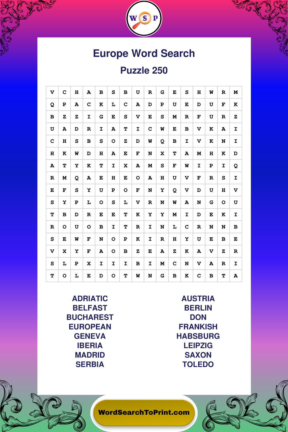Europe Wordsearches