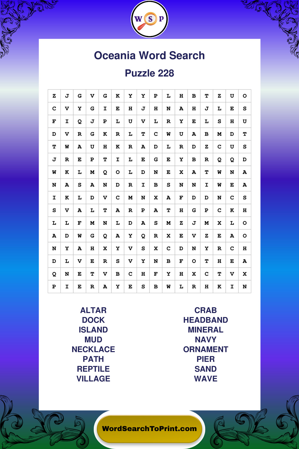 Printable Oceania Wordsearch Puzzles