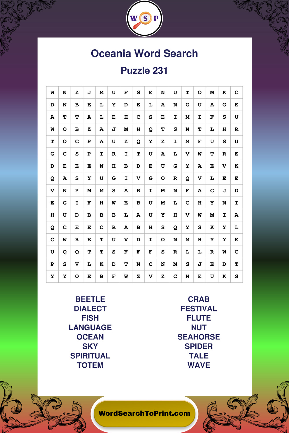 Oceania Wordsearches