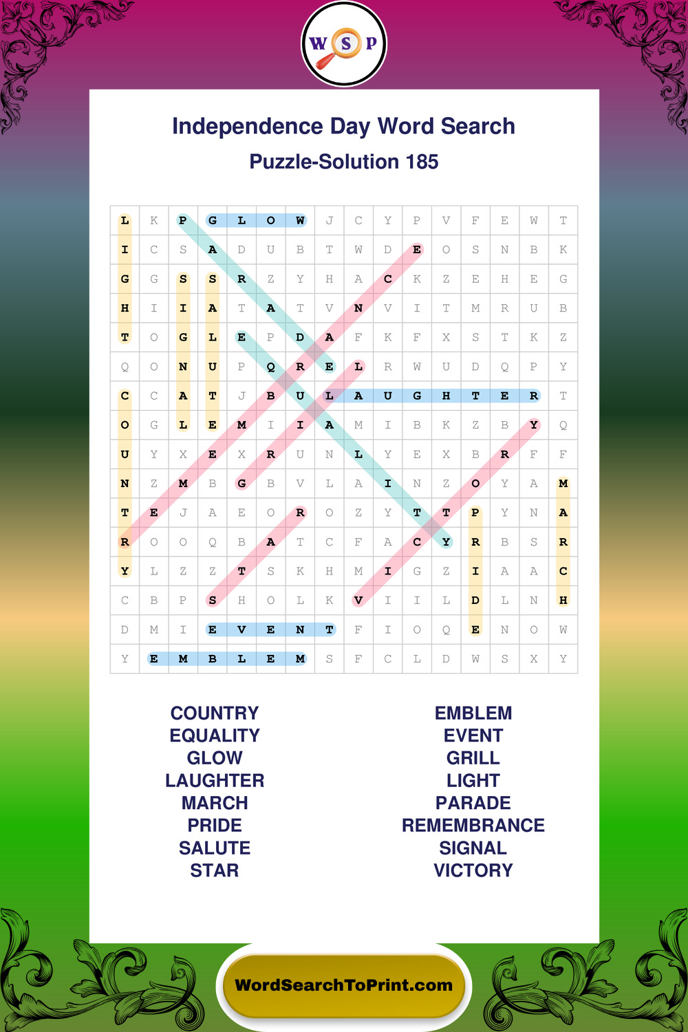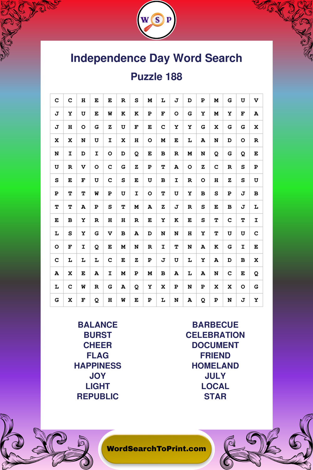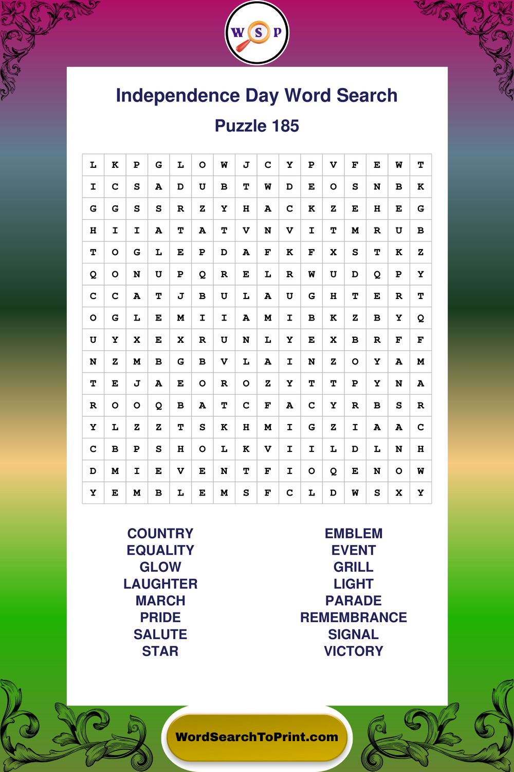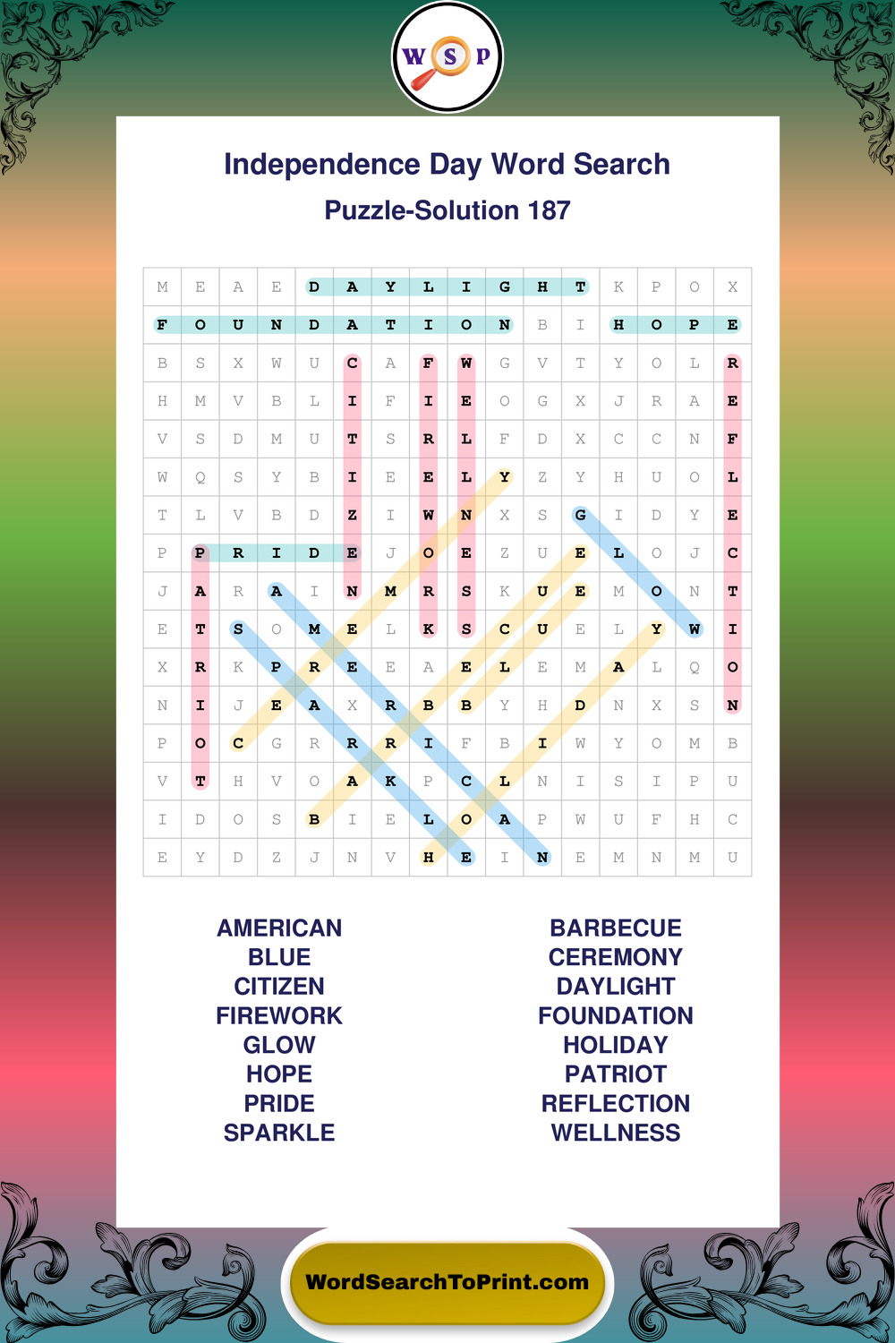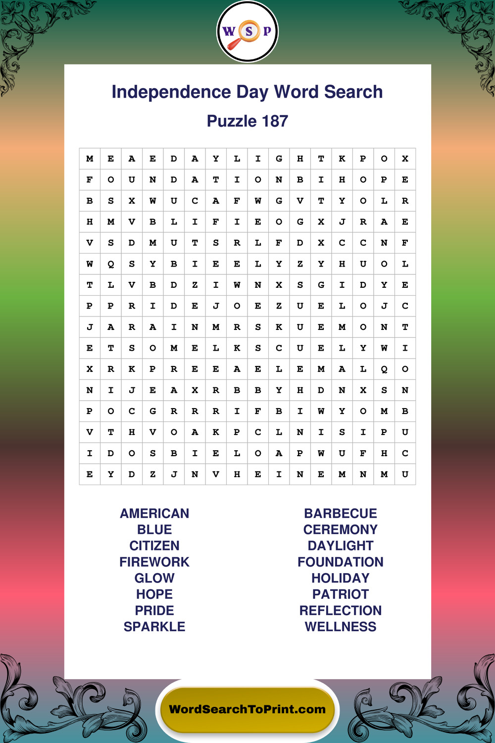 Enjoy large print Independence Day wordsearches that balance clarity, simplicity, and enjoyable mental activity.