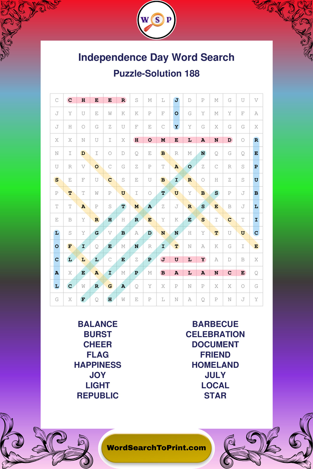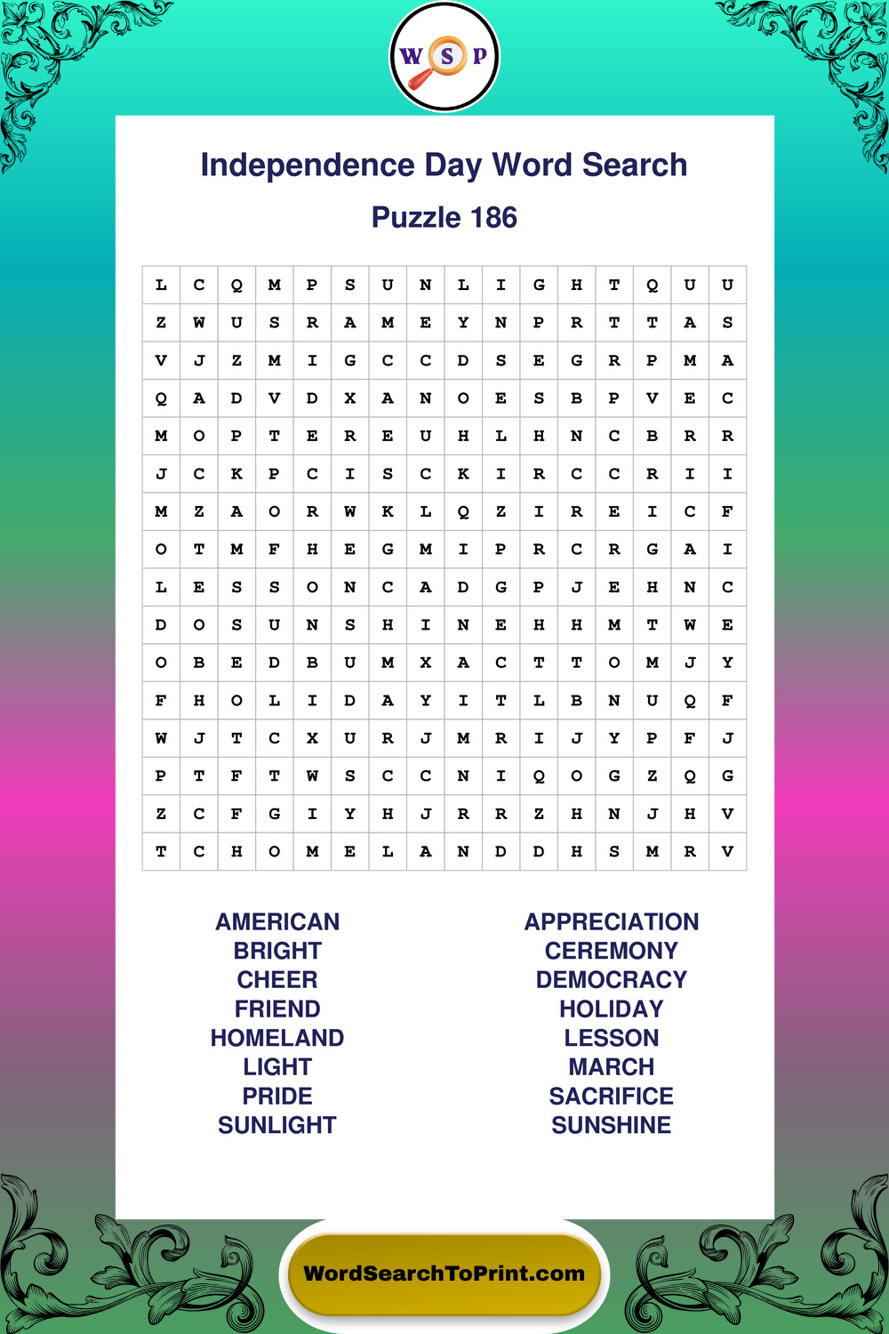 Printable Independence Day Wordsearch Puzzles