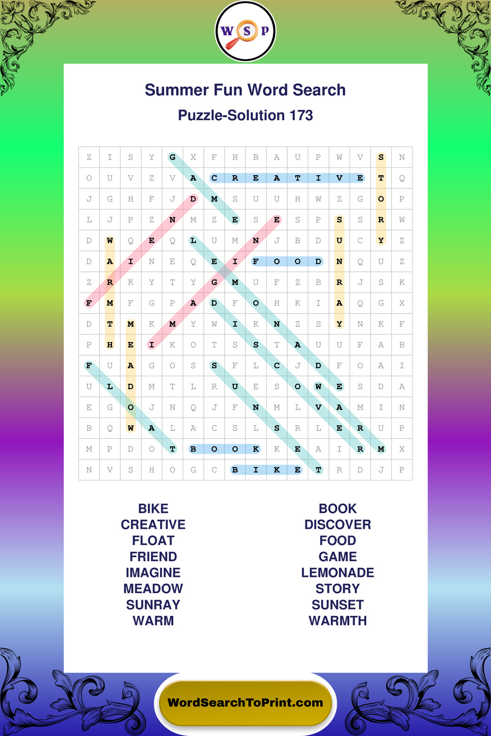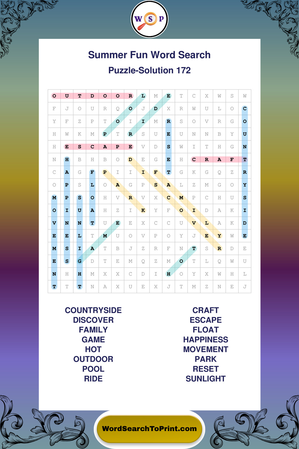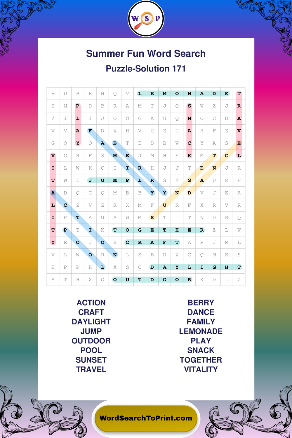 Enjoy large print Summer Fun wordsearches that balance clarity, simplicity, and enjoyable mental activity.