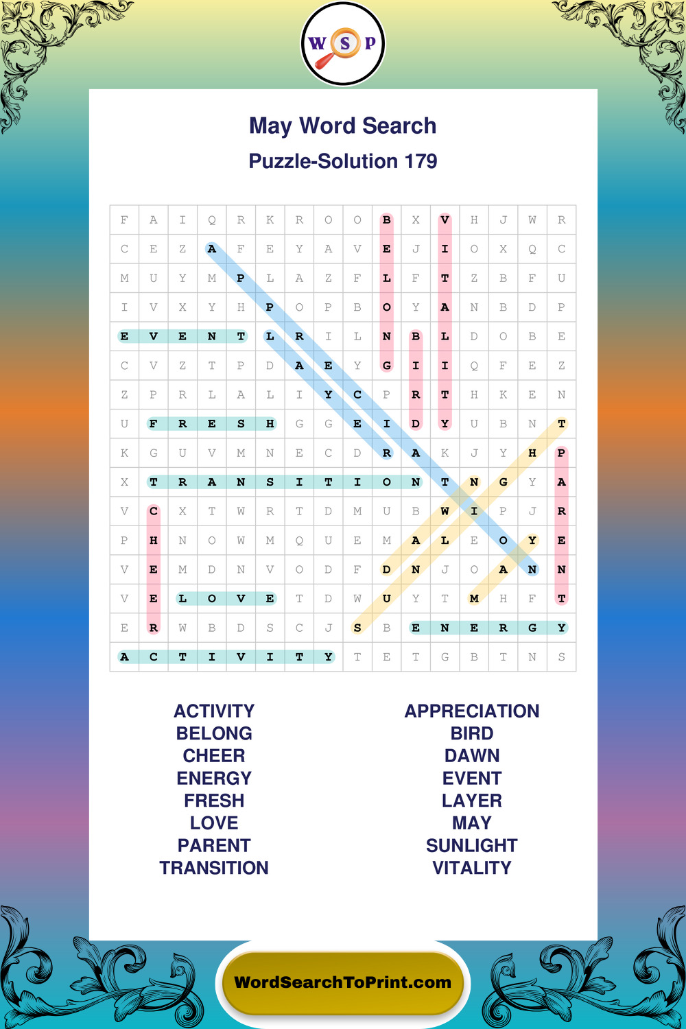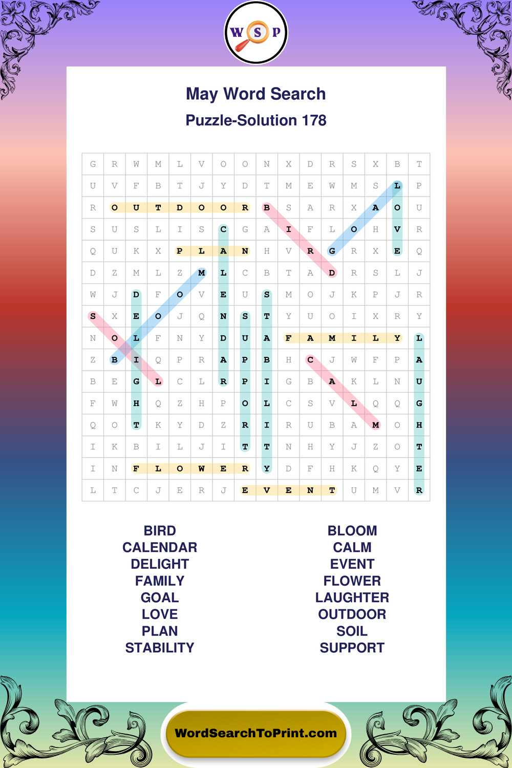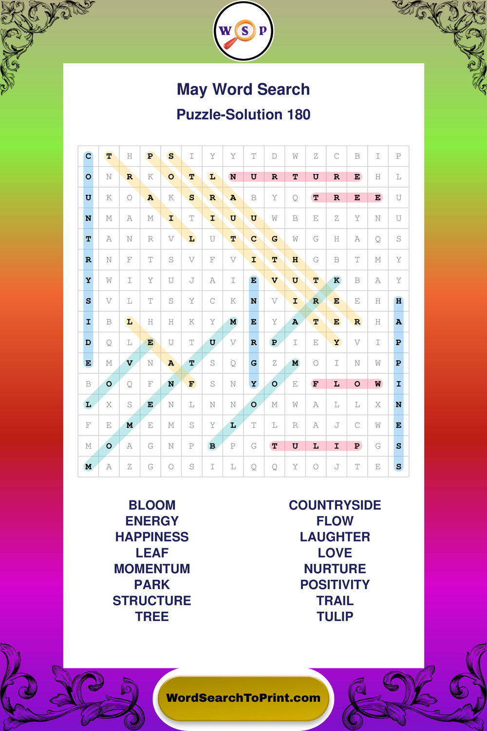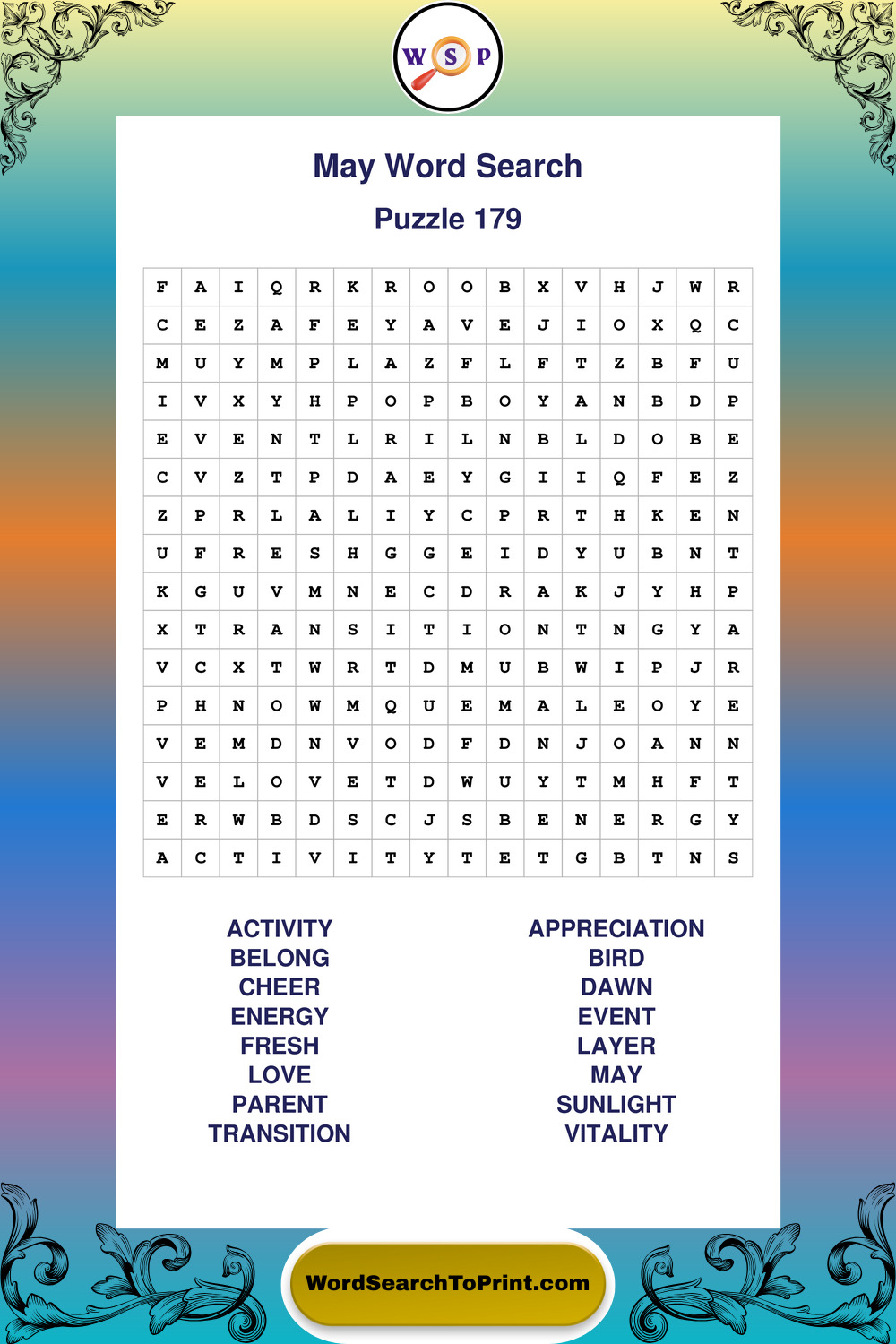 Discover large print May wordsearches designed to support relaxed thinking and comfortable reading.