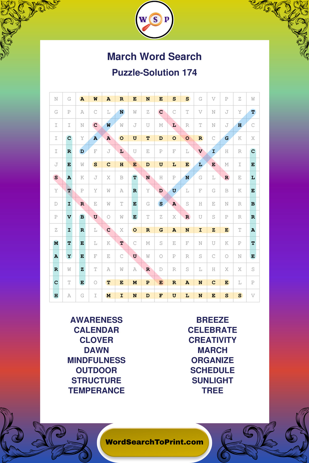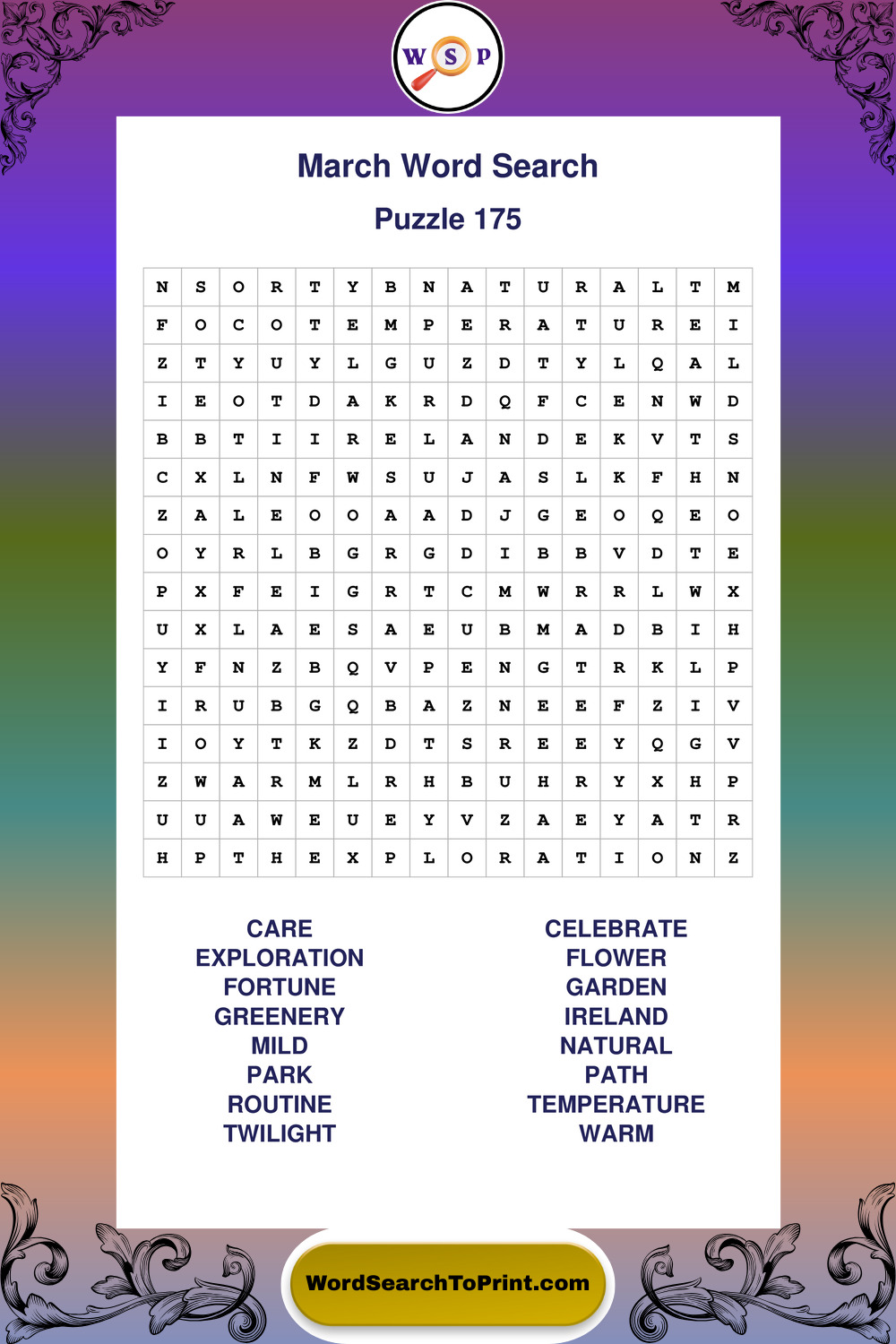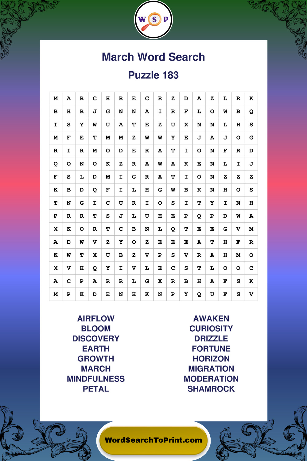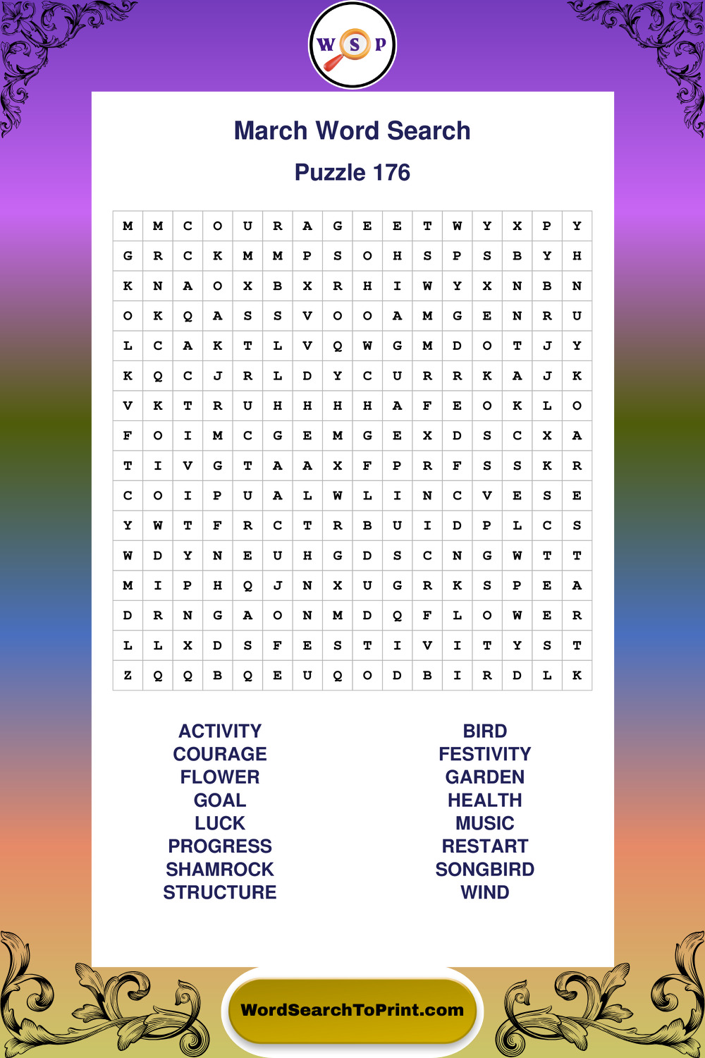 A relaxing collection of large print March wordsearches designed for comfortable solving and steady focus.