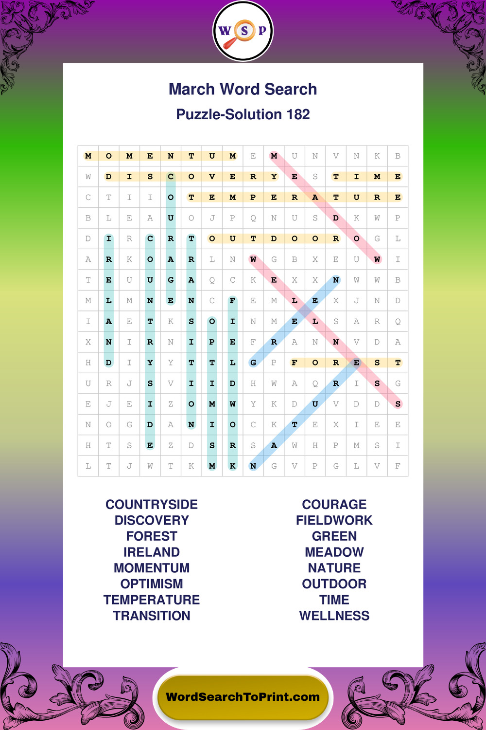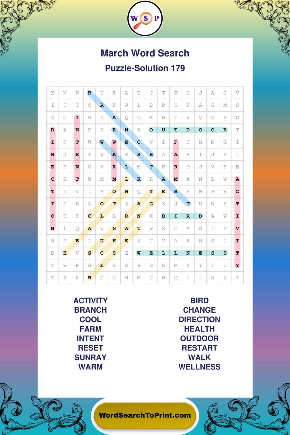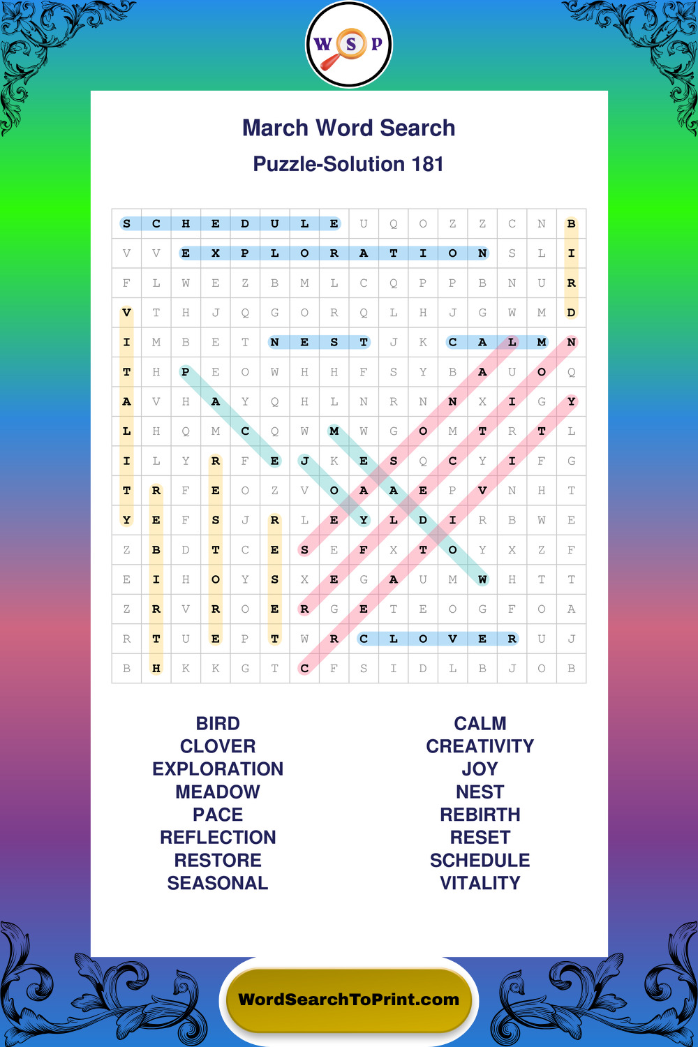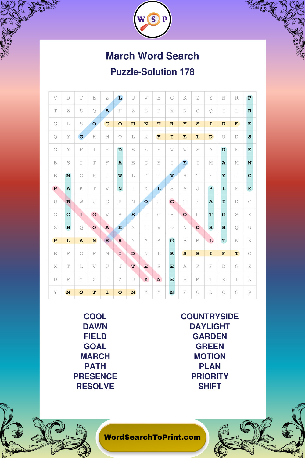 A relaxing collection of large print March wordsearches designed for comfortable solving and steady focus.