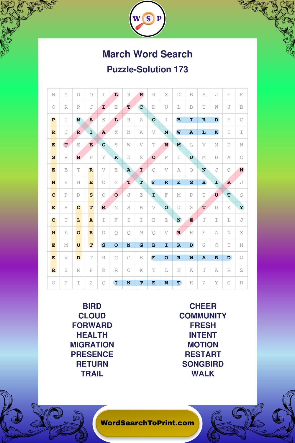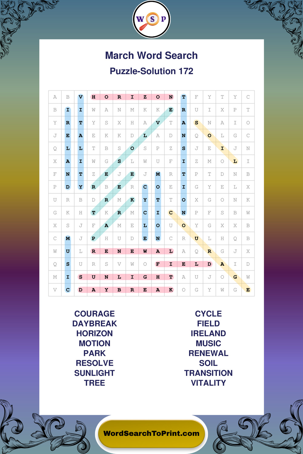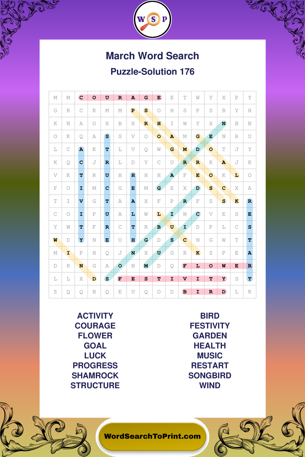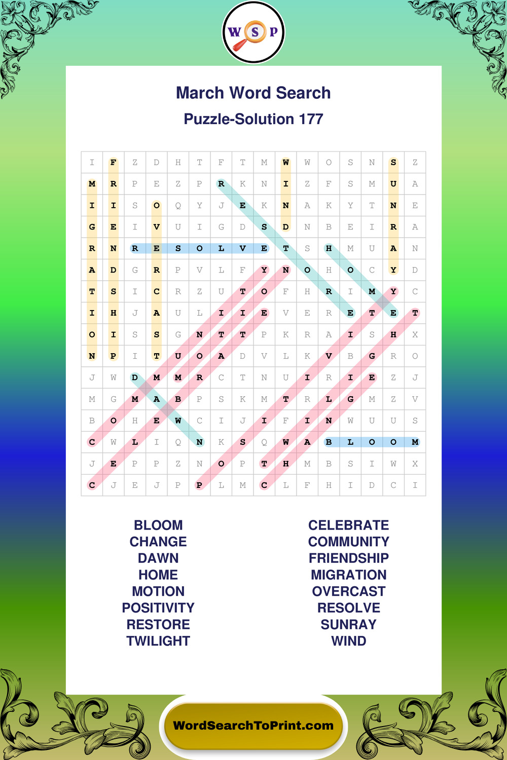 A relaxing collection of large print March wordsearches designed for comfortable solving and steady focus.