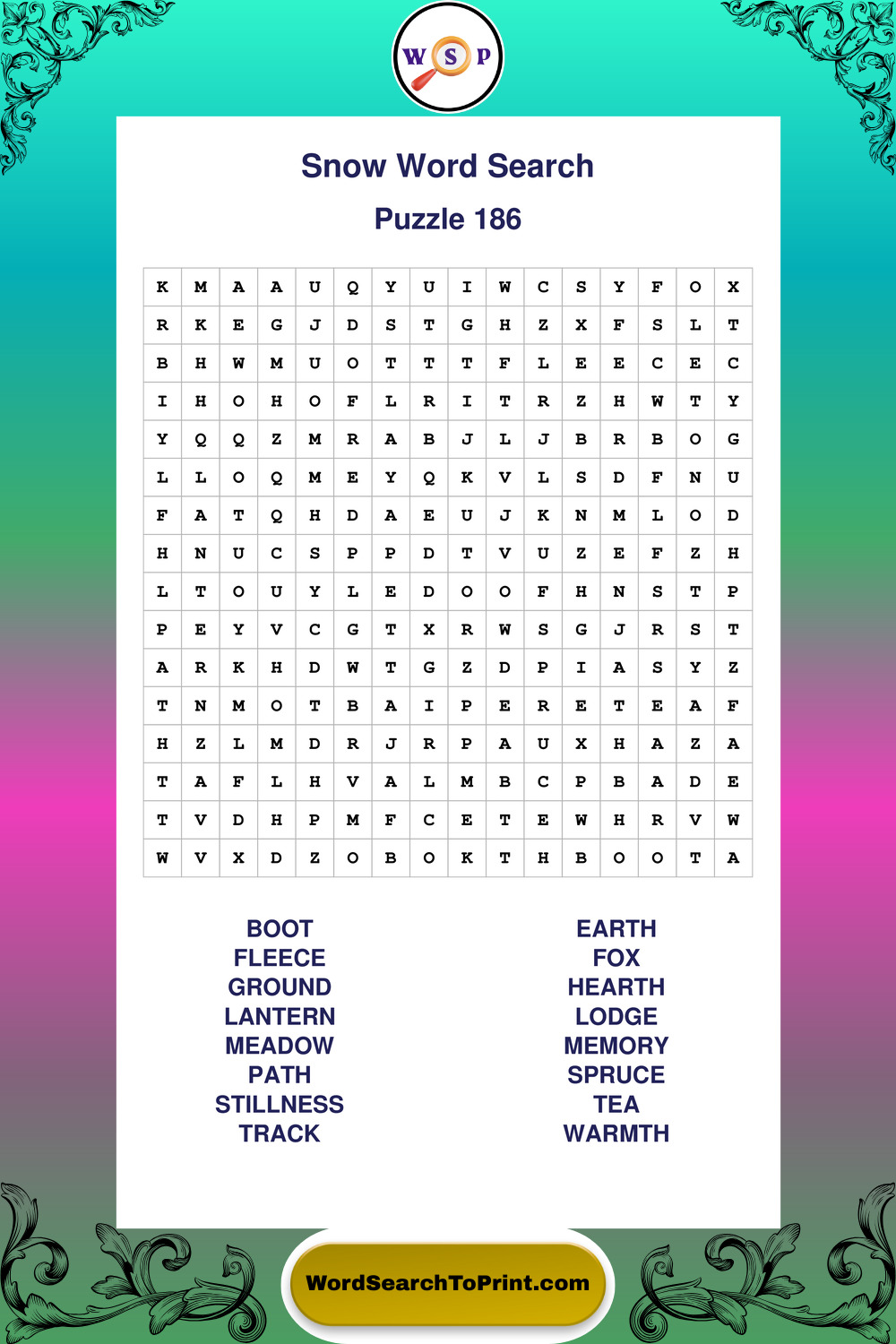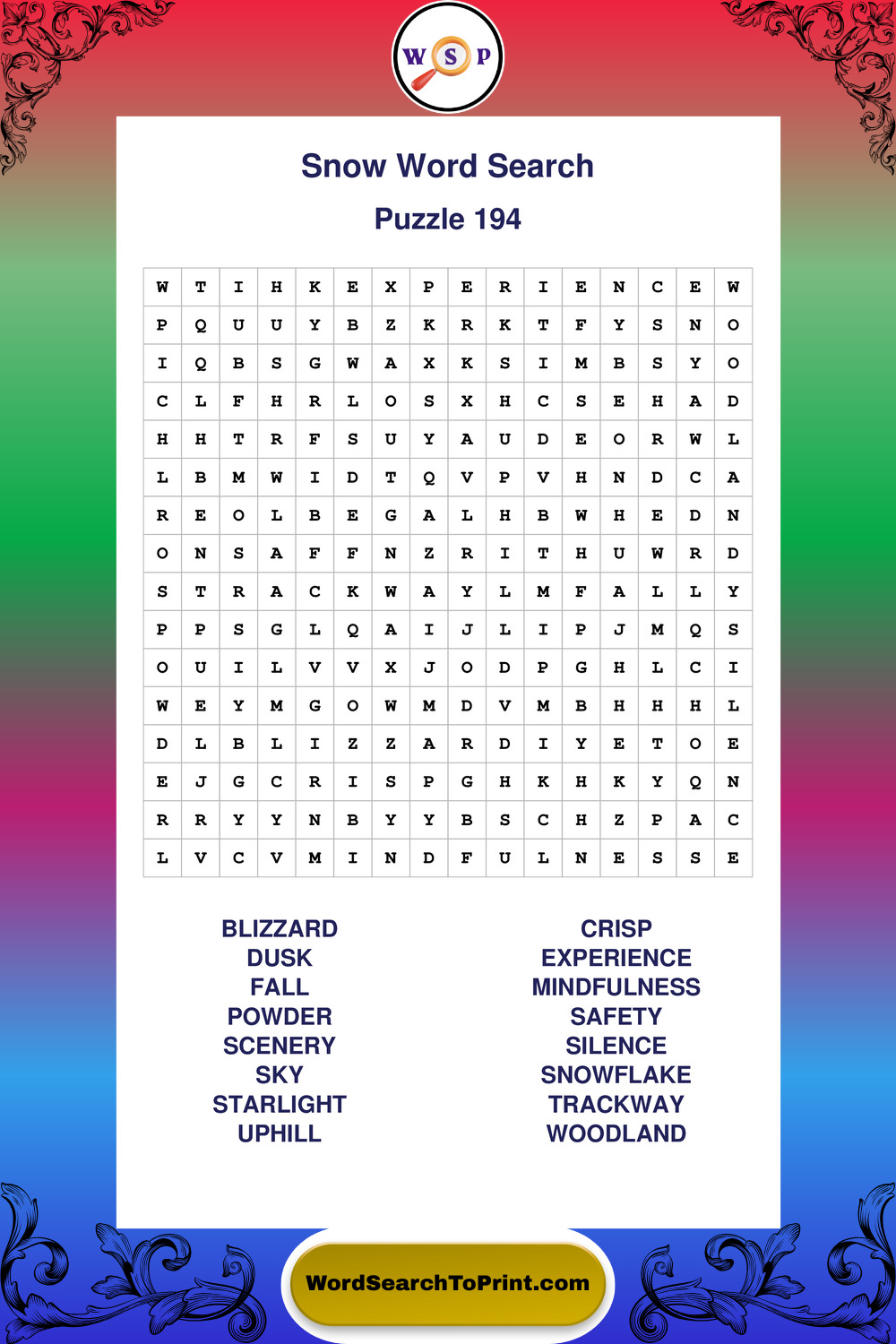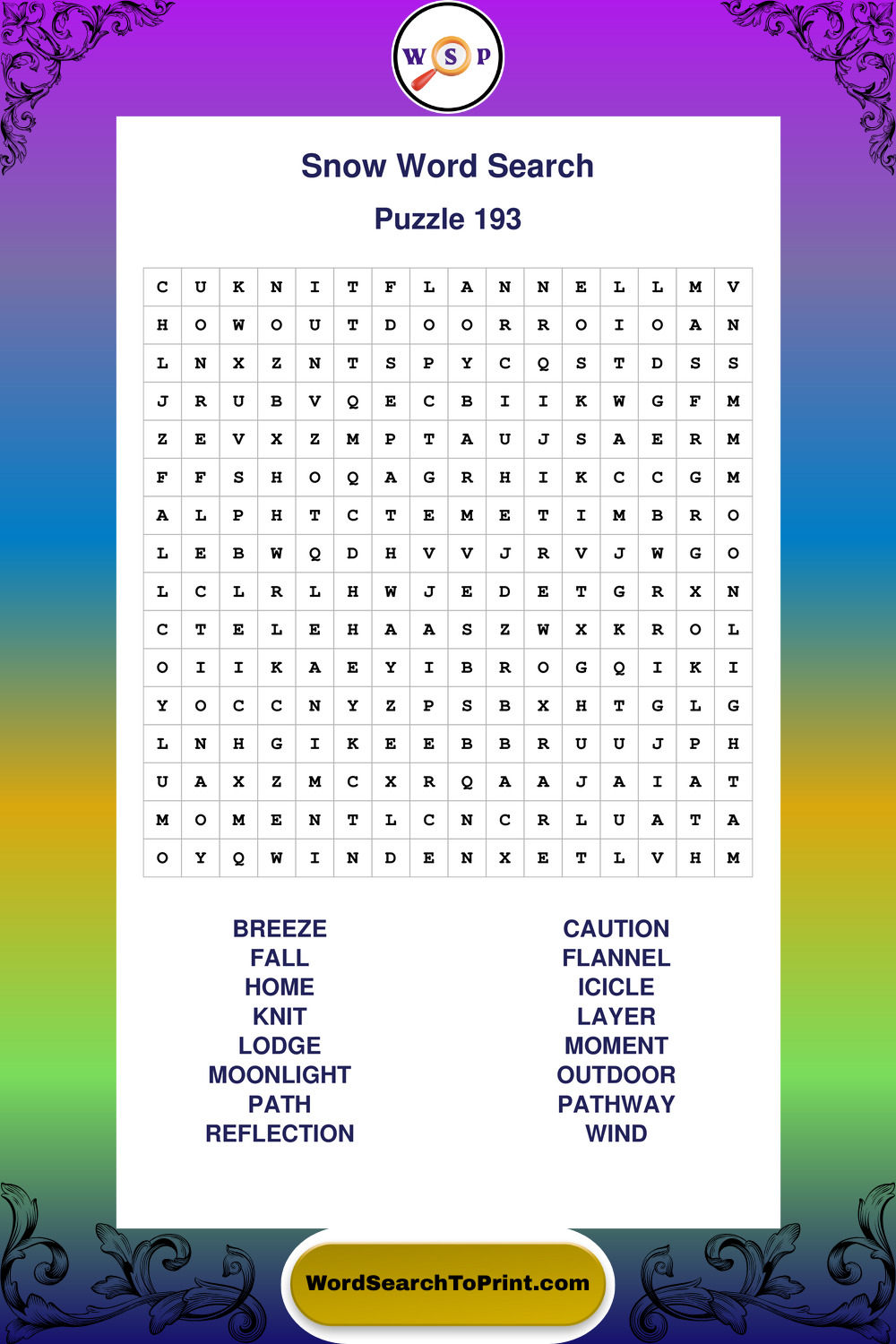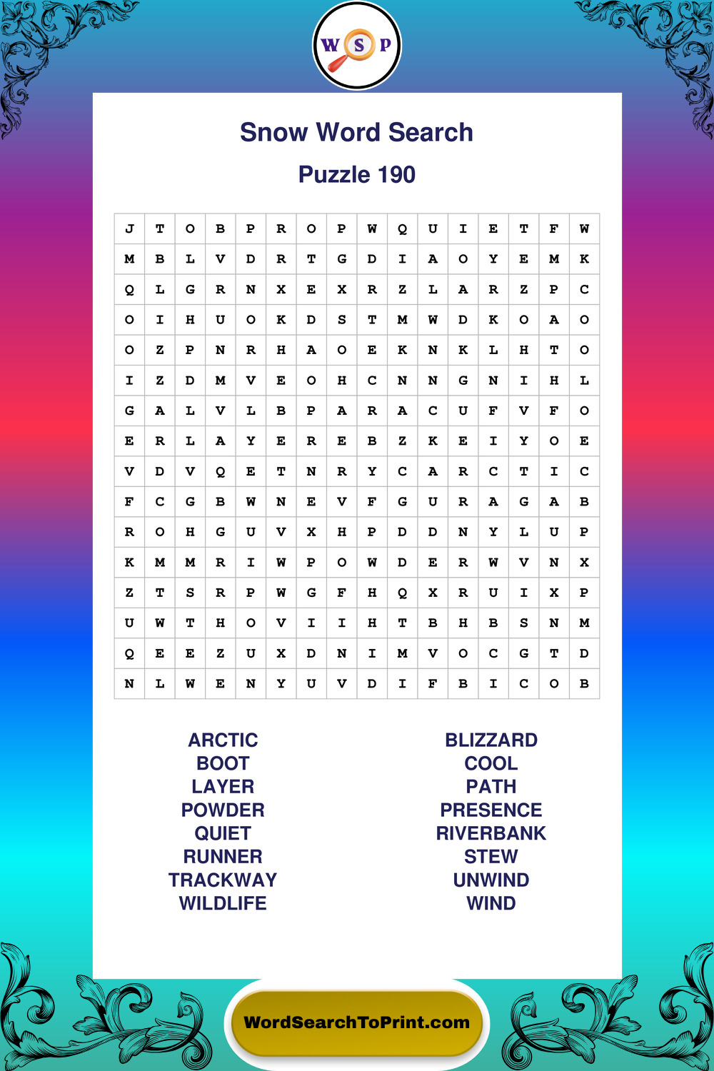 Explore a growing collection of large print Snow wordsearches created for comfortable, stress-free solving at your own pace.