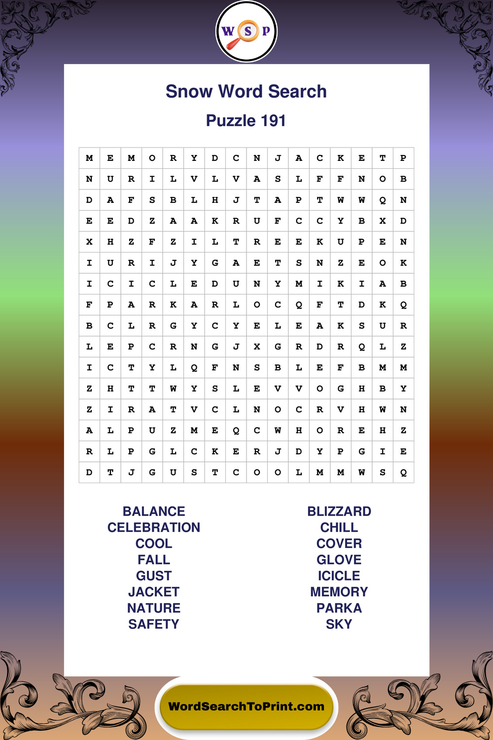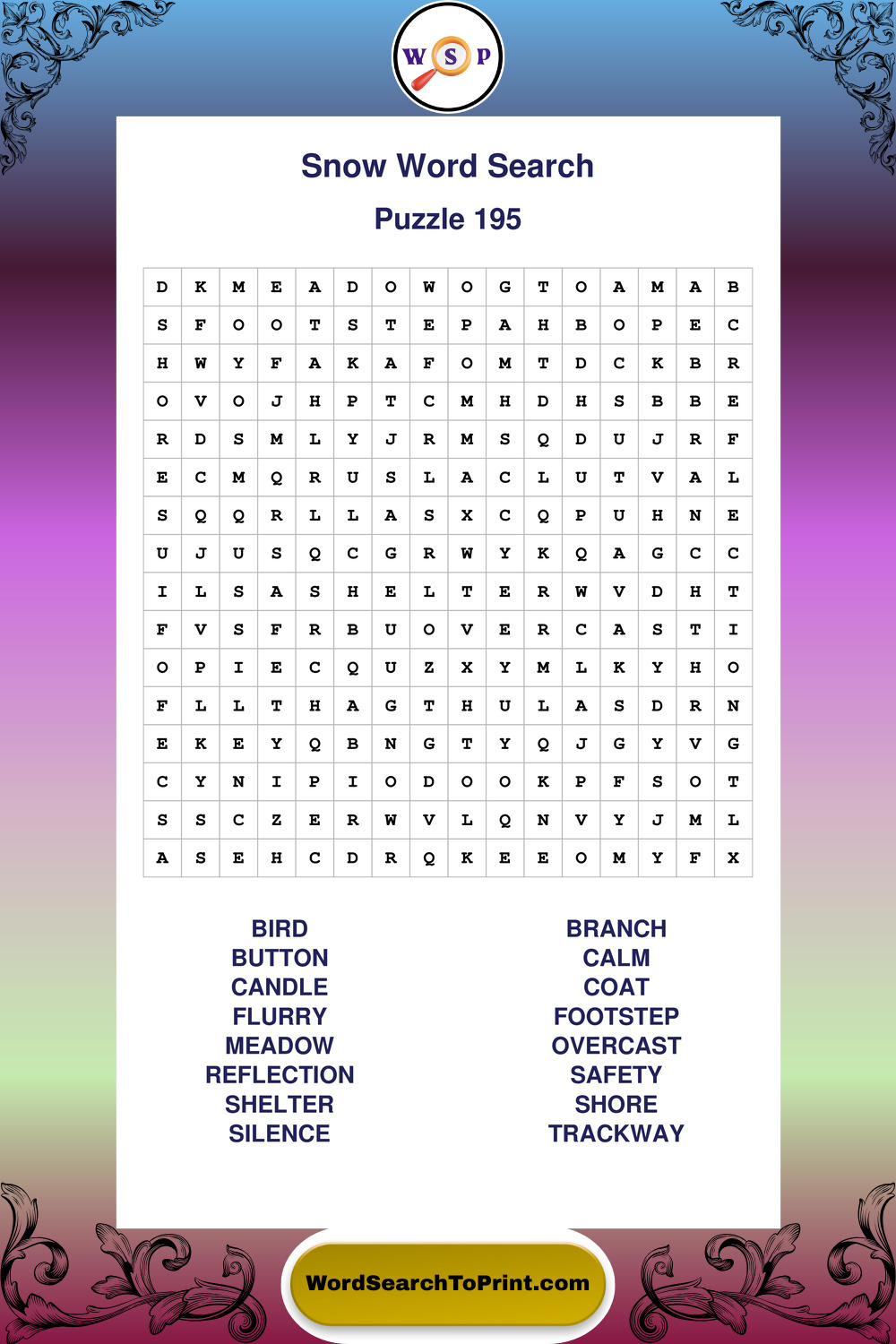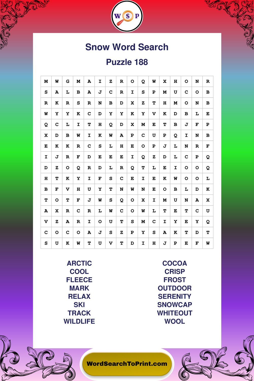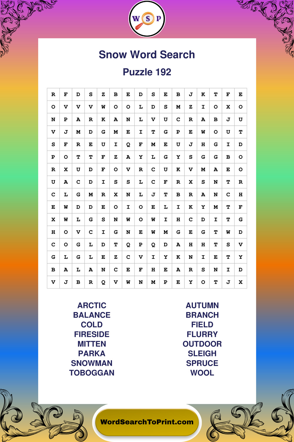 Explore a growing collection of large print Snow wordsearches created for comfortable, stress-free solving at your own pace.