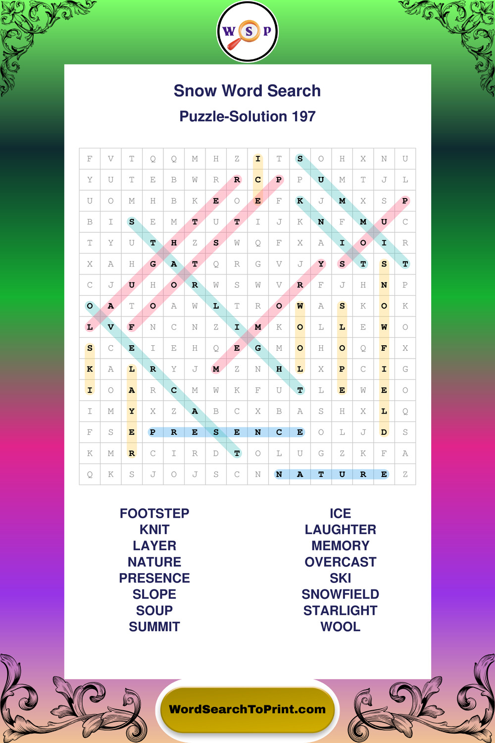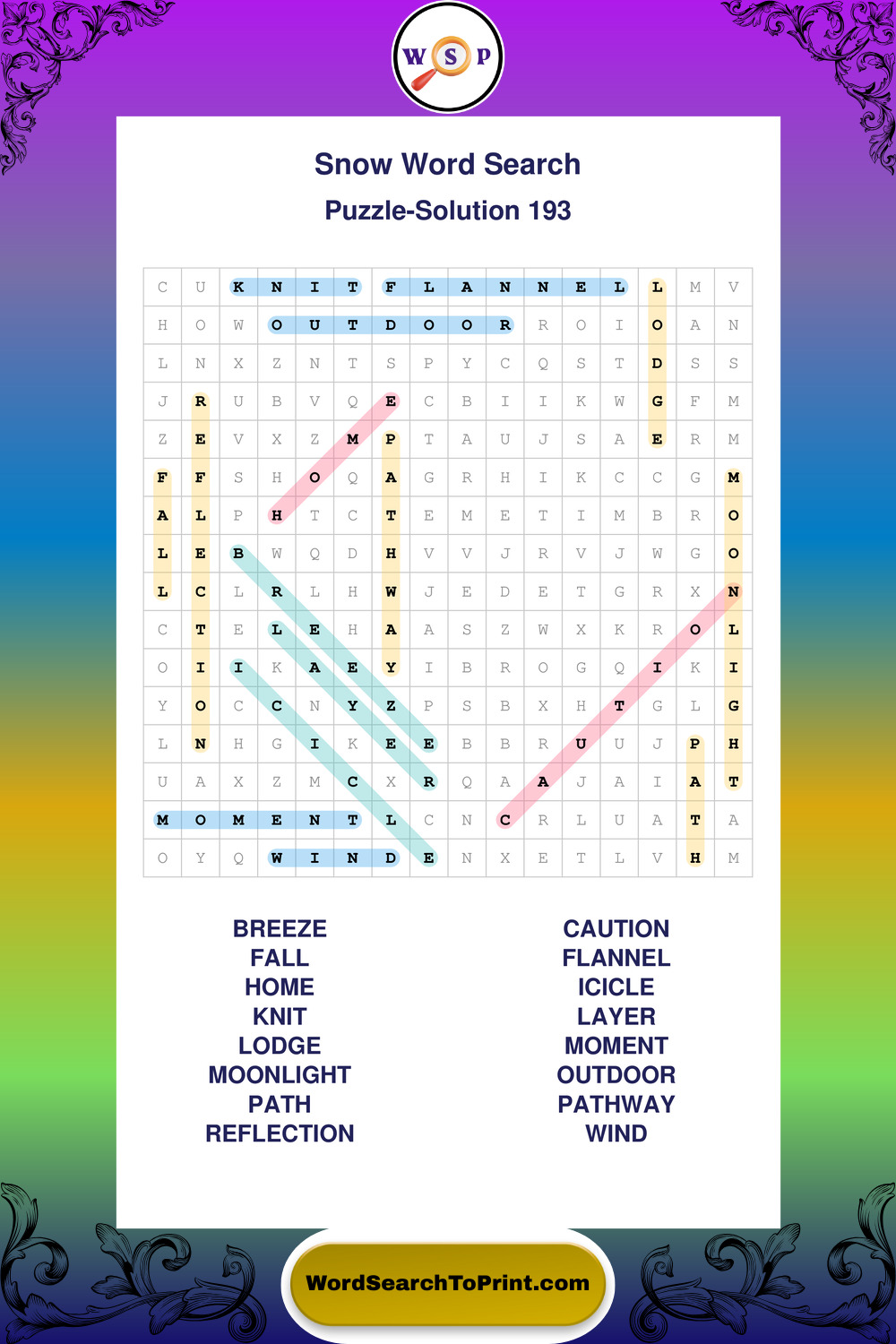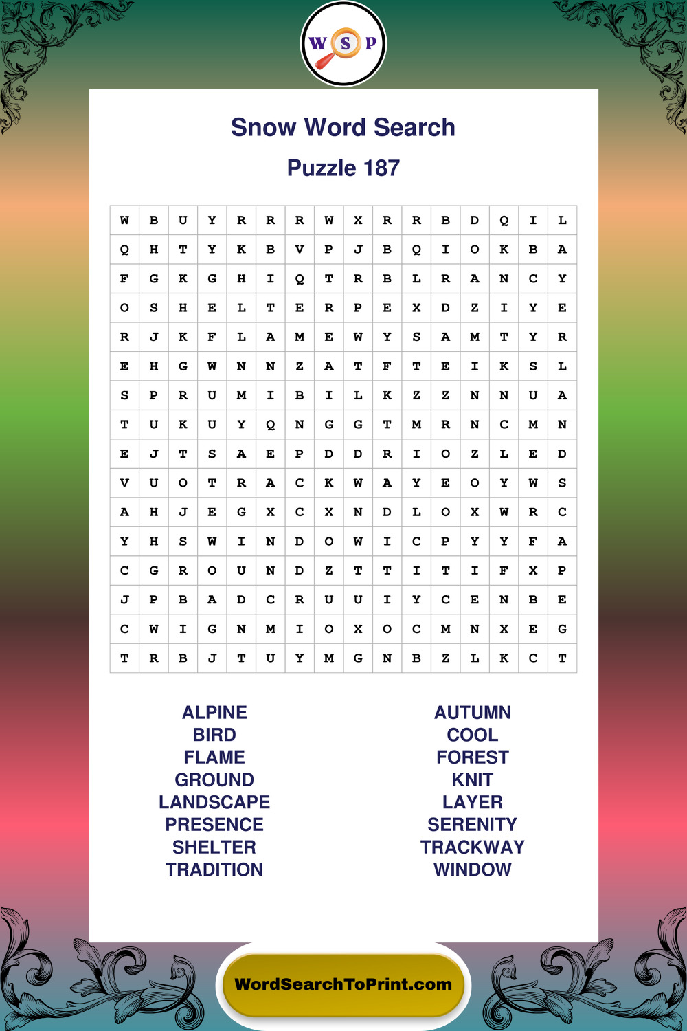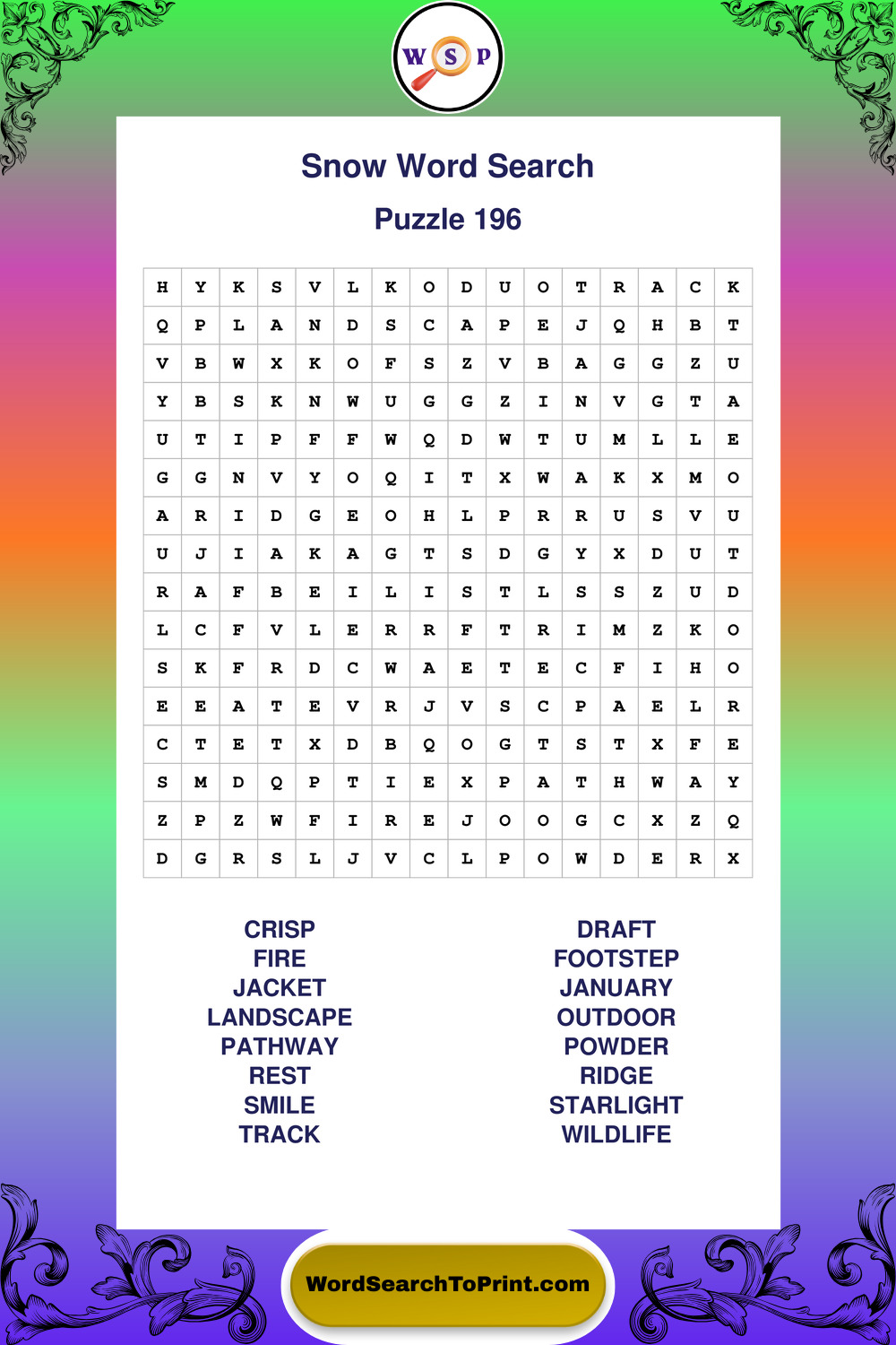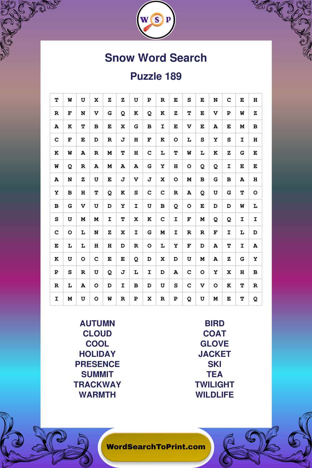 Explore a growing collection of large print Snow wordsearches created for comfortable, stress-free solving at your own pace.