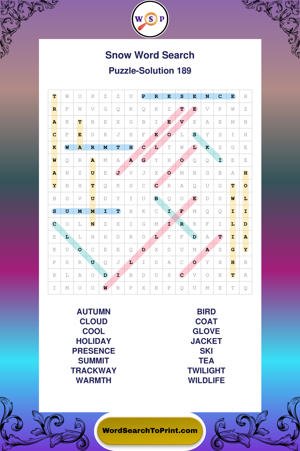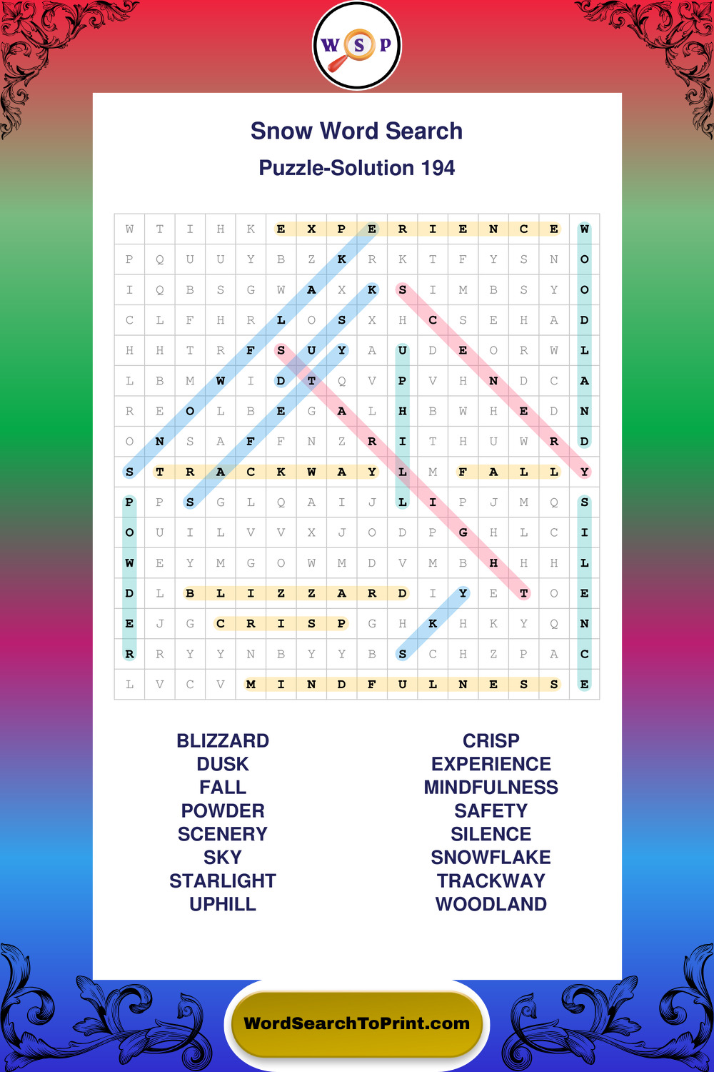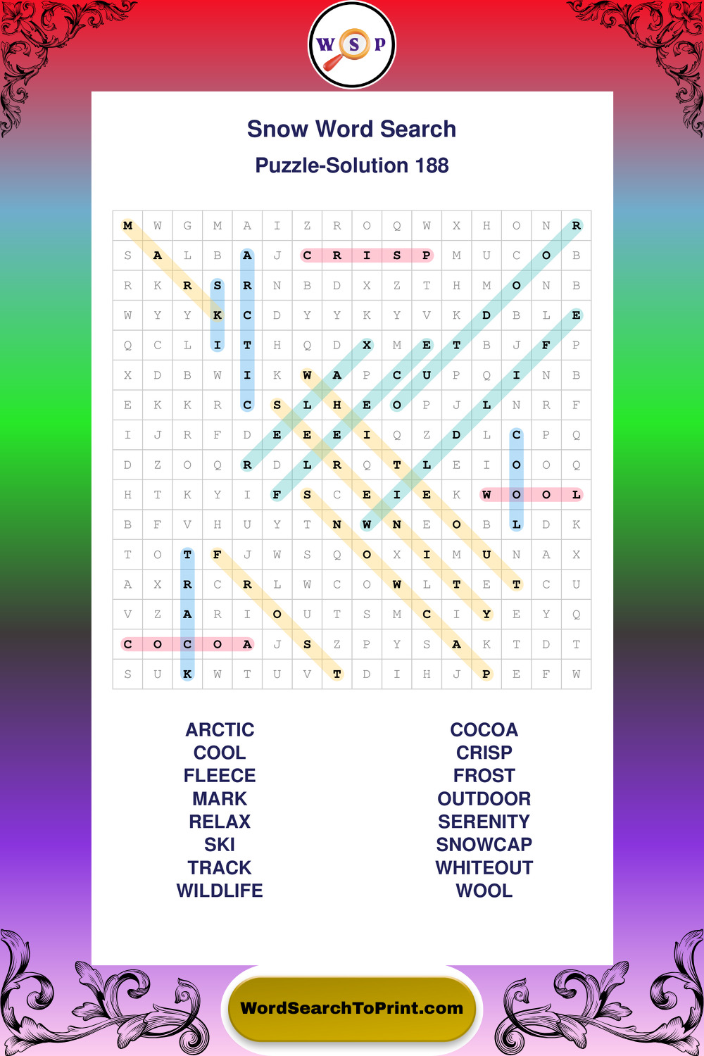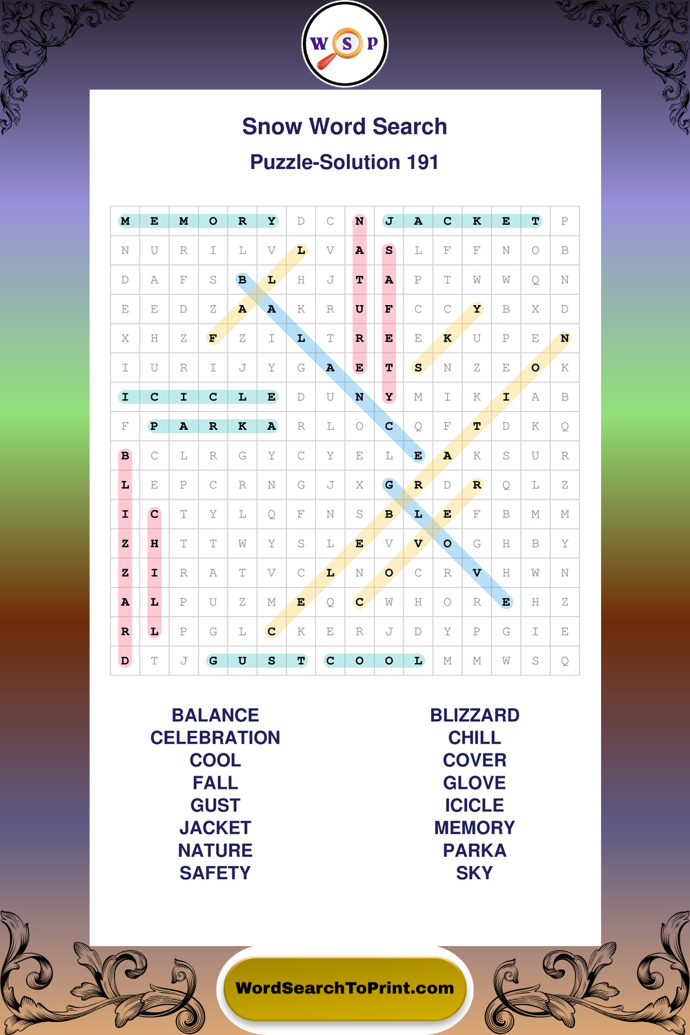 Explore a growing collection of large print Snow wordsearches created for comfortable, stress-free solving at your own pace.