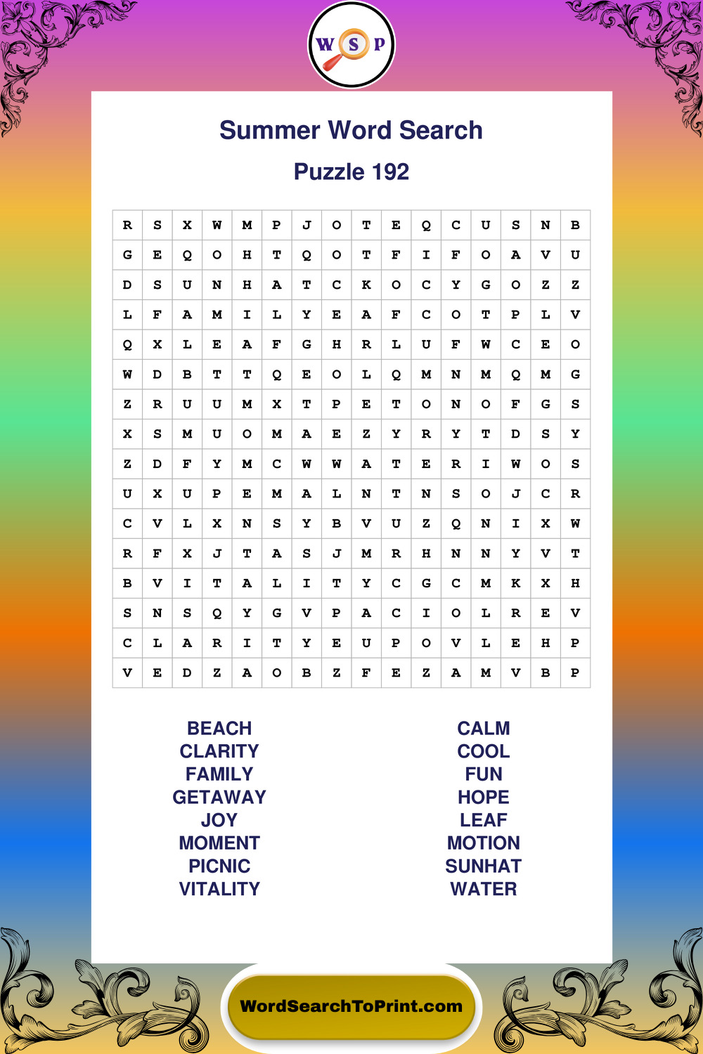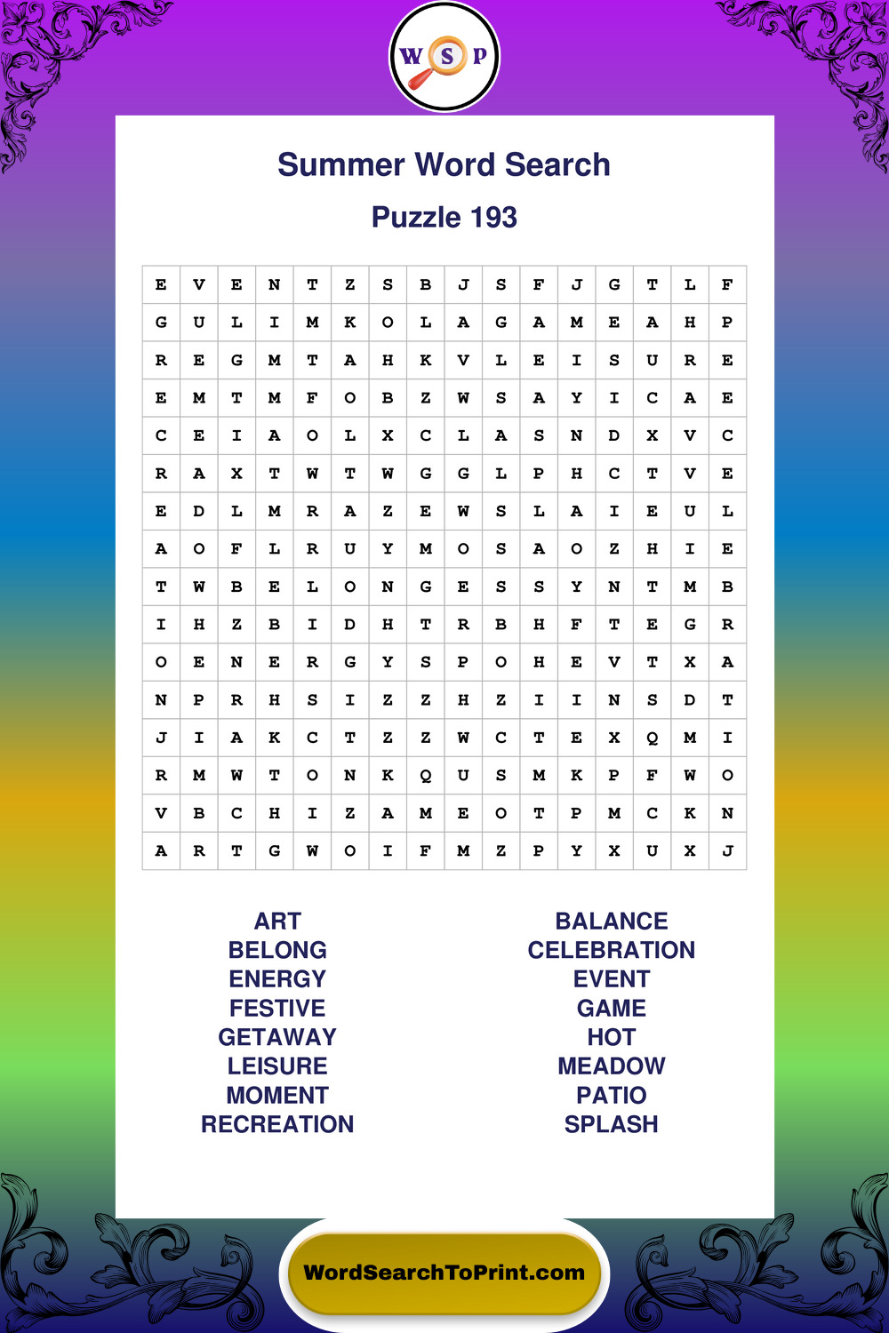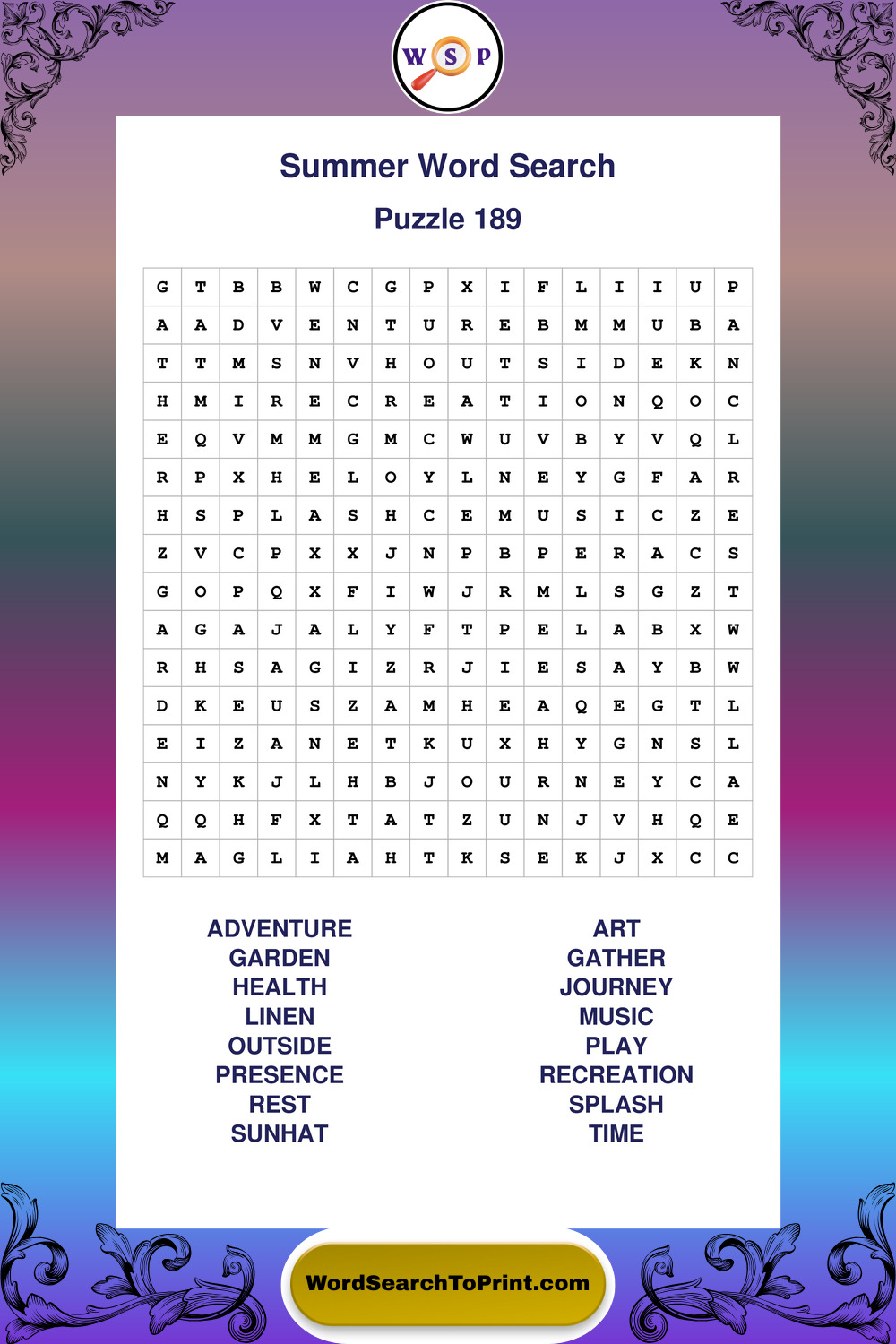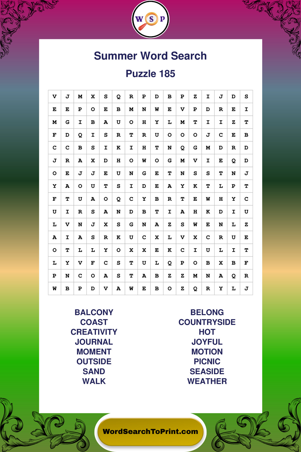 Browse large print Summer wordsearches created to support clear vision, steady concentration, and relaxed solving.