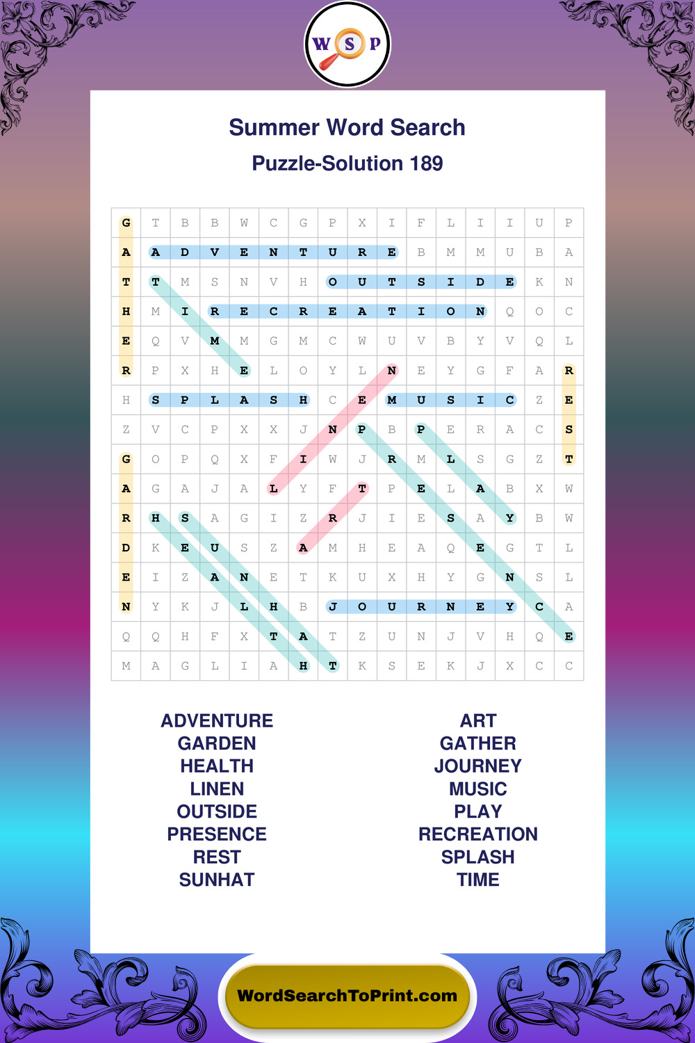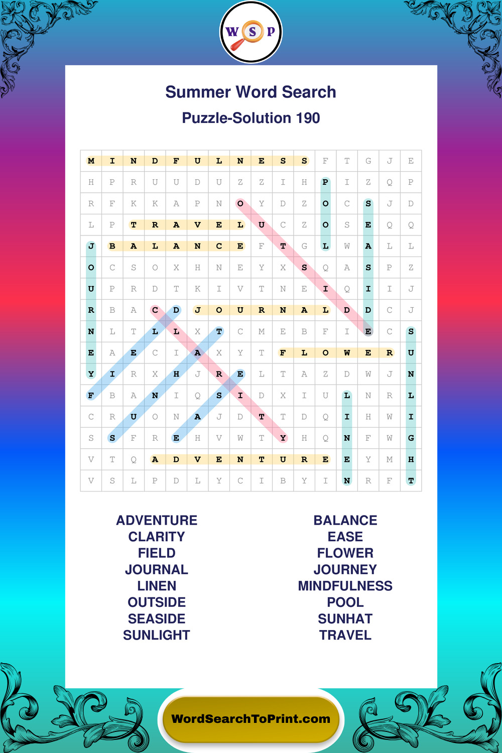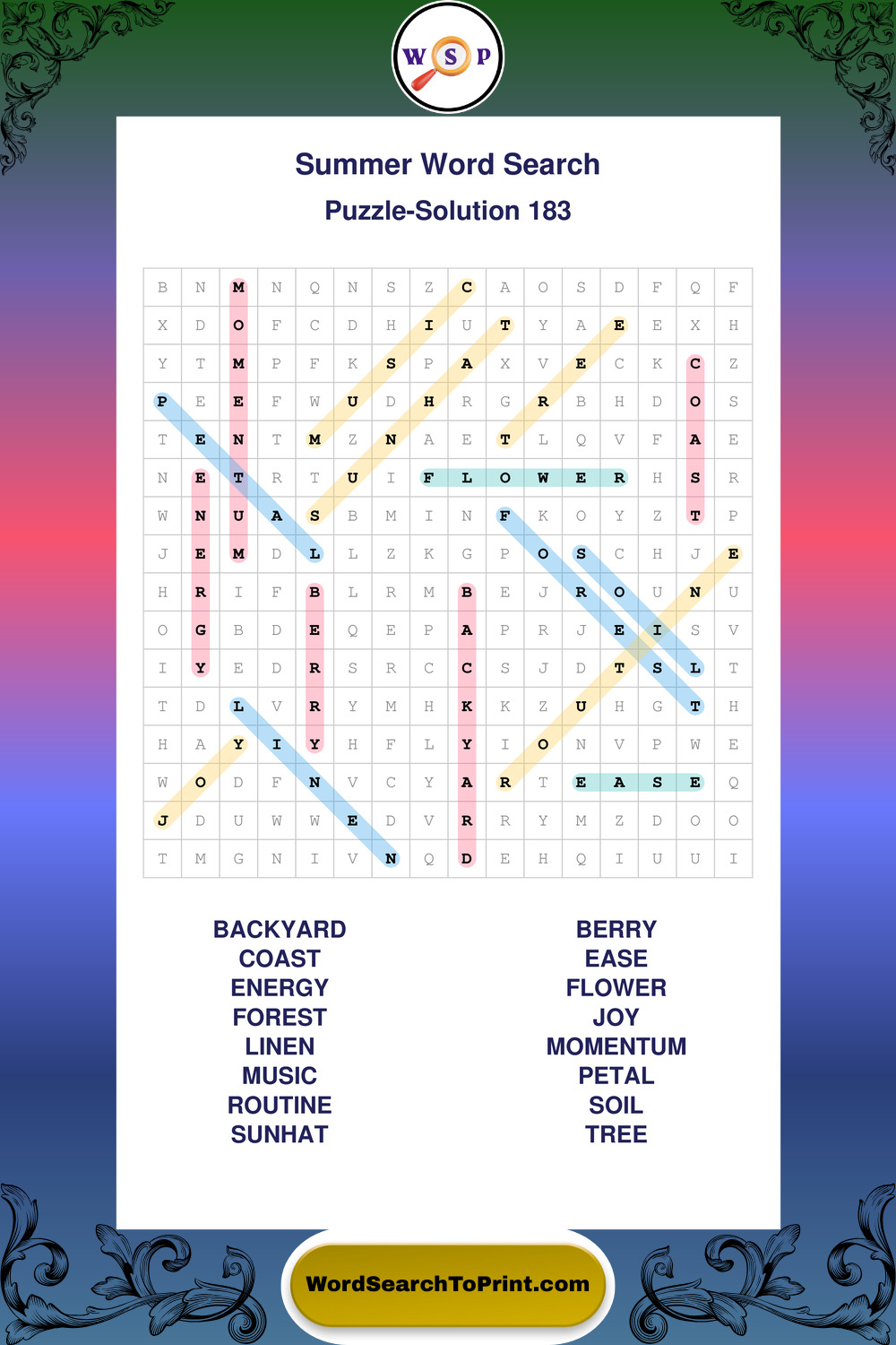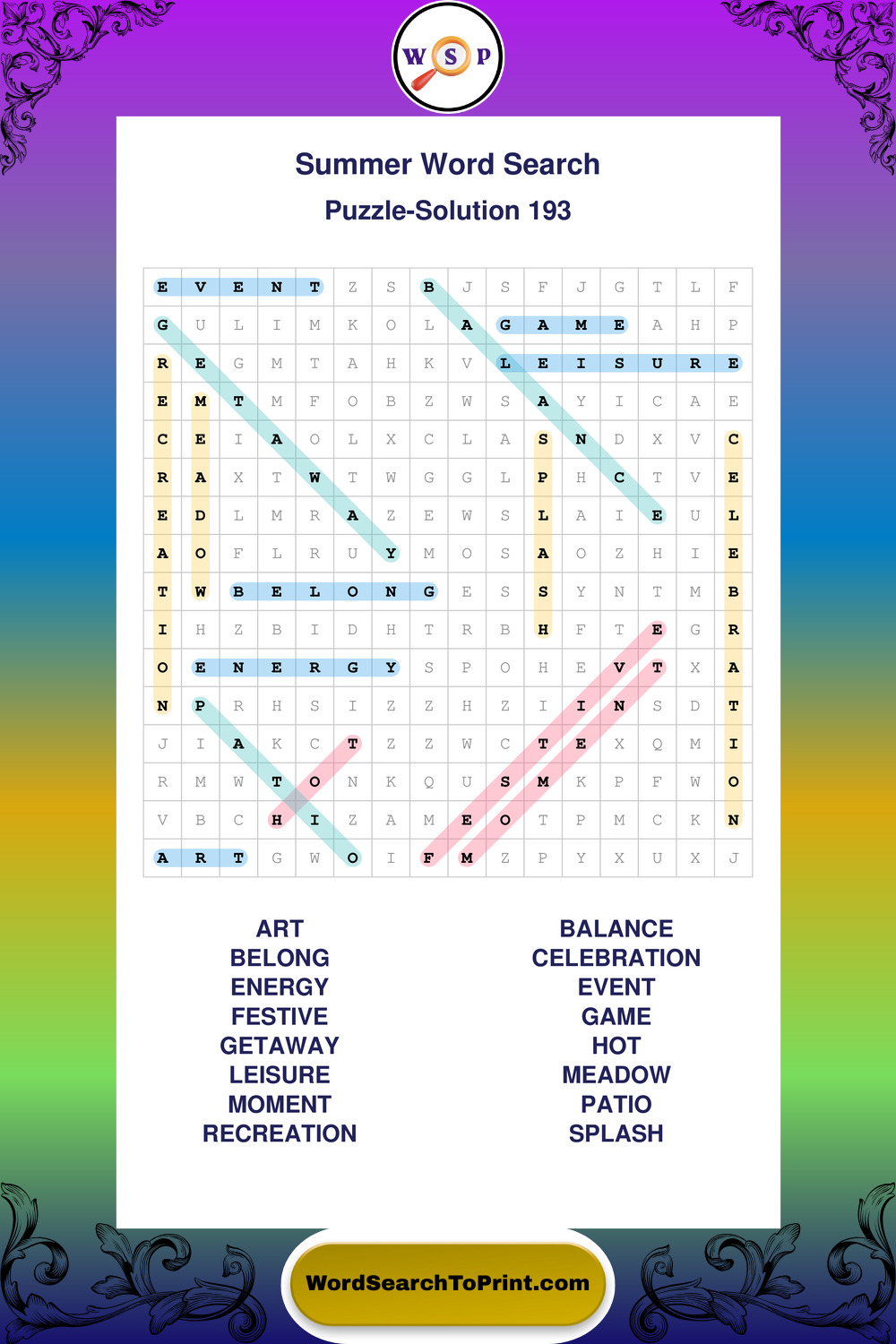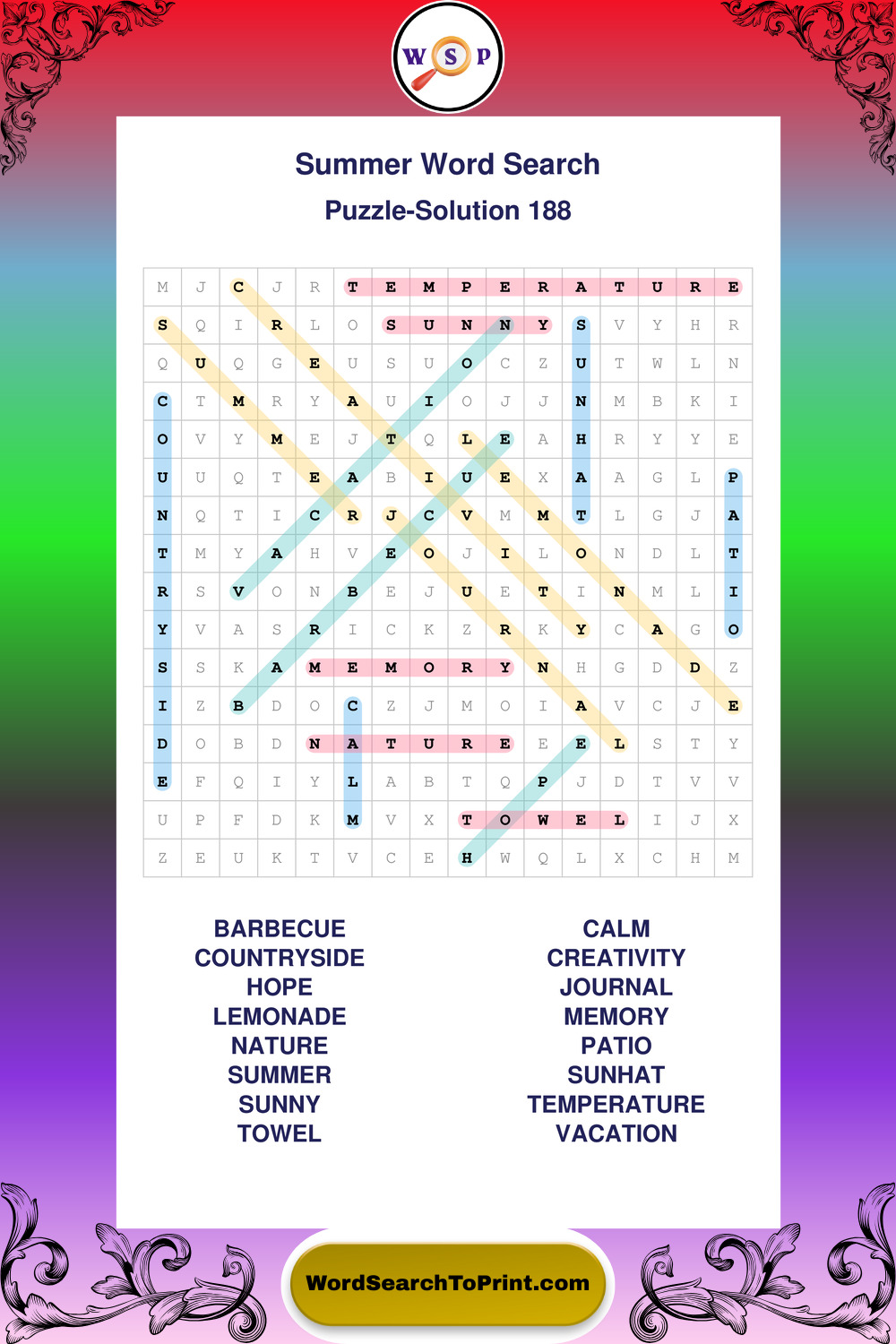 Browse large print Summer wordsearches created to support clear vision, steady concentration, and relaxed solving.