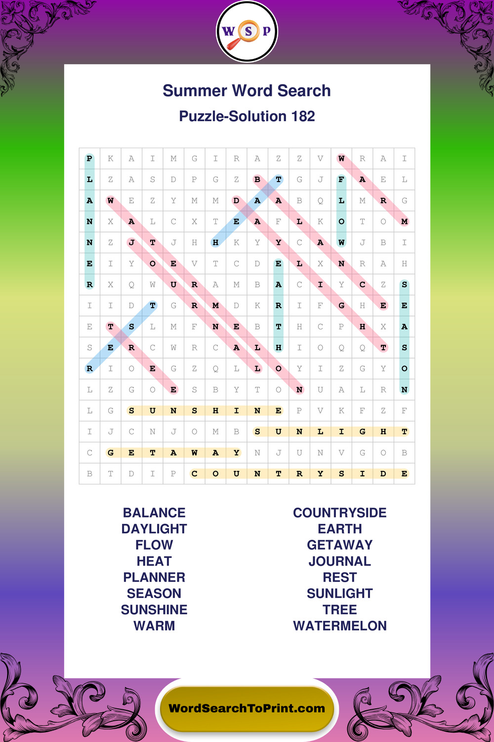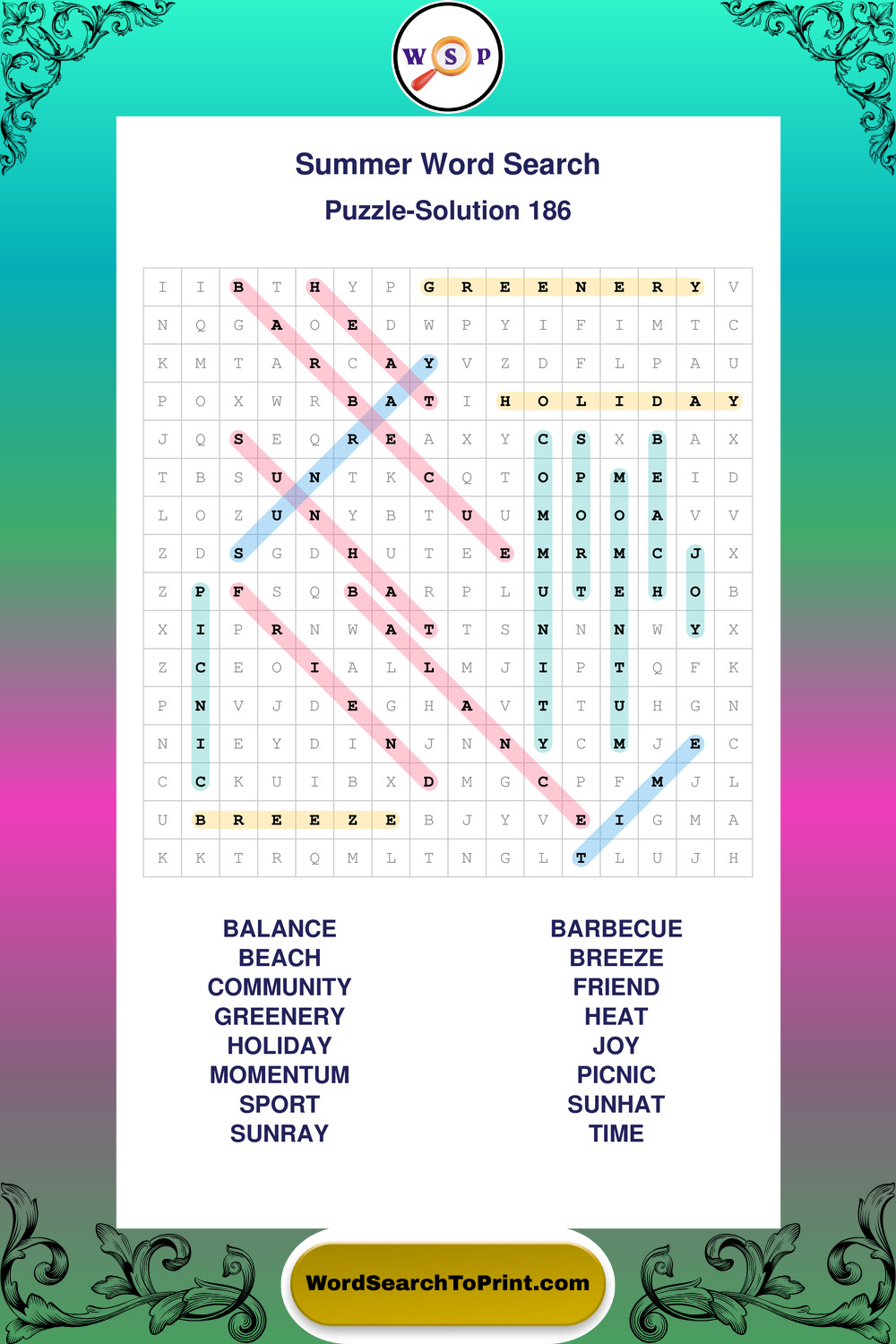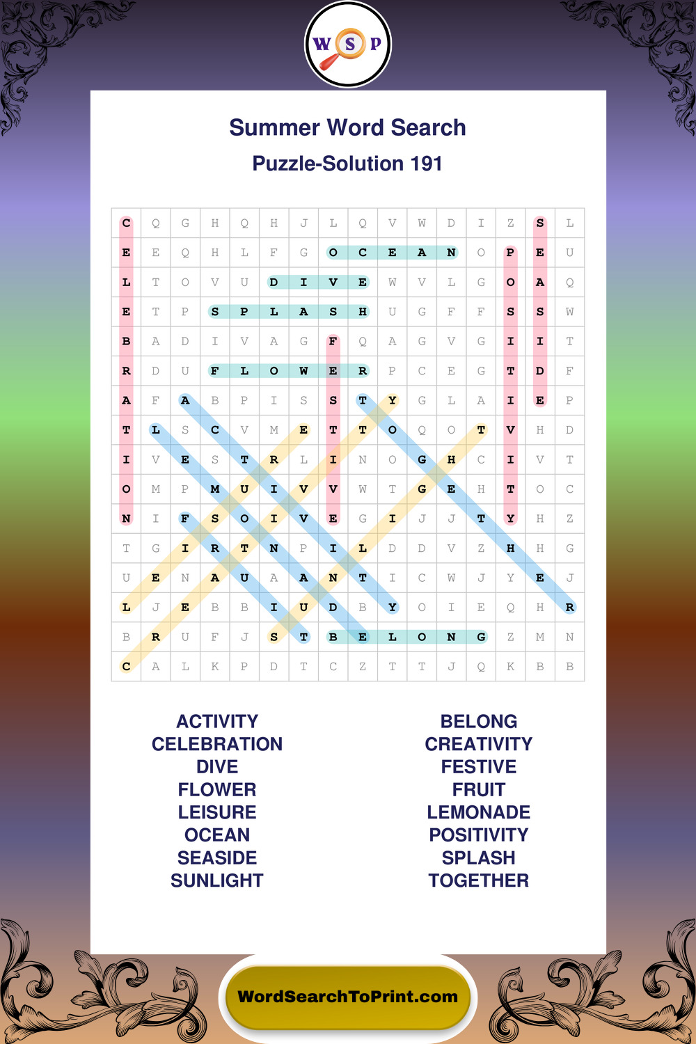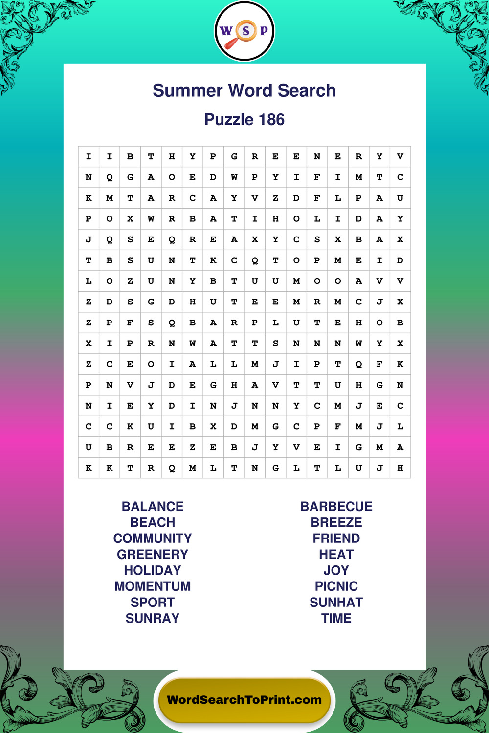 Browse large print Summer wordsearches created to support clear vision, steady concentration, and relaxed solving.