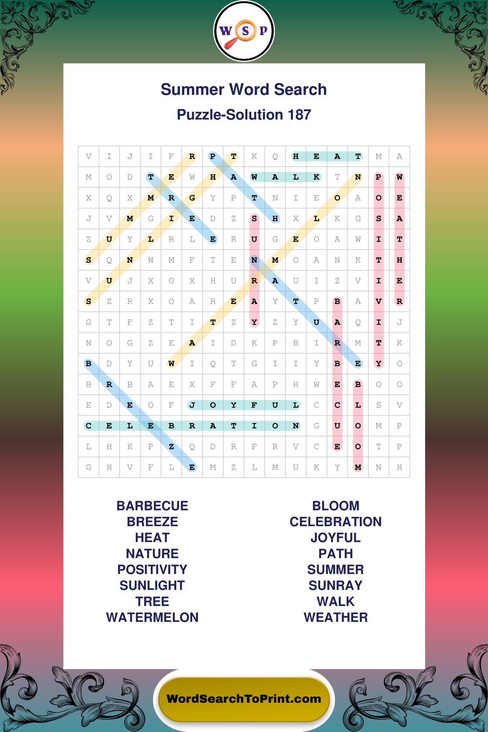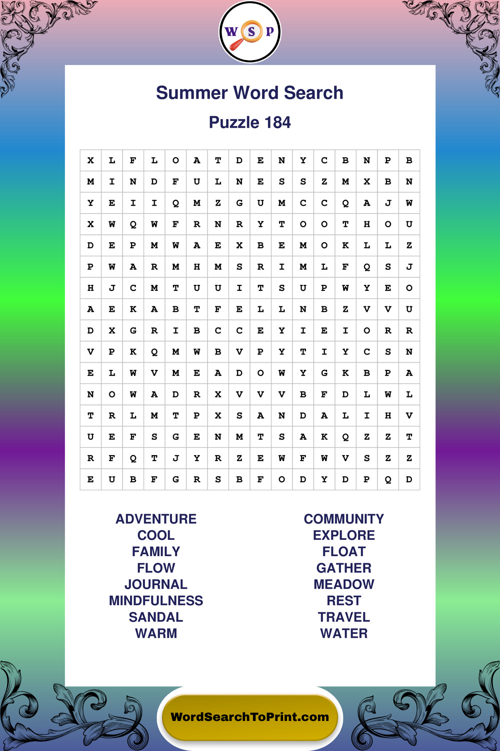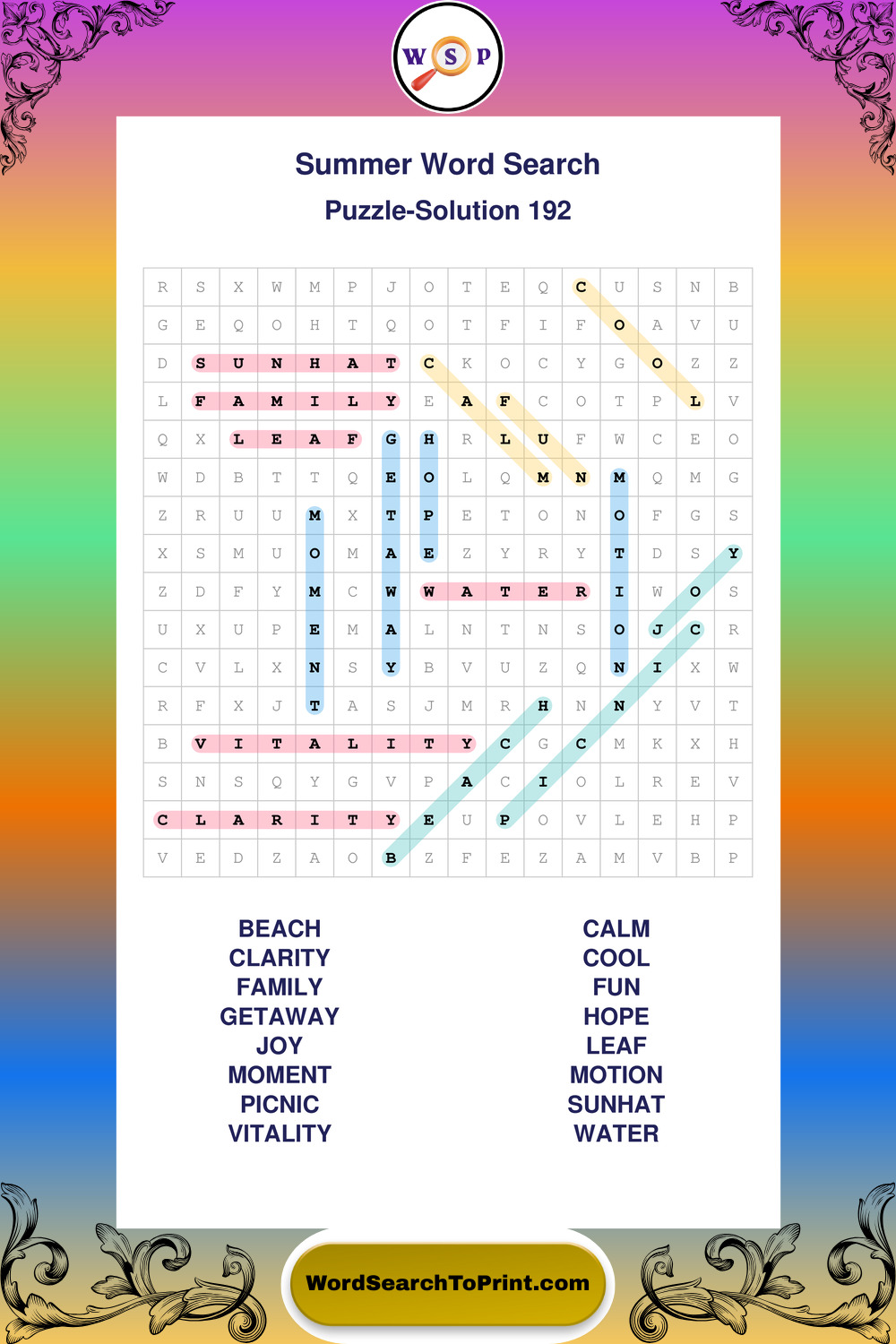 Printable Summer Wordsearch Puzzles