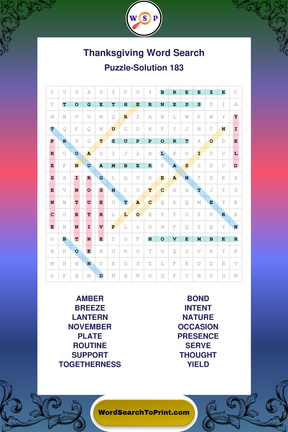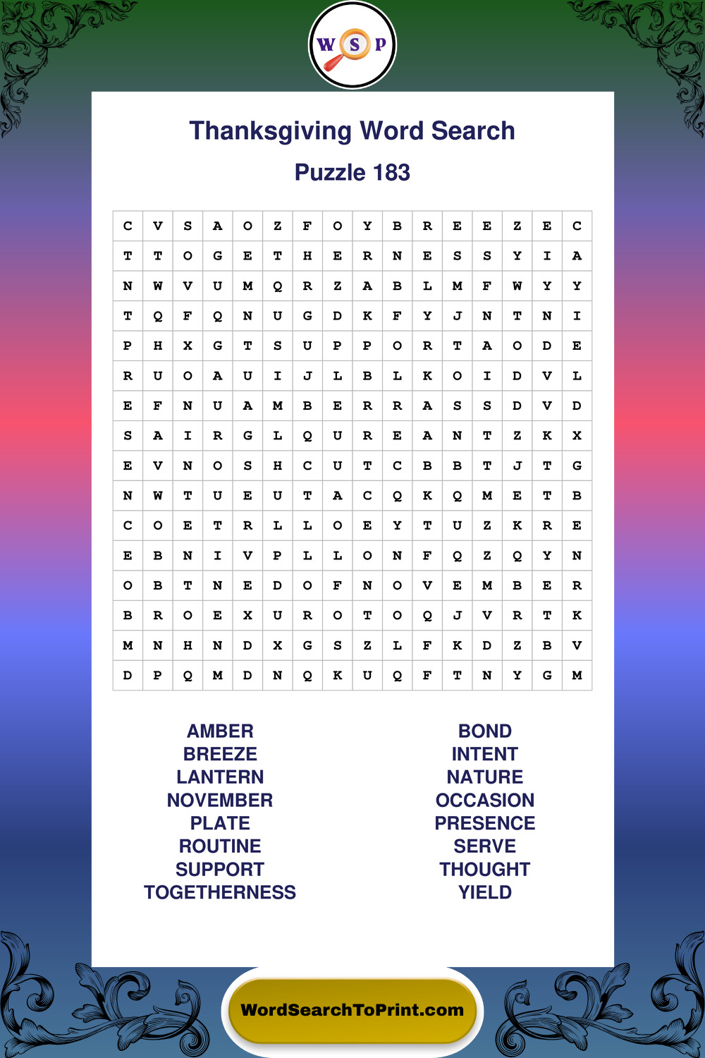 Enjoy large print Thanksgiving wordsearches that balance clarity, simplicity, and enjoyable mental activity.
