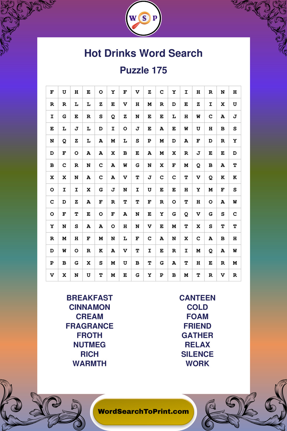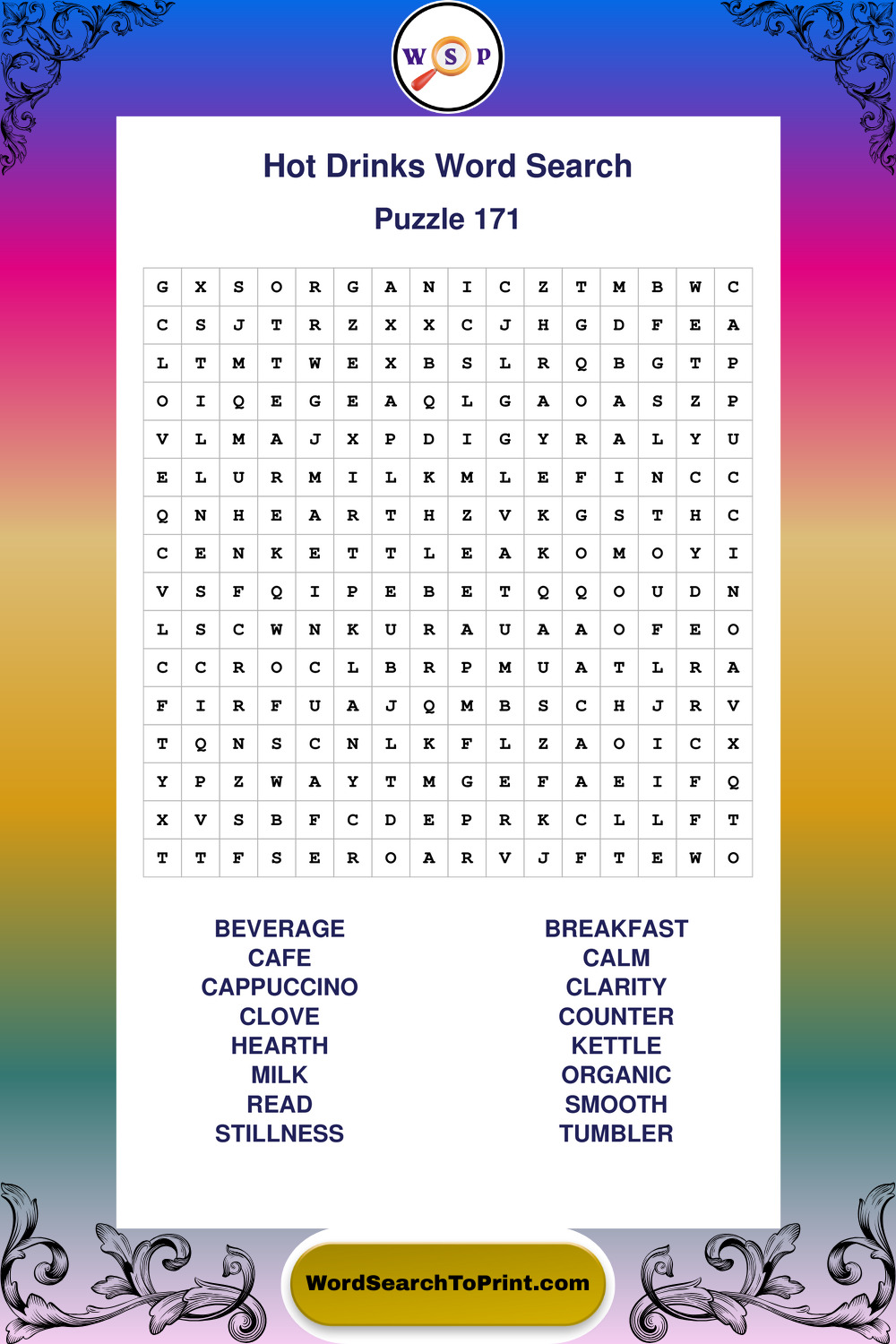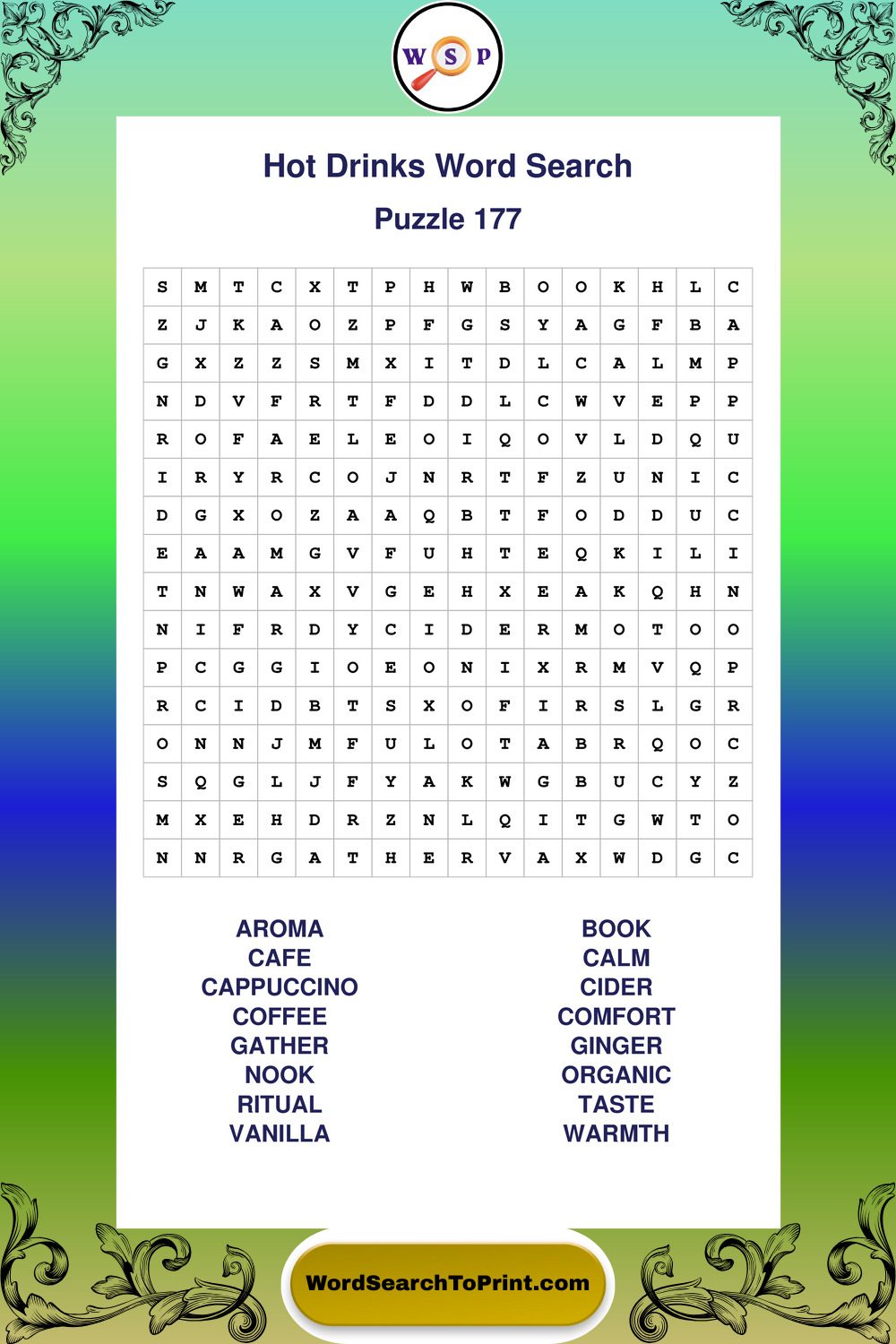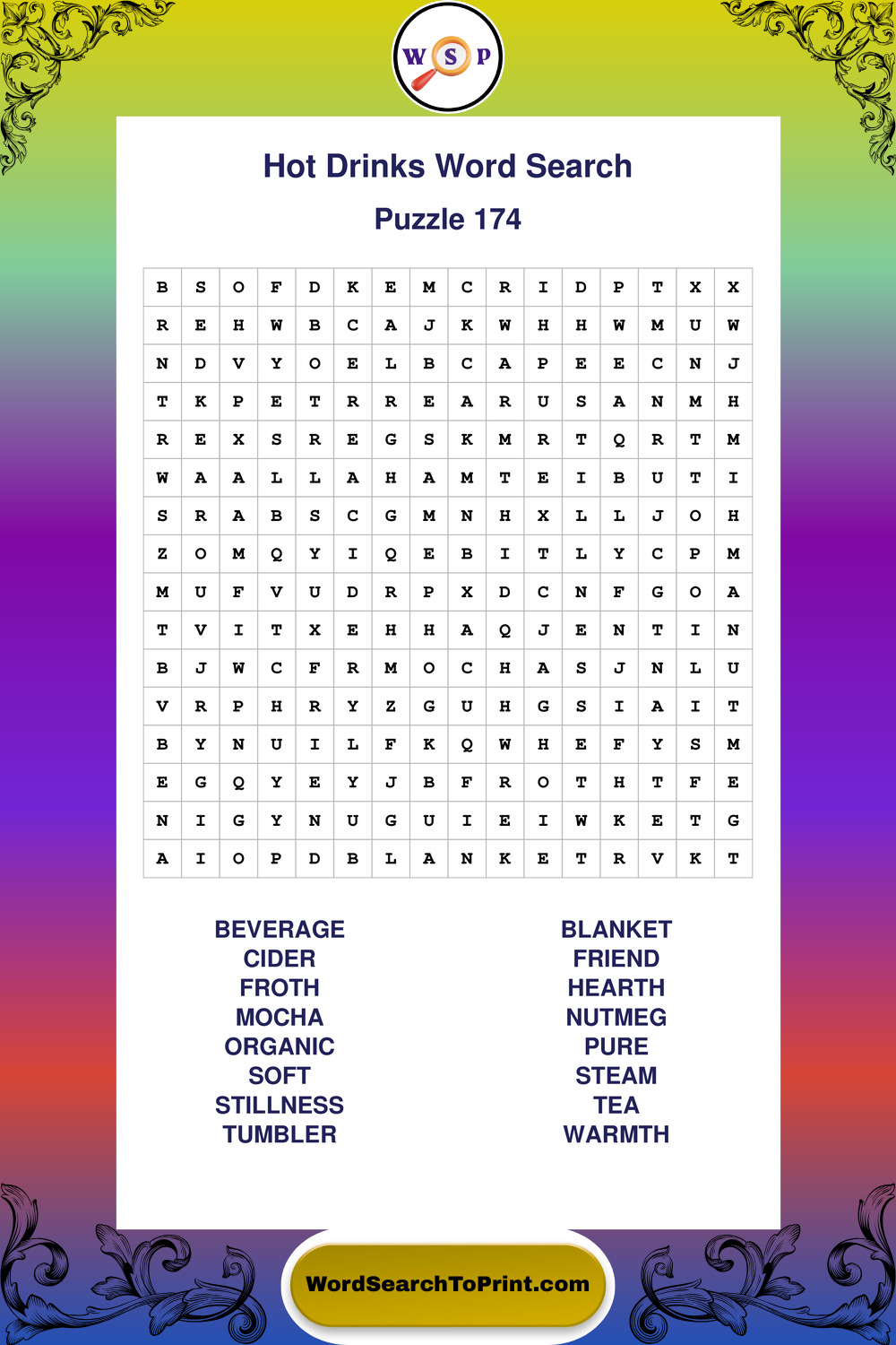 Enjoy large print Hot Drinks wordsearches that balance clarity, simplicity, and enjoyable mental activity.