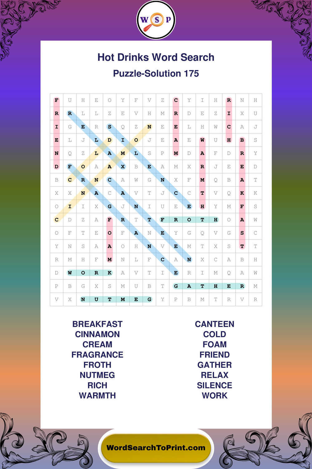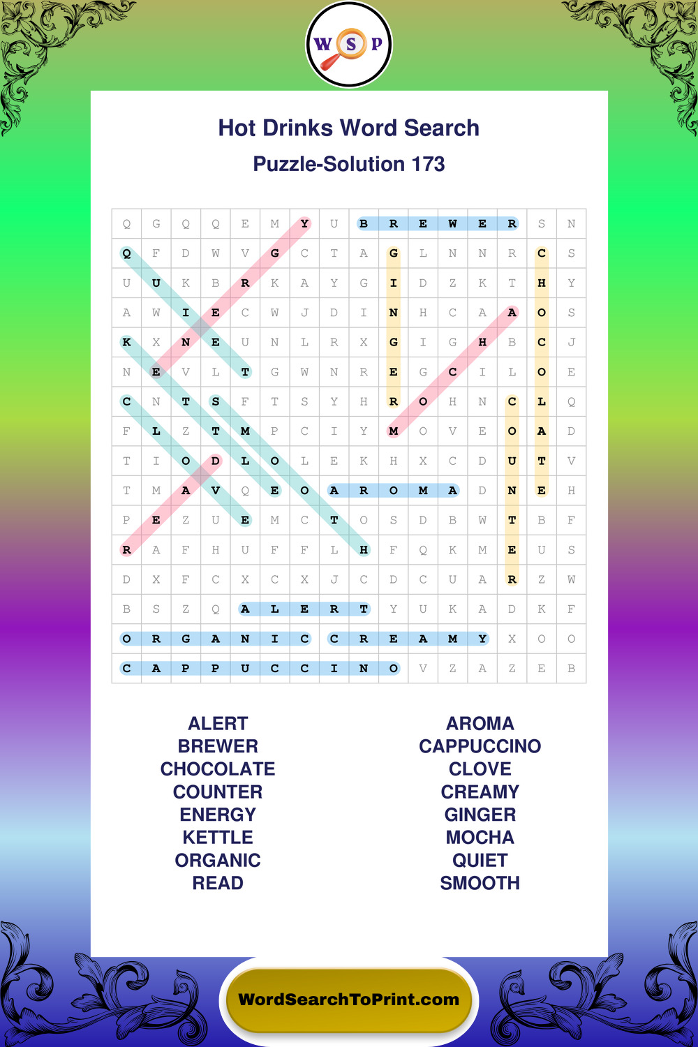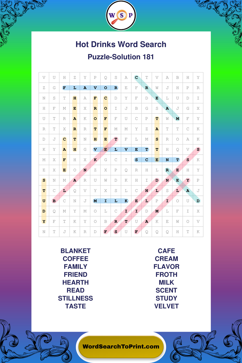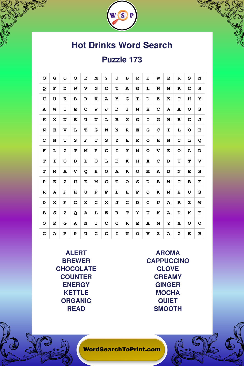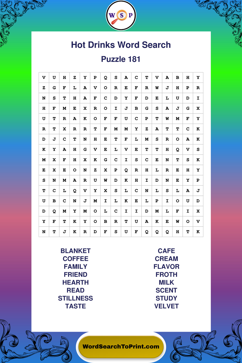 Enjoy large print Hot Drinks wordsearches that balance clarity, simplicity, and enjoyable mental activity.