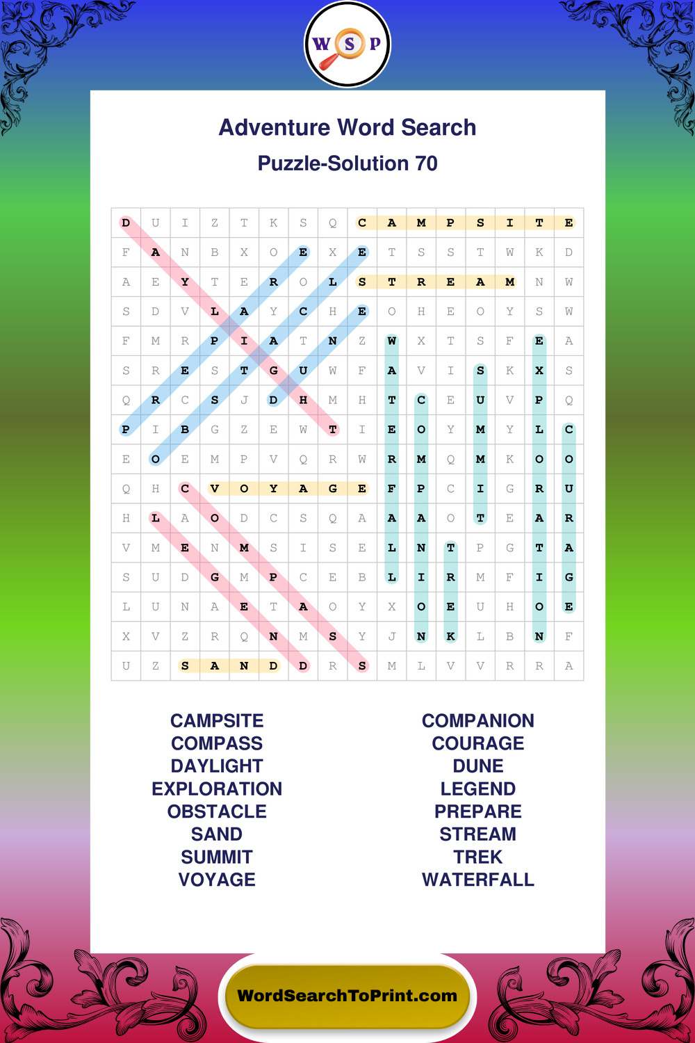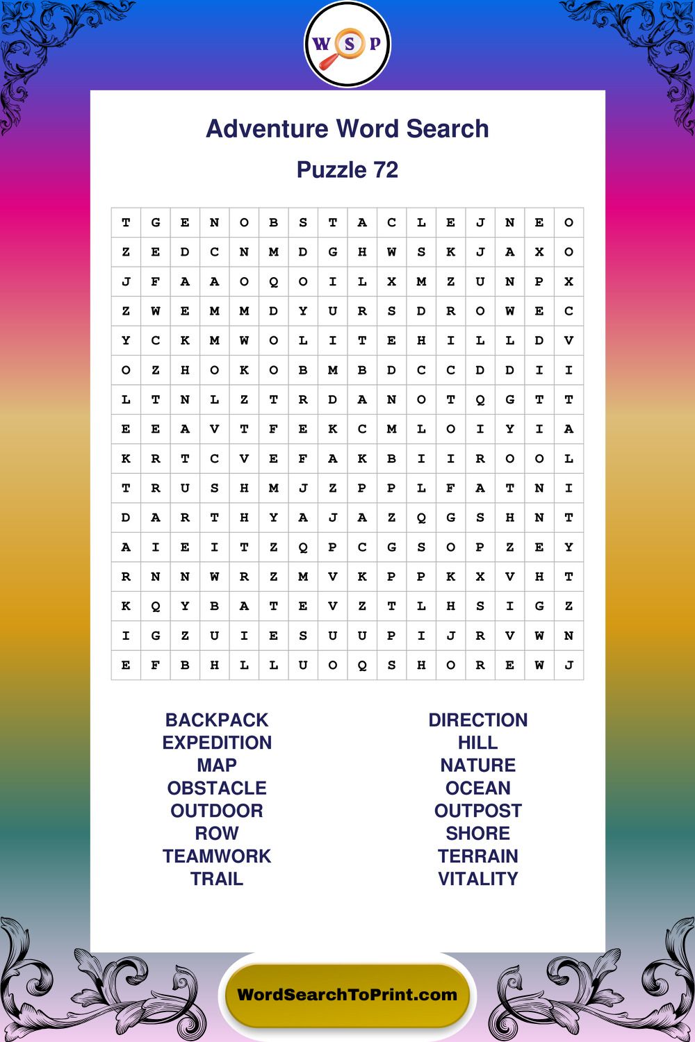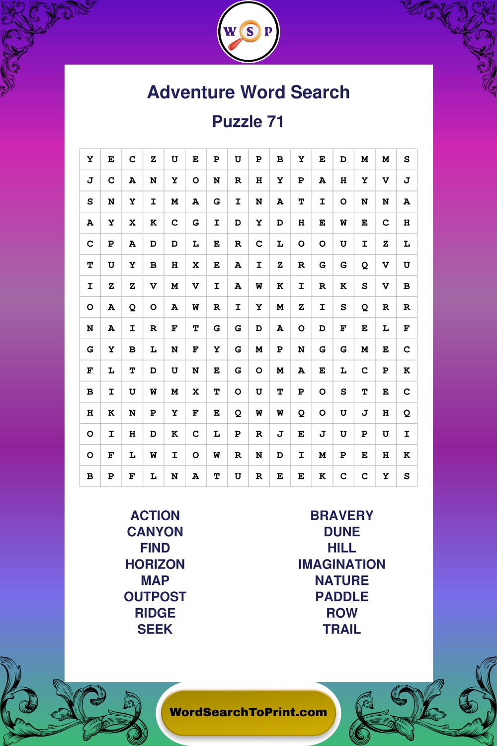 Printable Adventure Wordsearch Puzzles