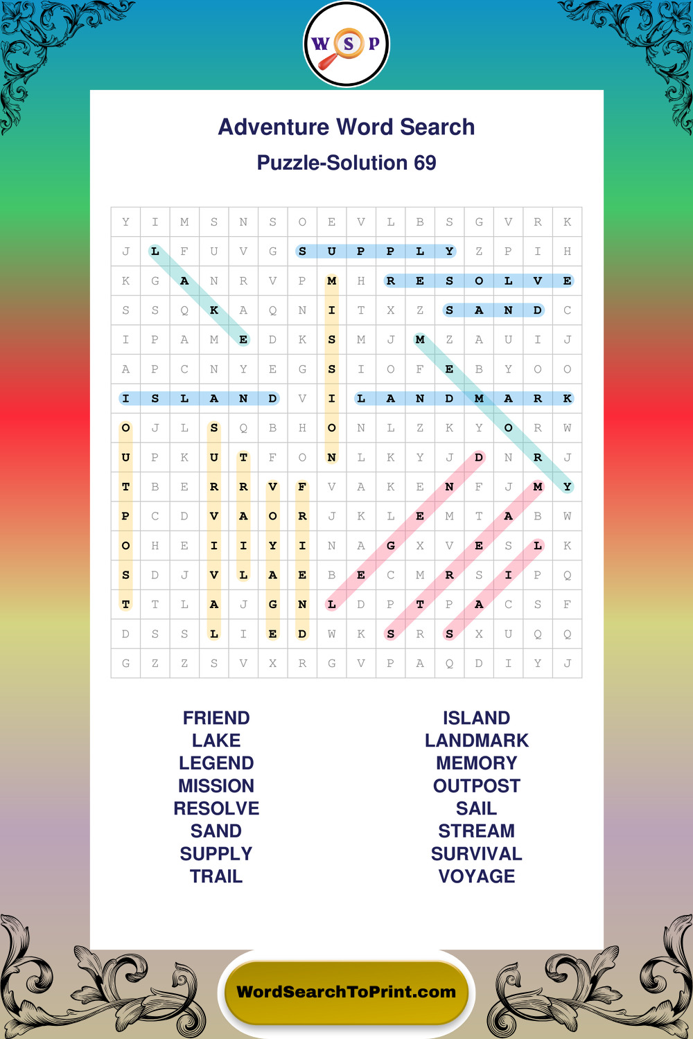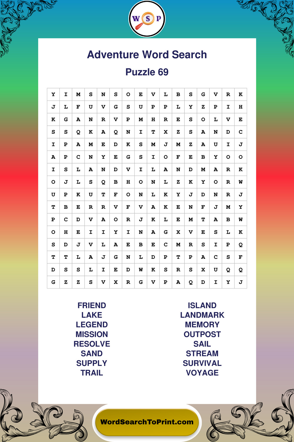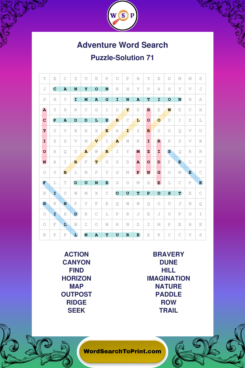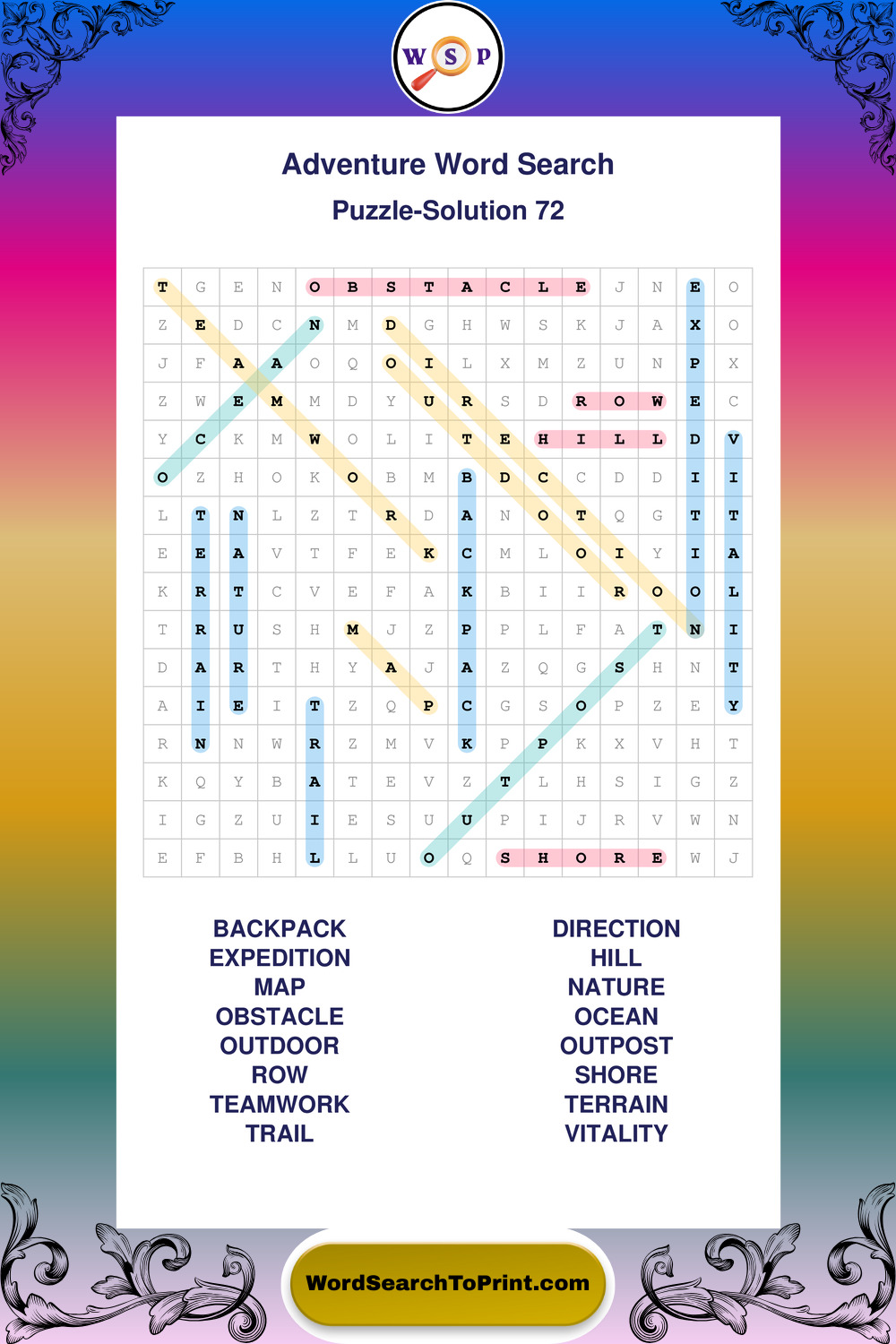 Printable Adventure Wordsearch Puzzles