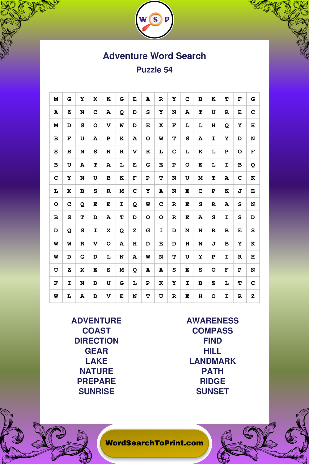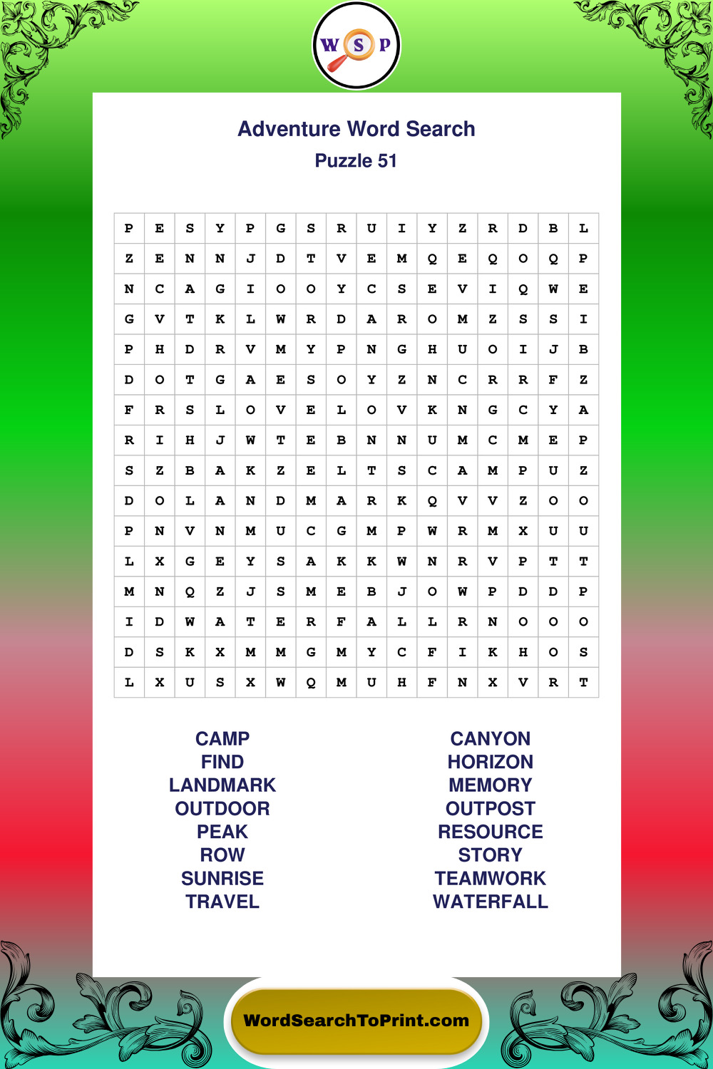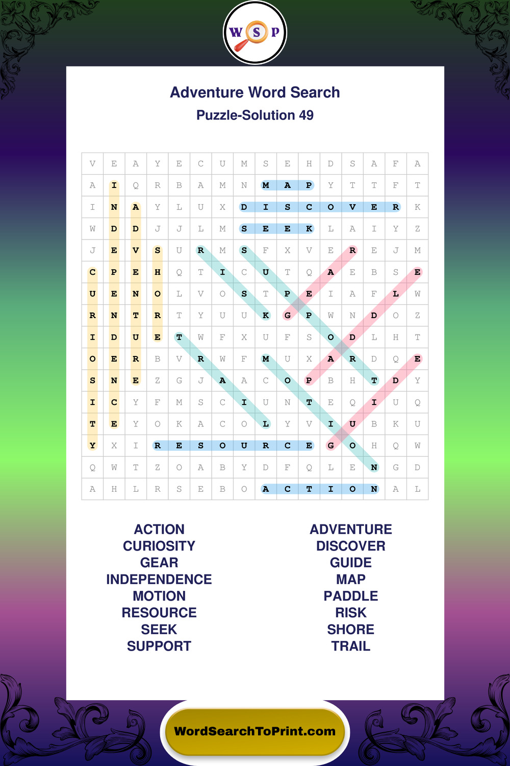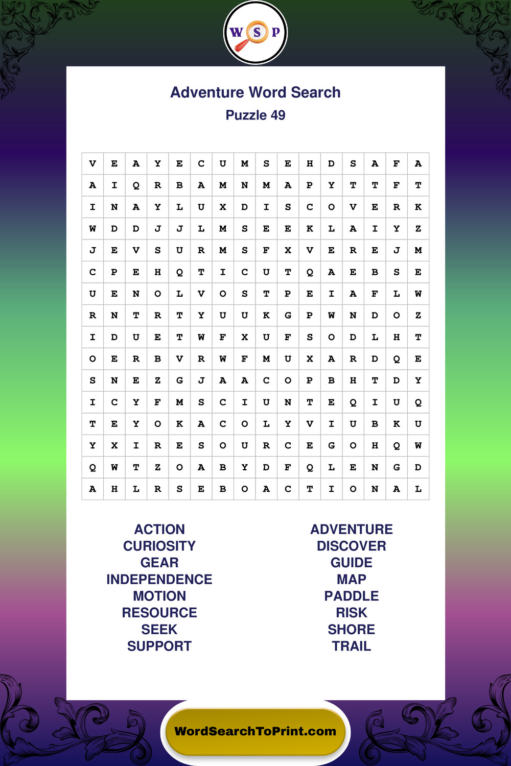 Printable Adventure Wordsearch Puzzles