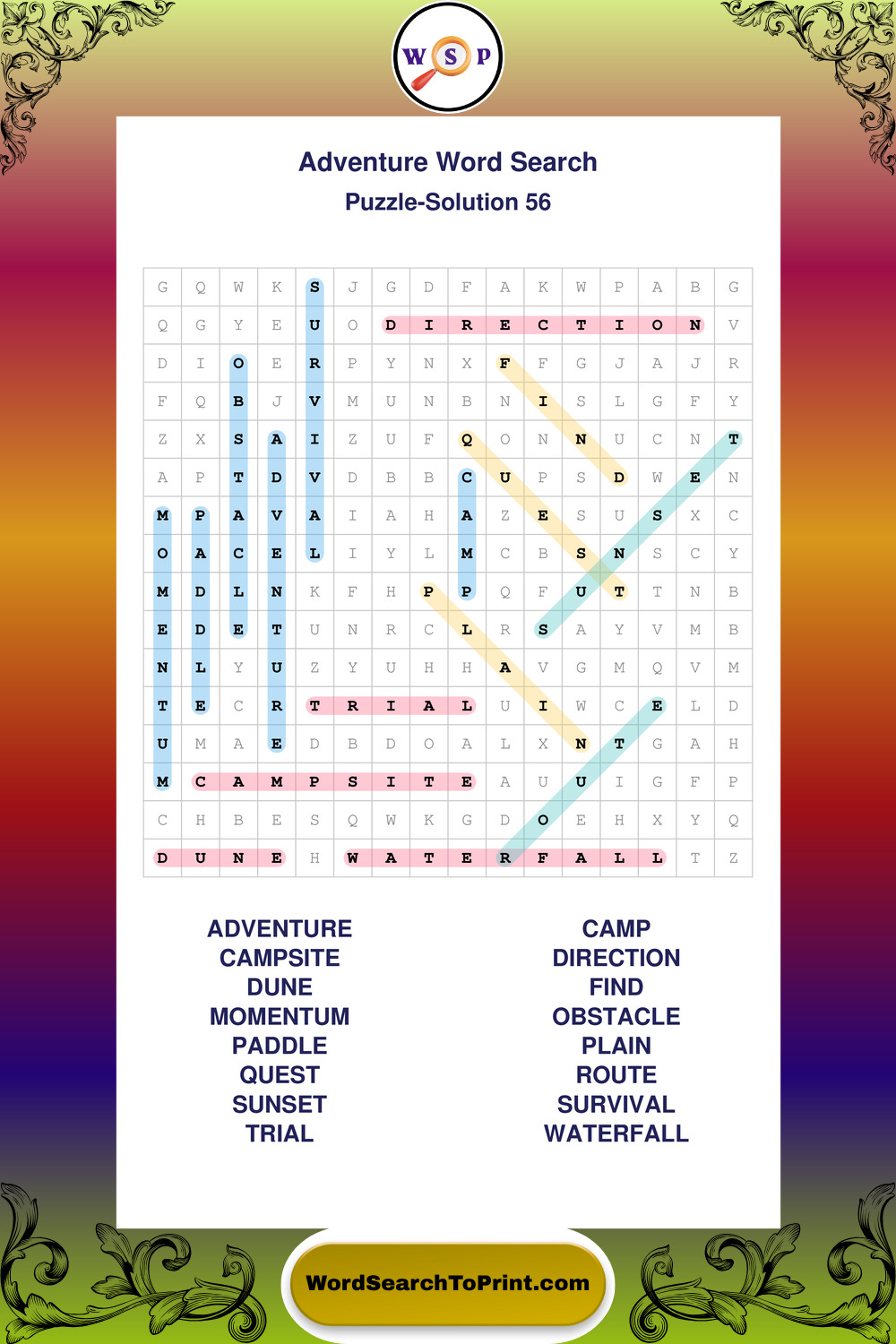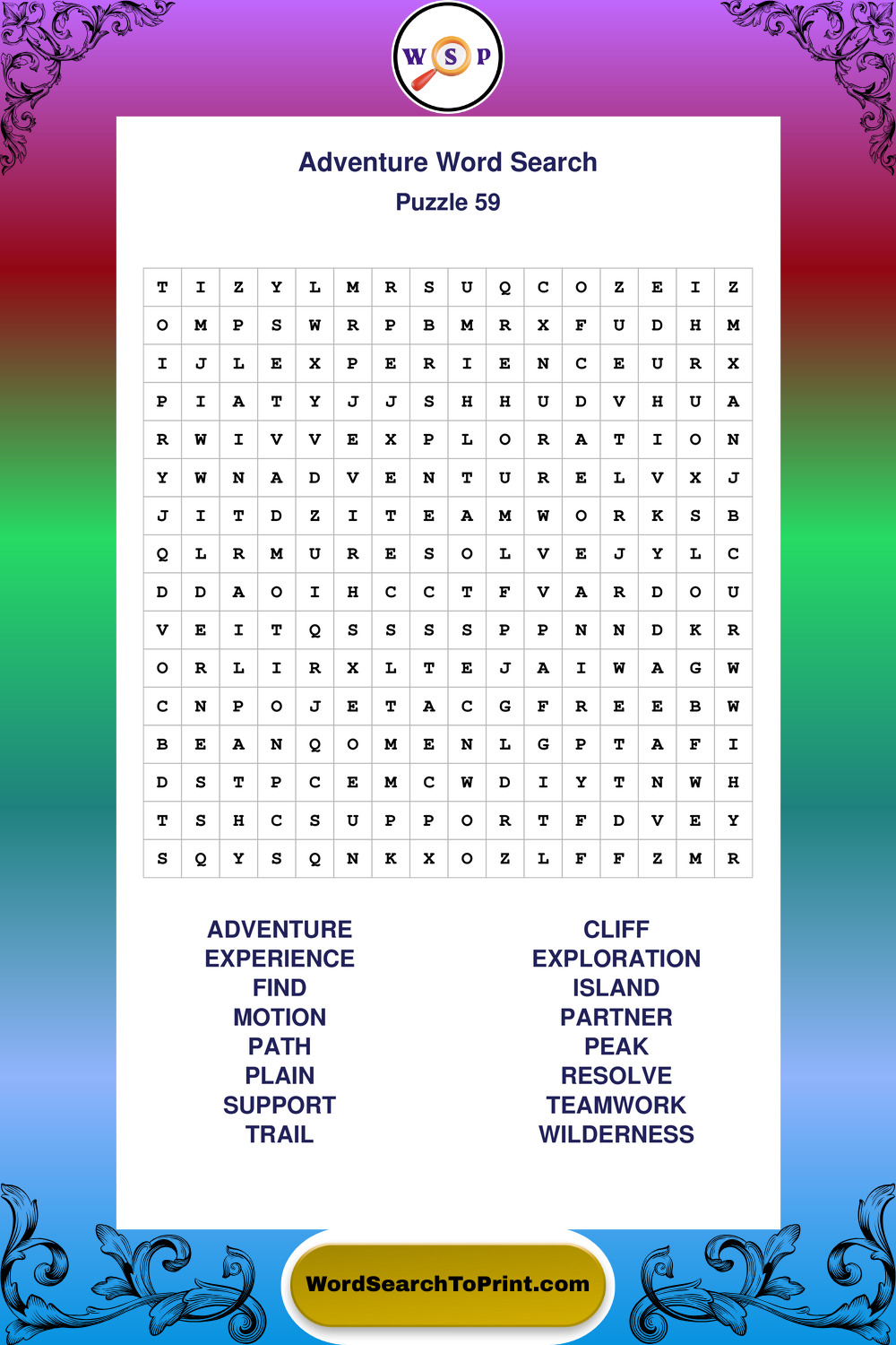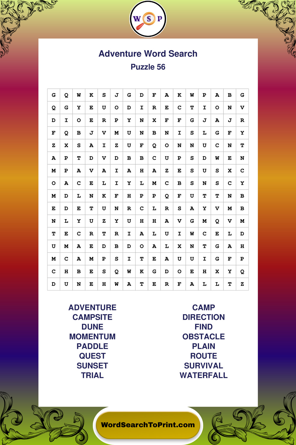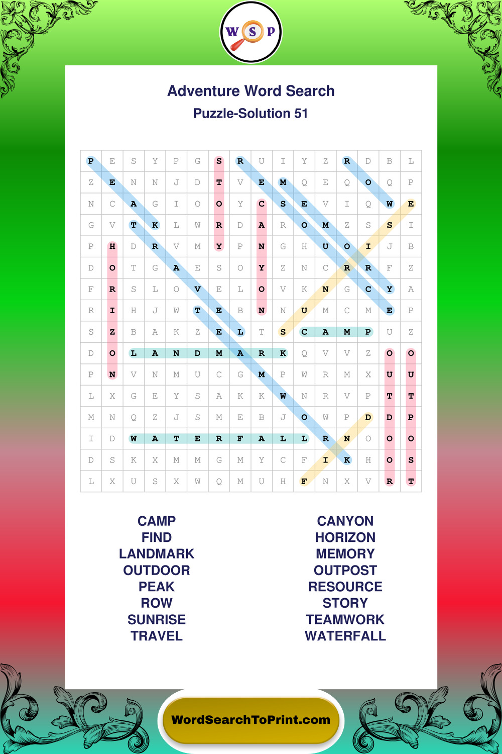Printable Adventure Wordsearch Puzzles