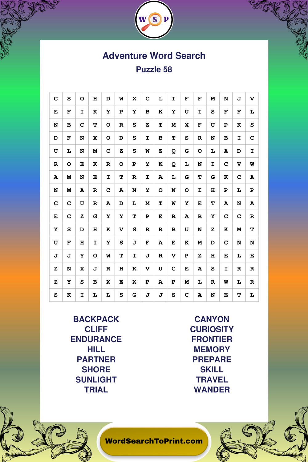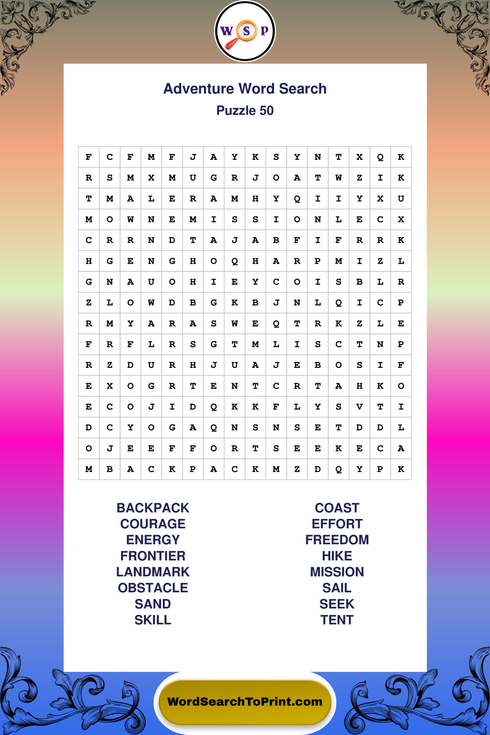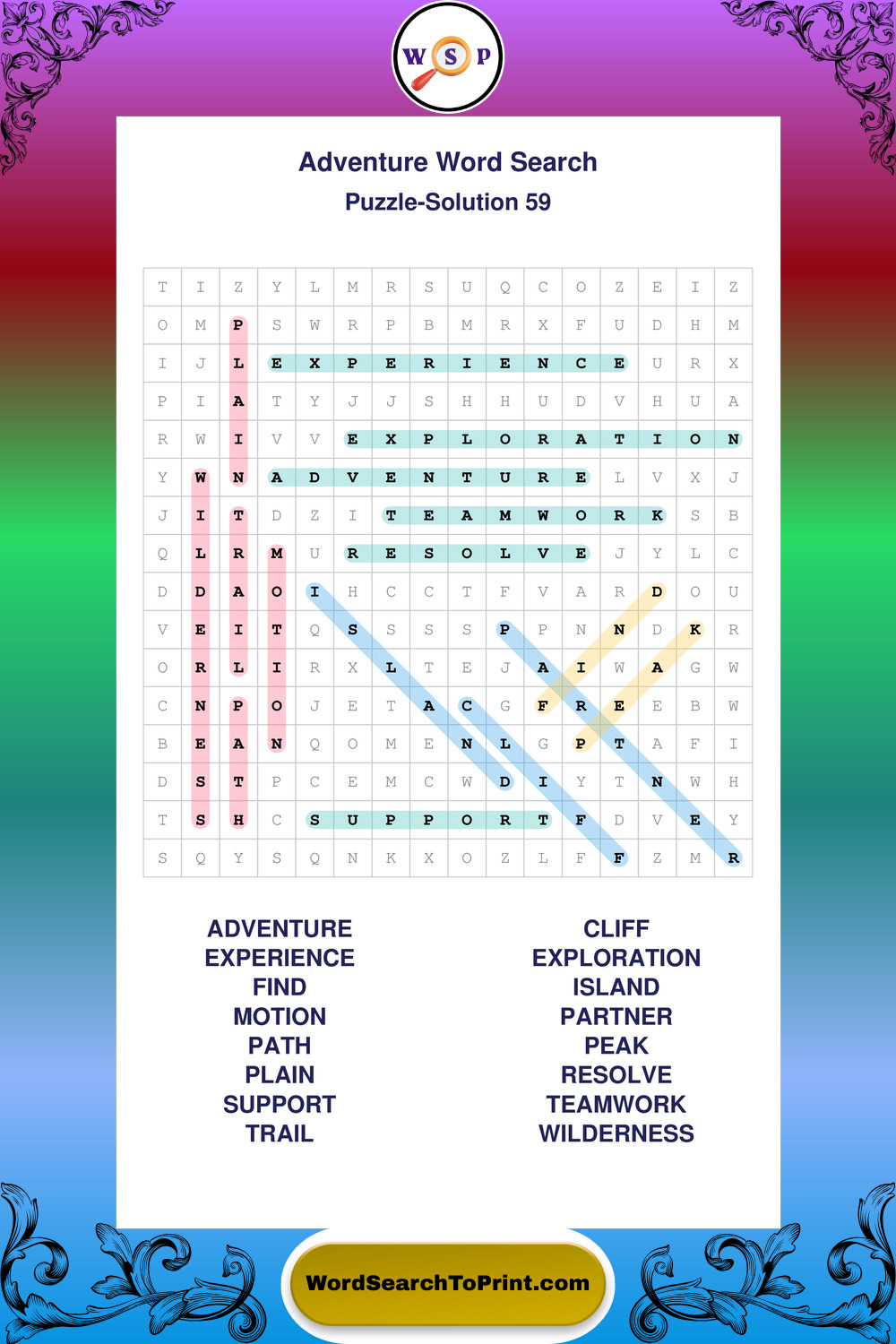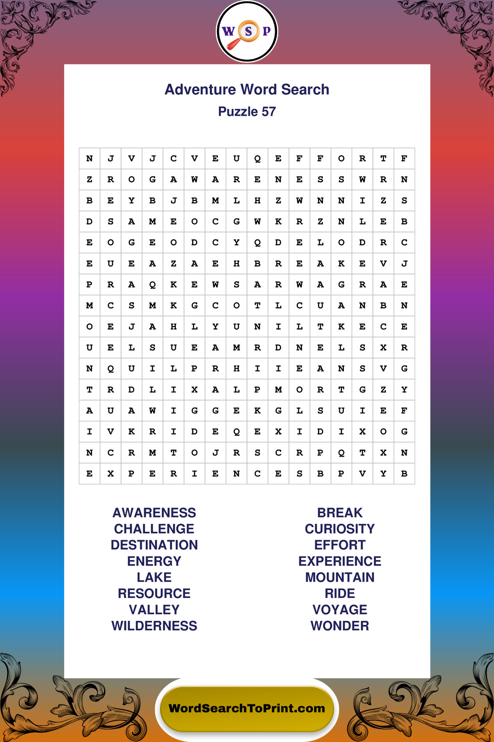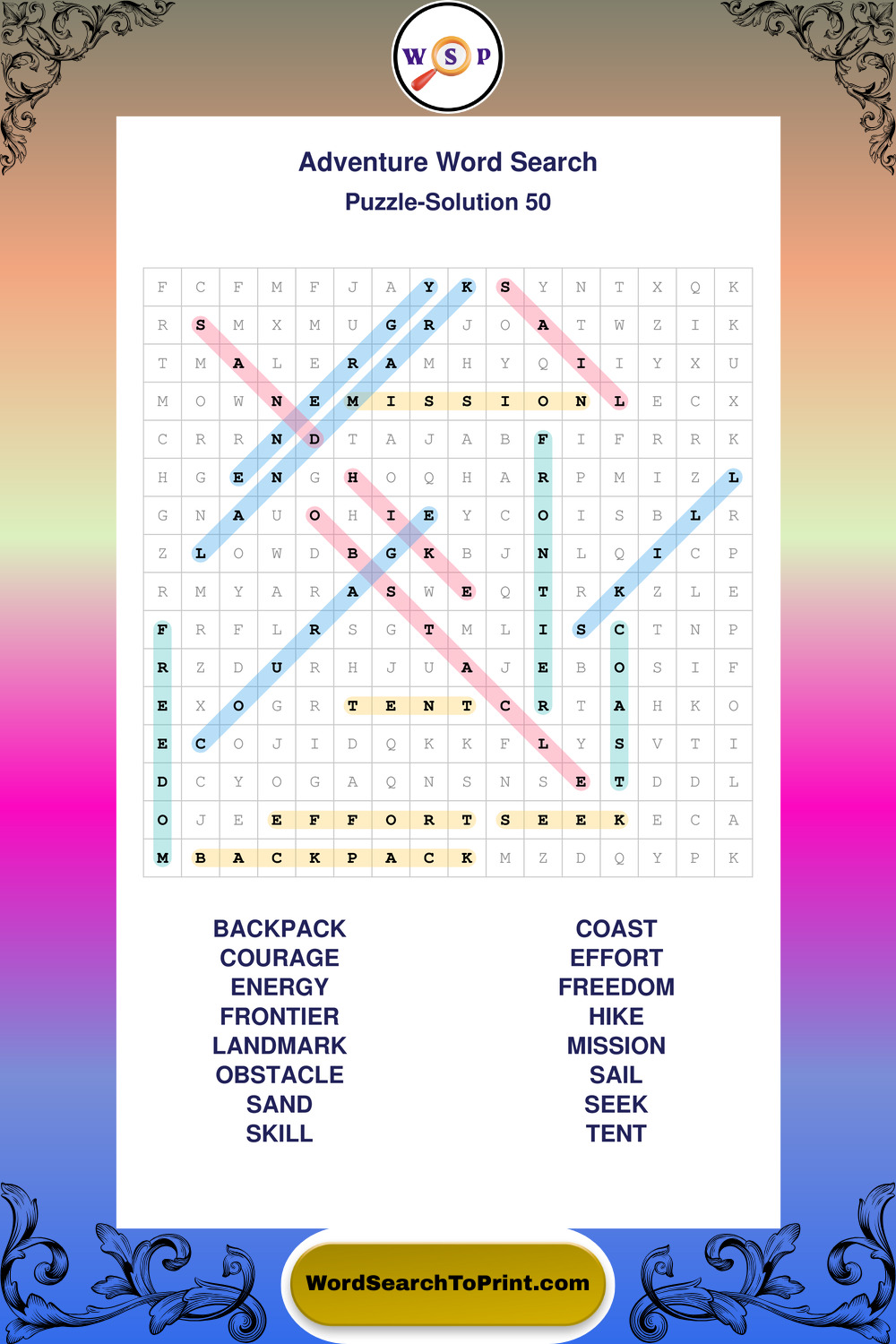 Printable Adventure Wordsearch Puzzles