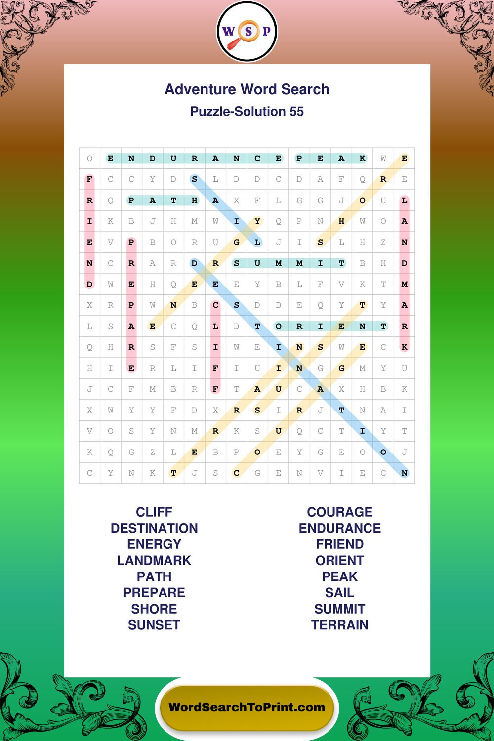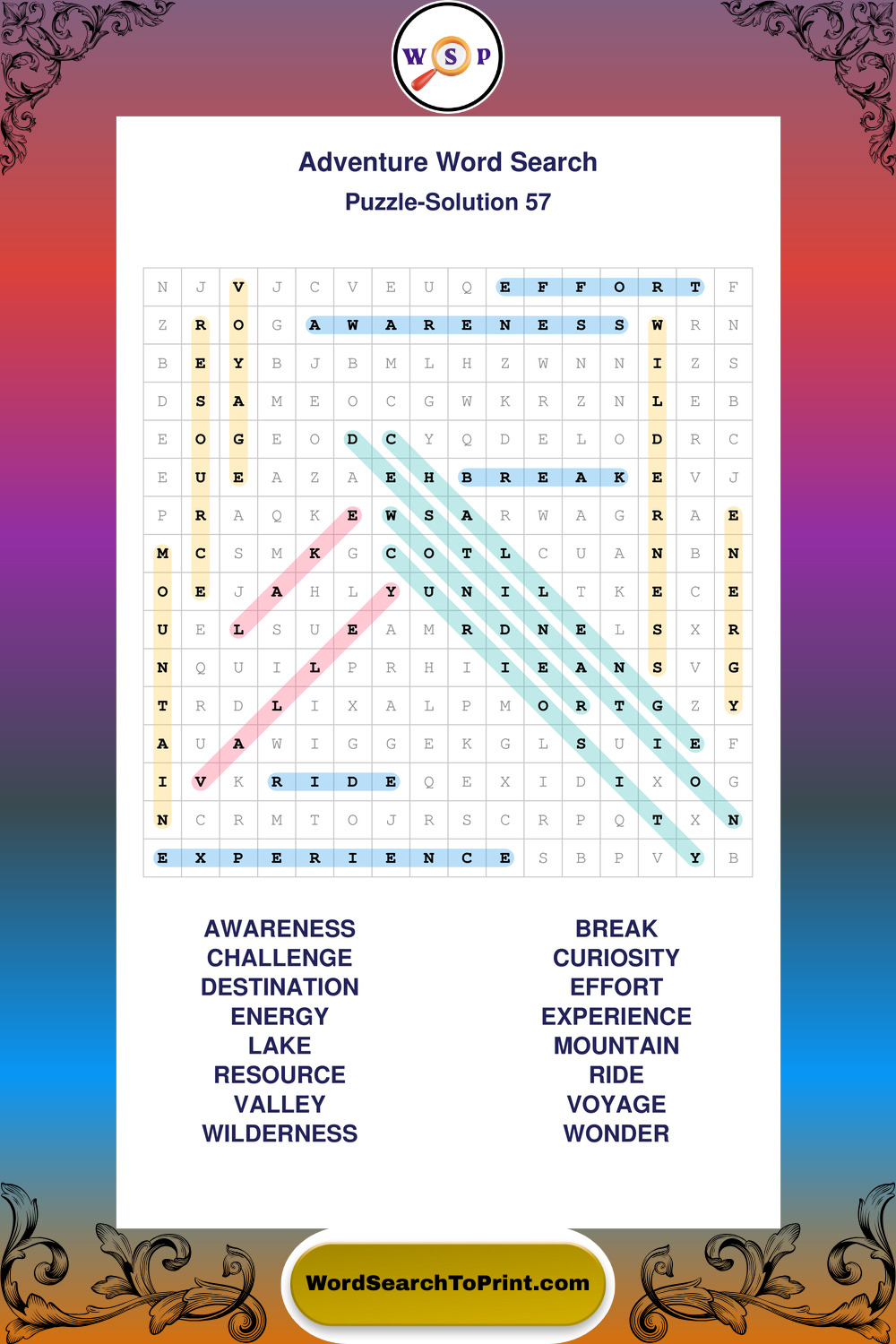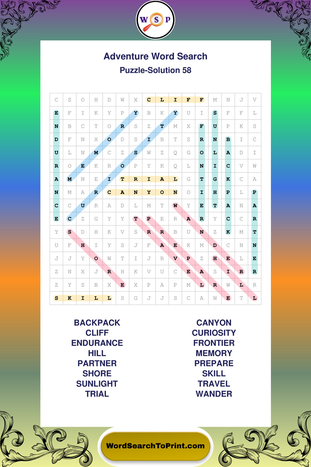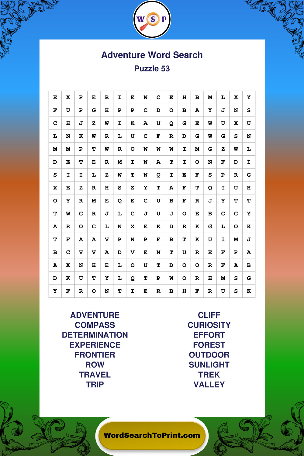 Printable Adventure Wordsearch Puzzles