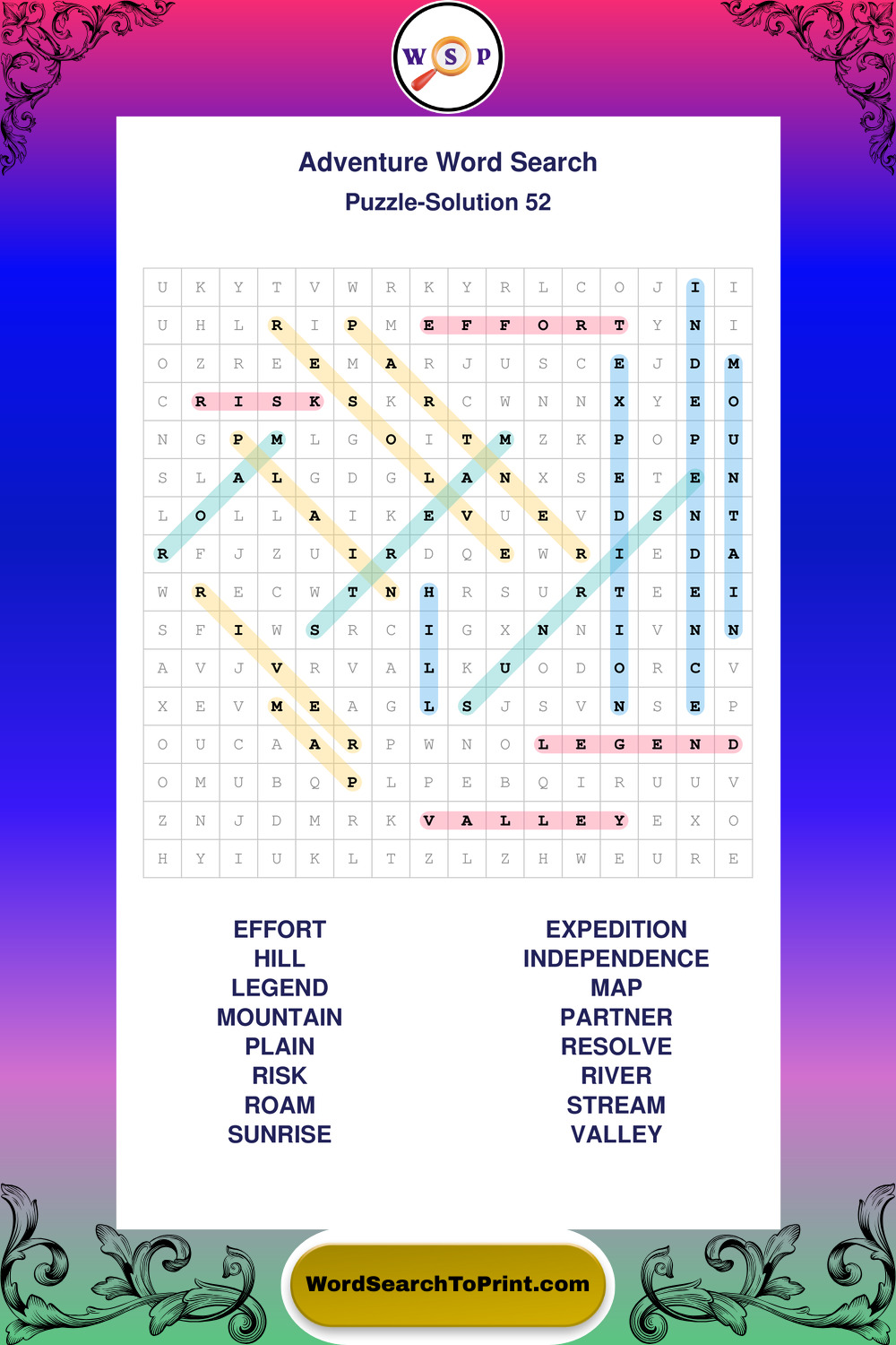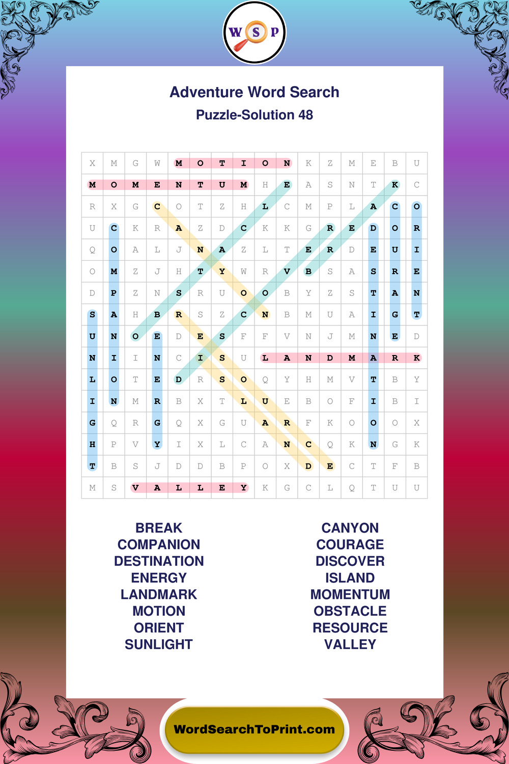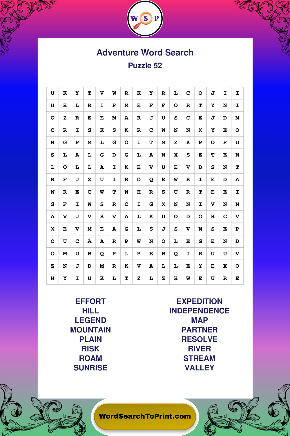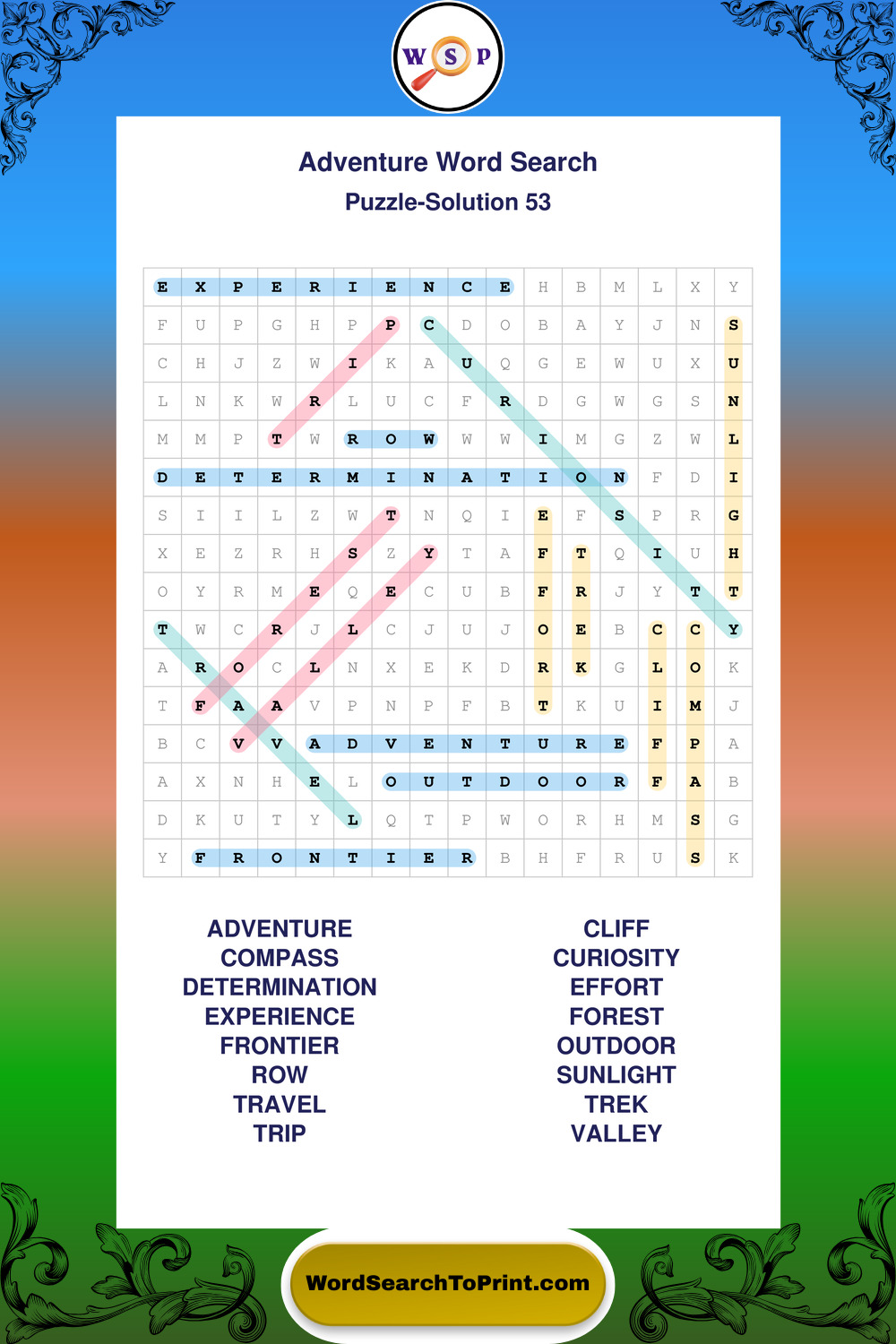 Printable Adventure Wordsearch Puzzles