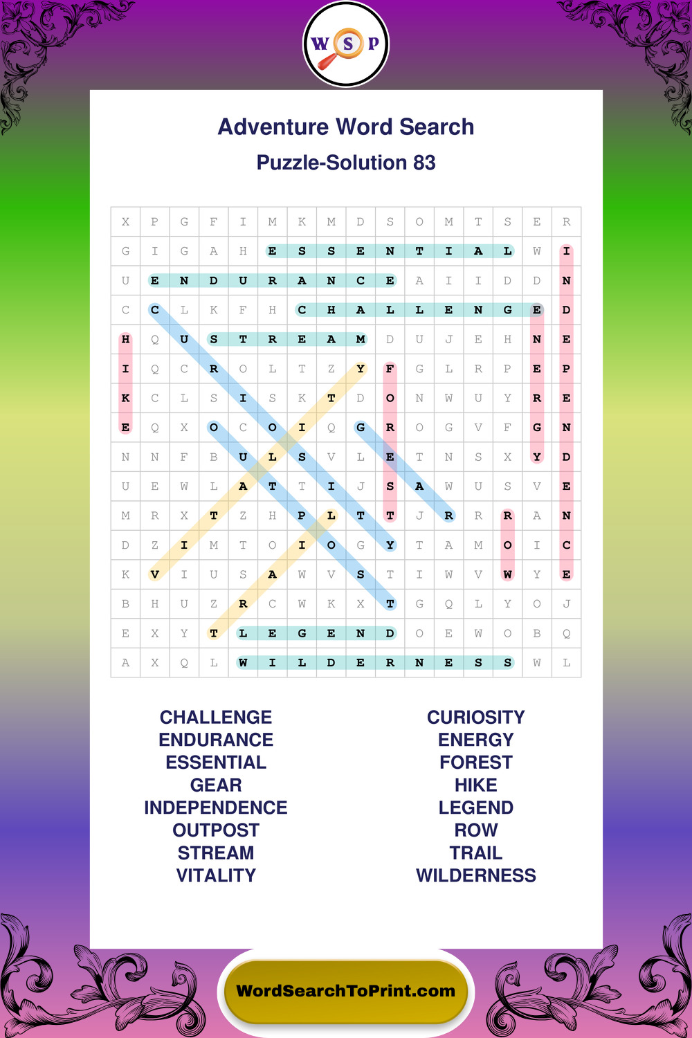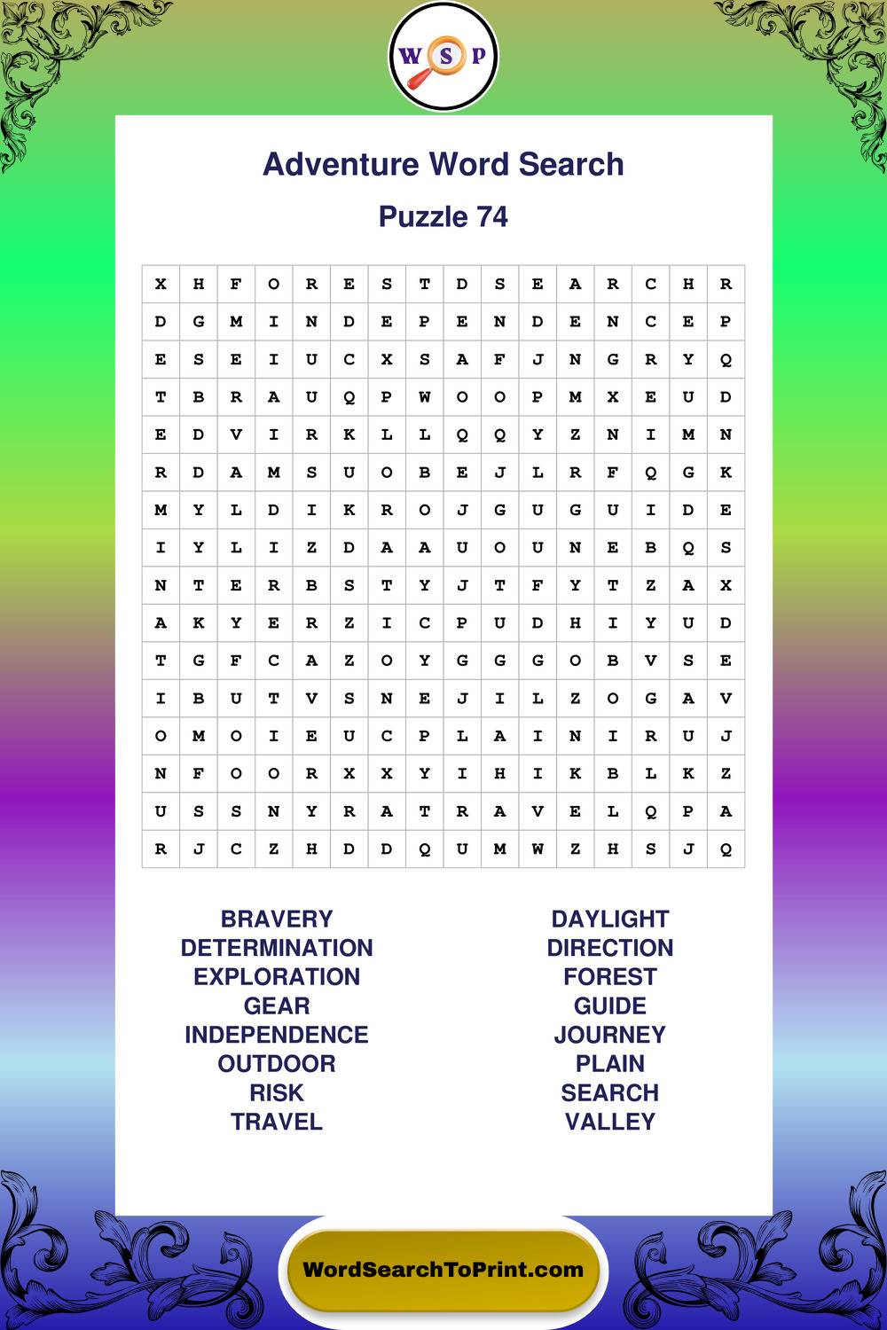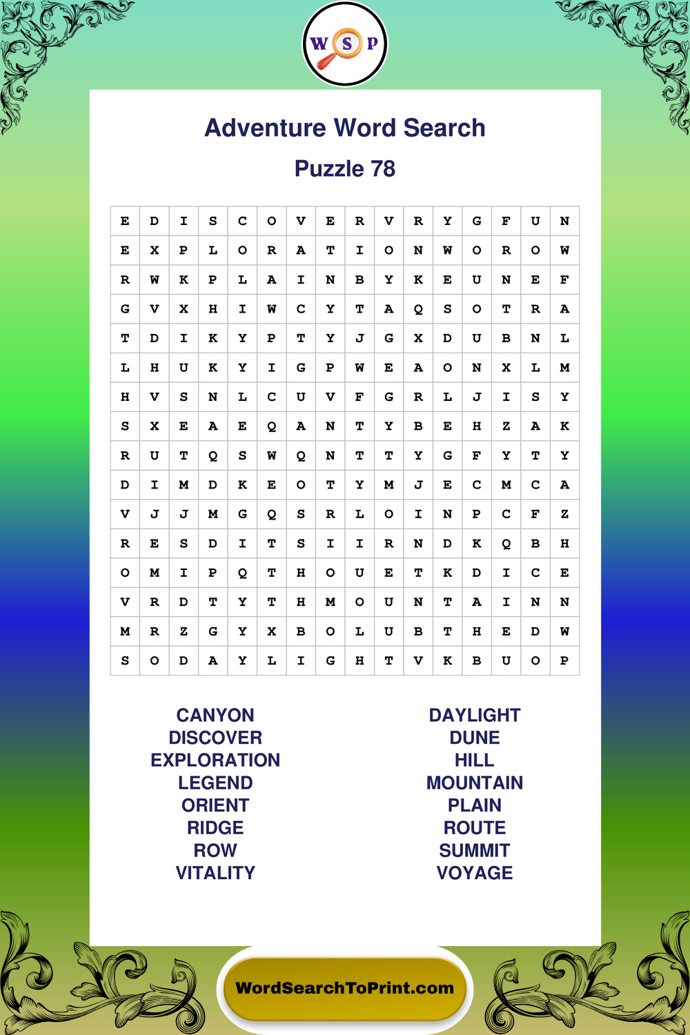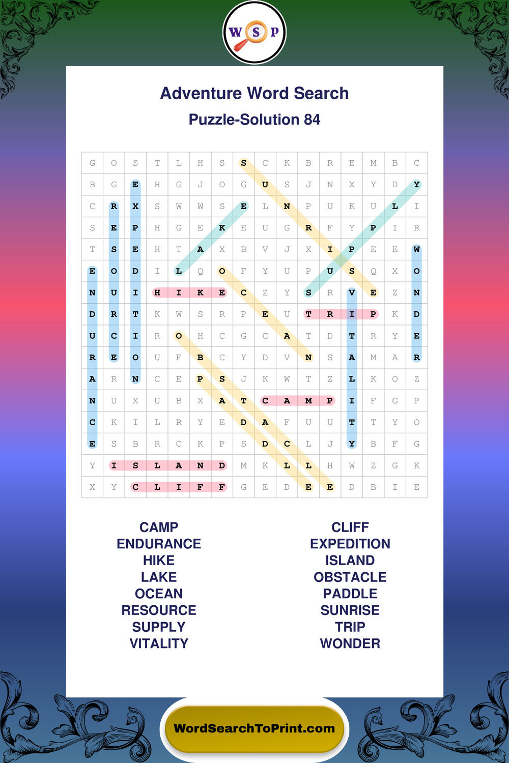 Printable Adventure Wordsearch Puzzles
