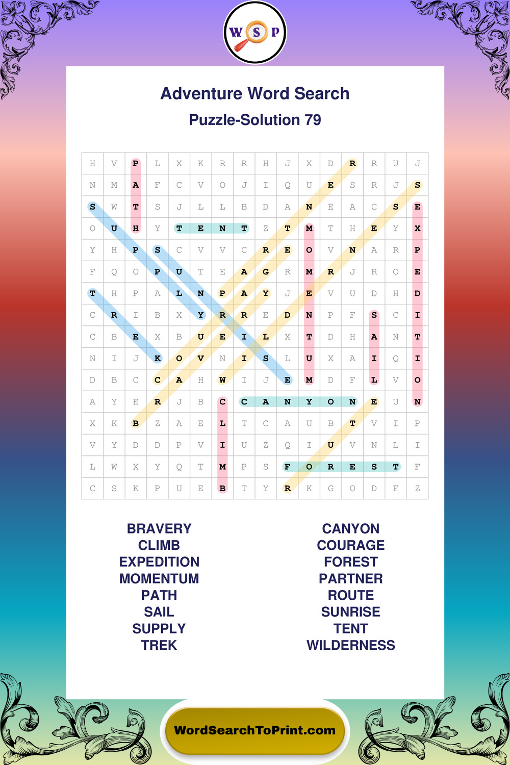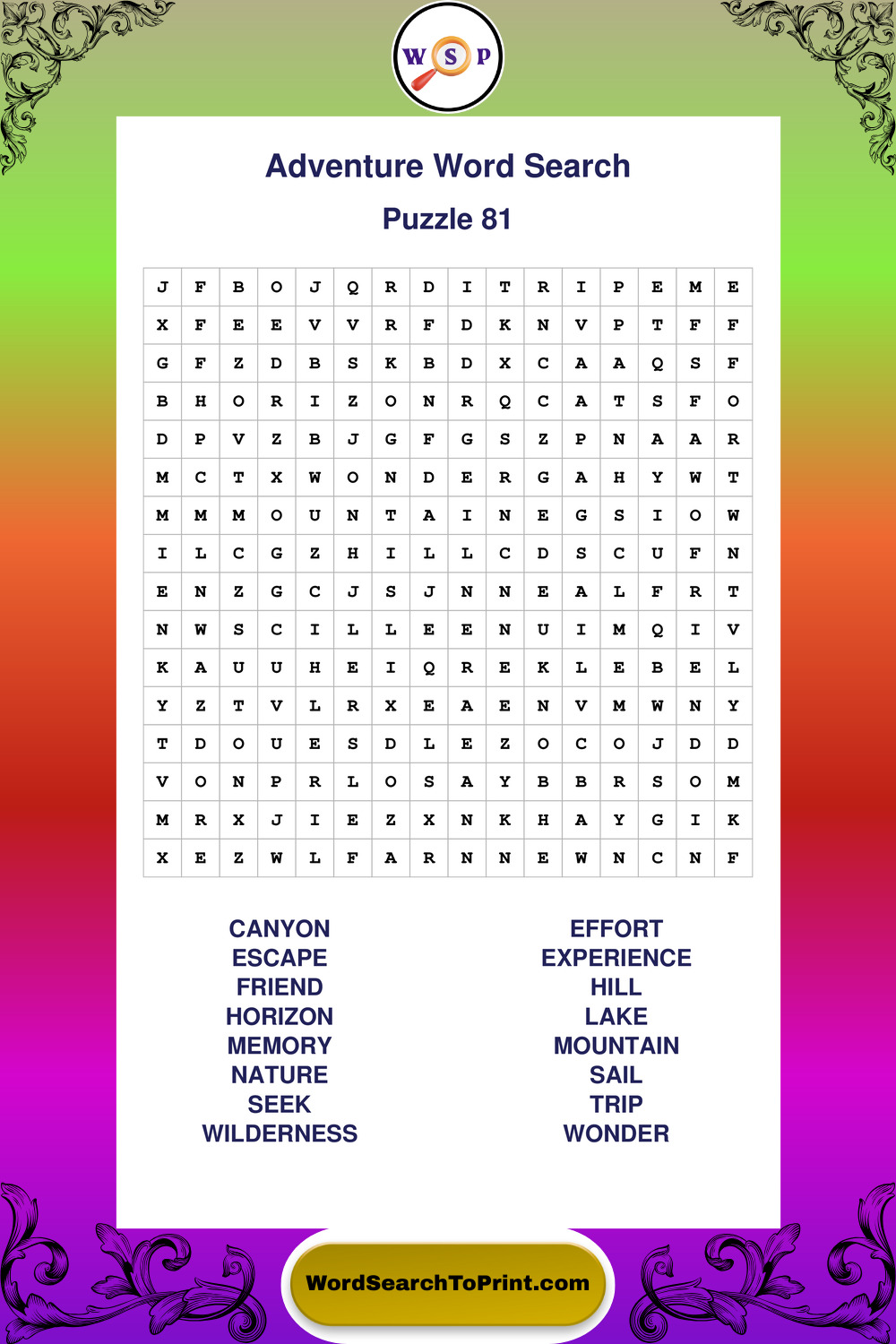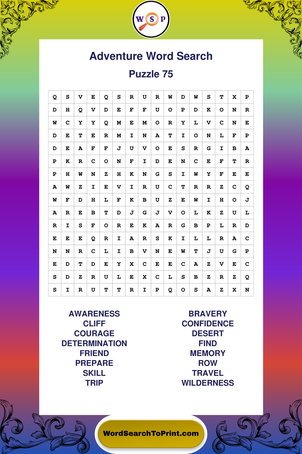 Printable Adventure Wordsearch Puzzles