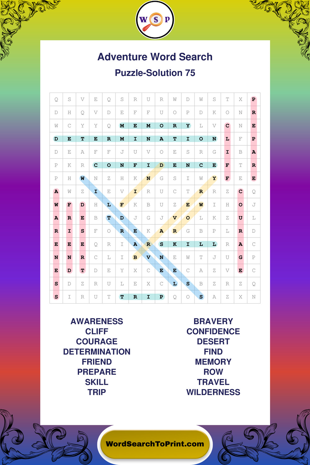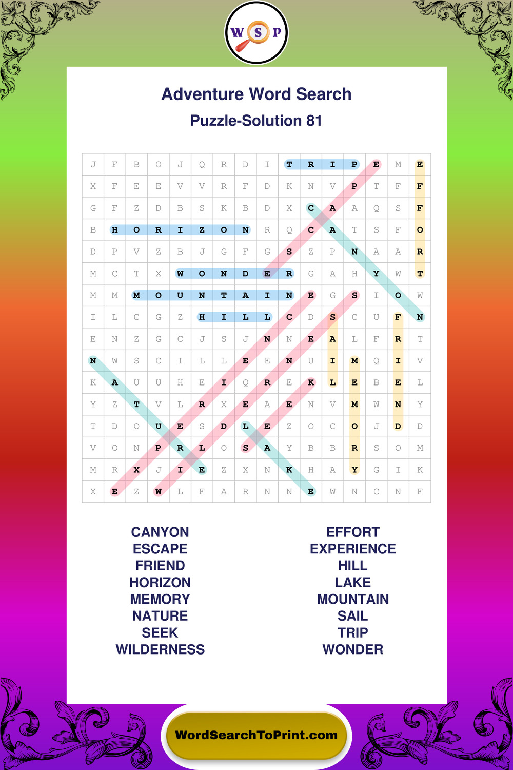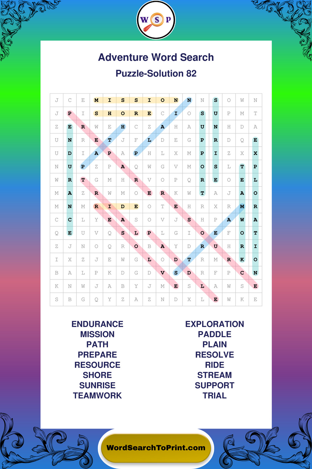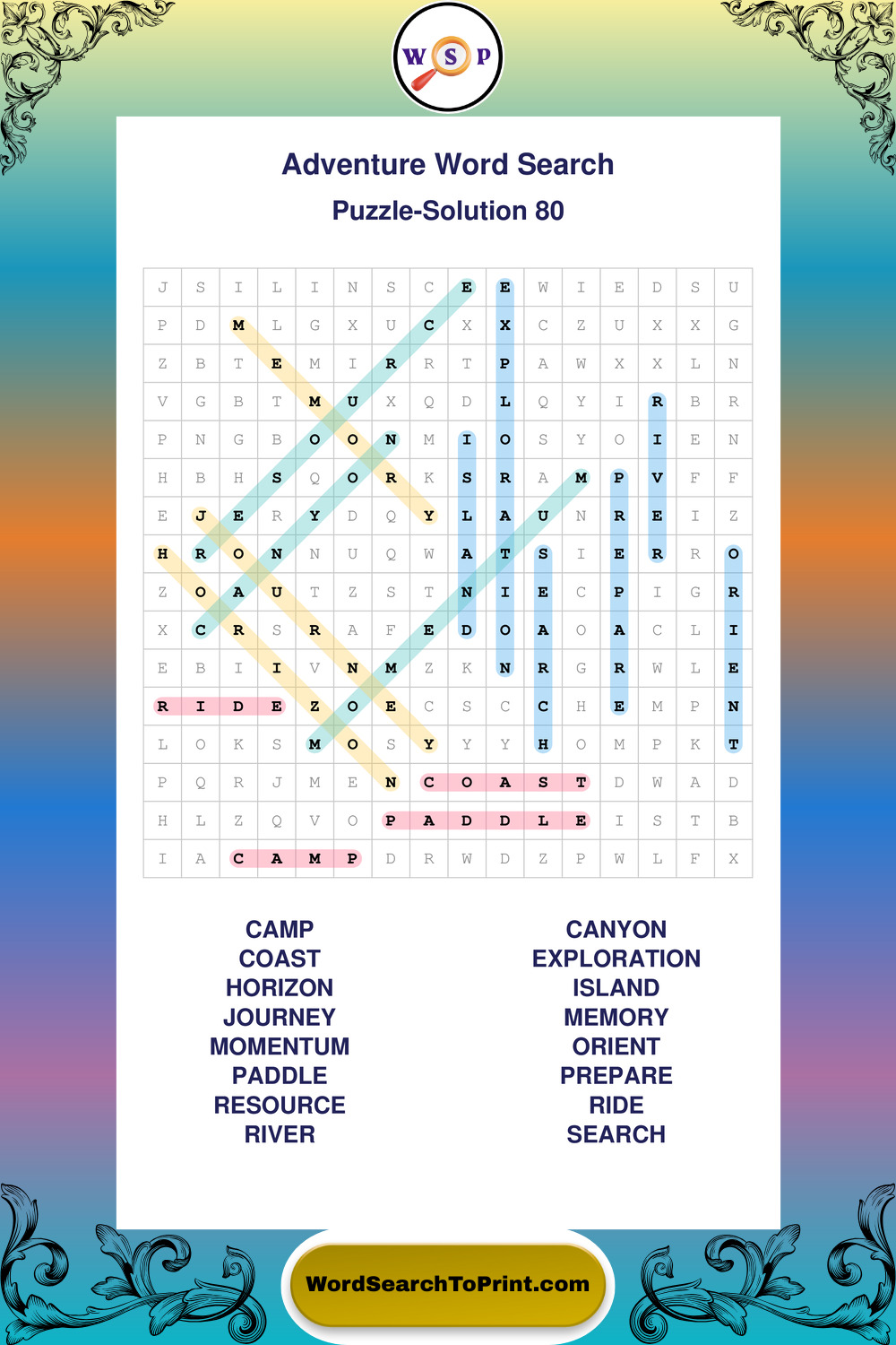 Printable Adventure Wordsearch Puzzles