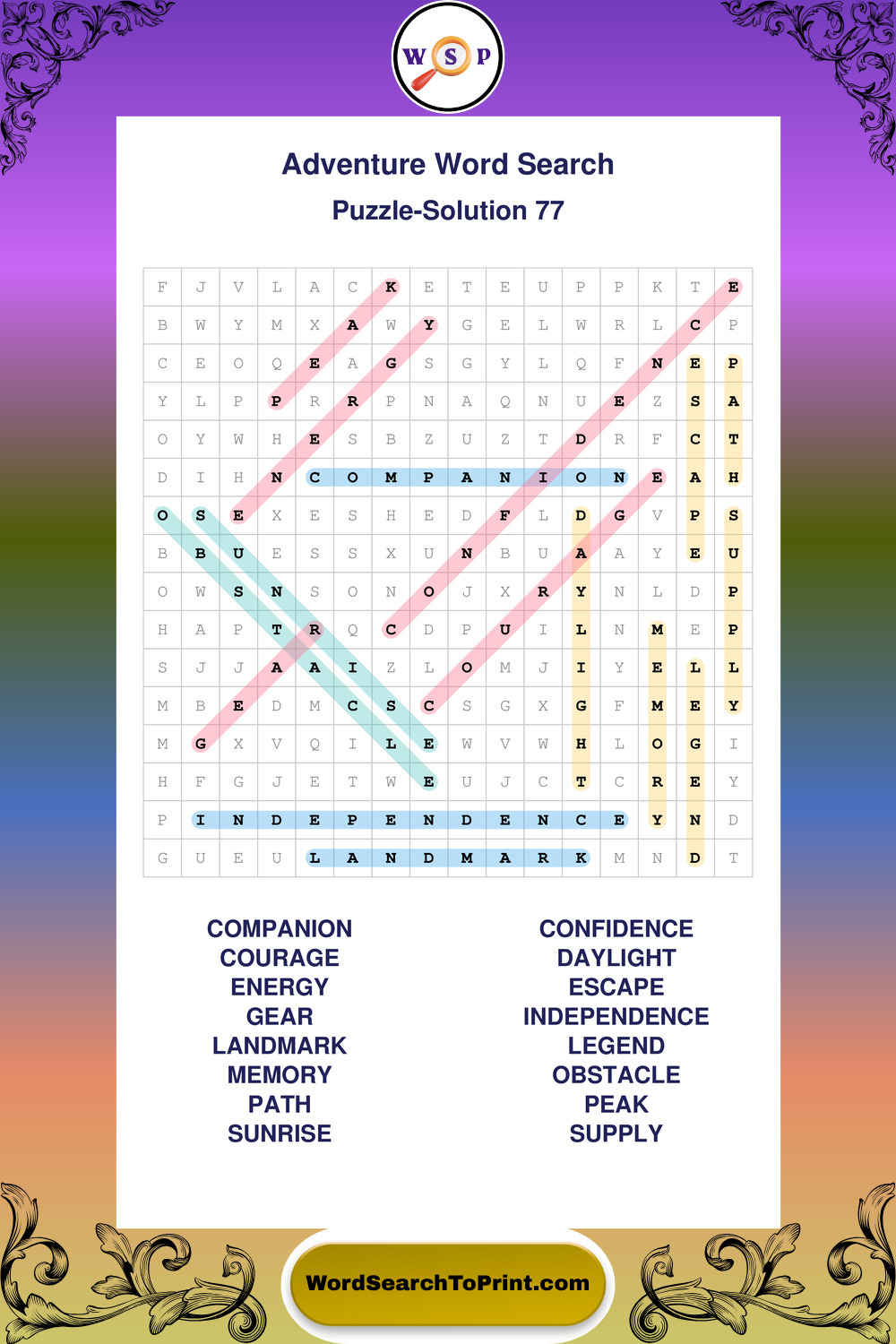 Find easy-to-read large print Adventure wordsearches designed for peaceful focus and simple, enjoyable solving.