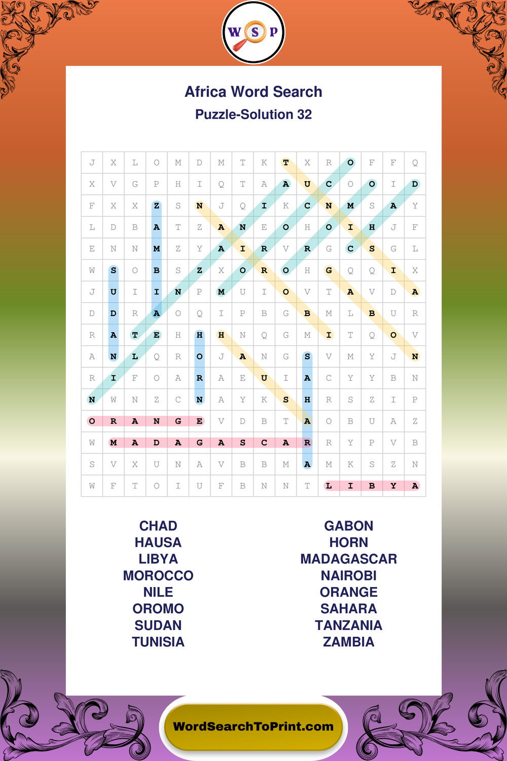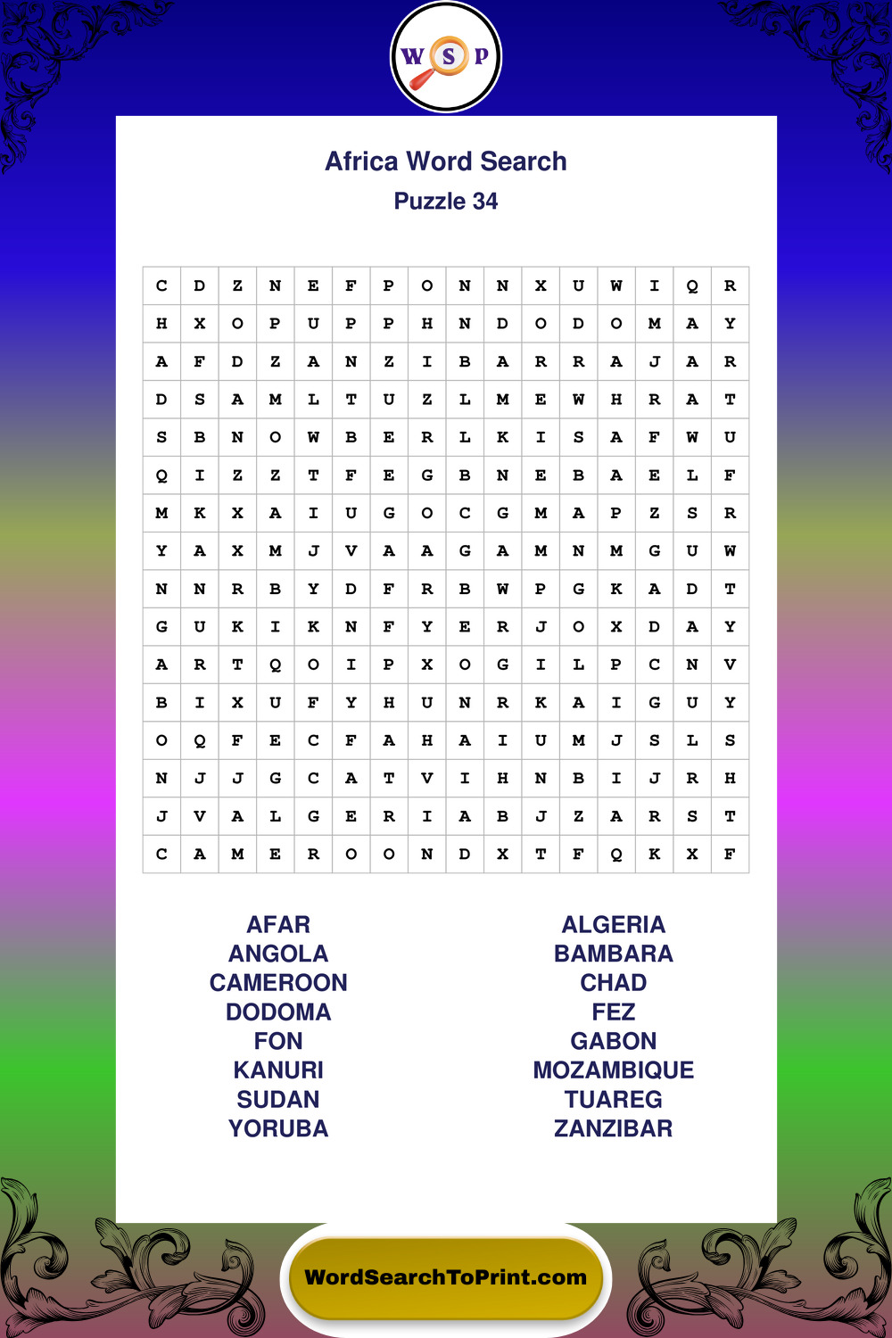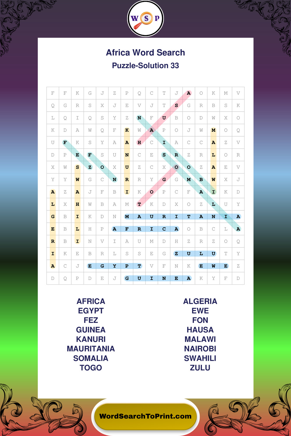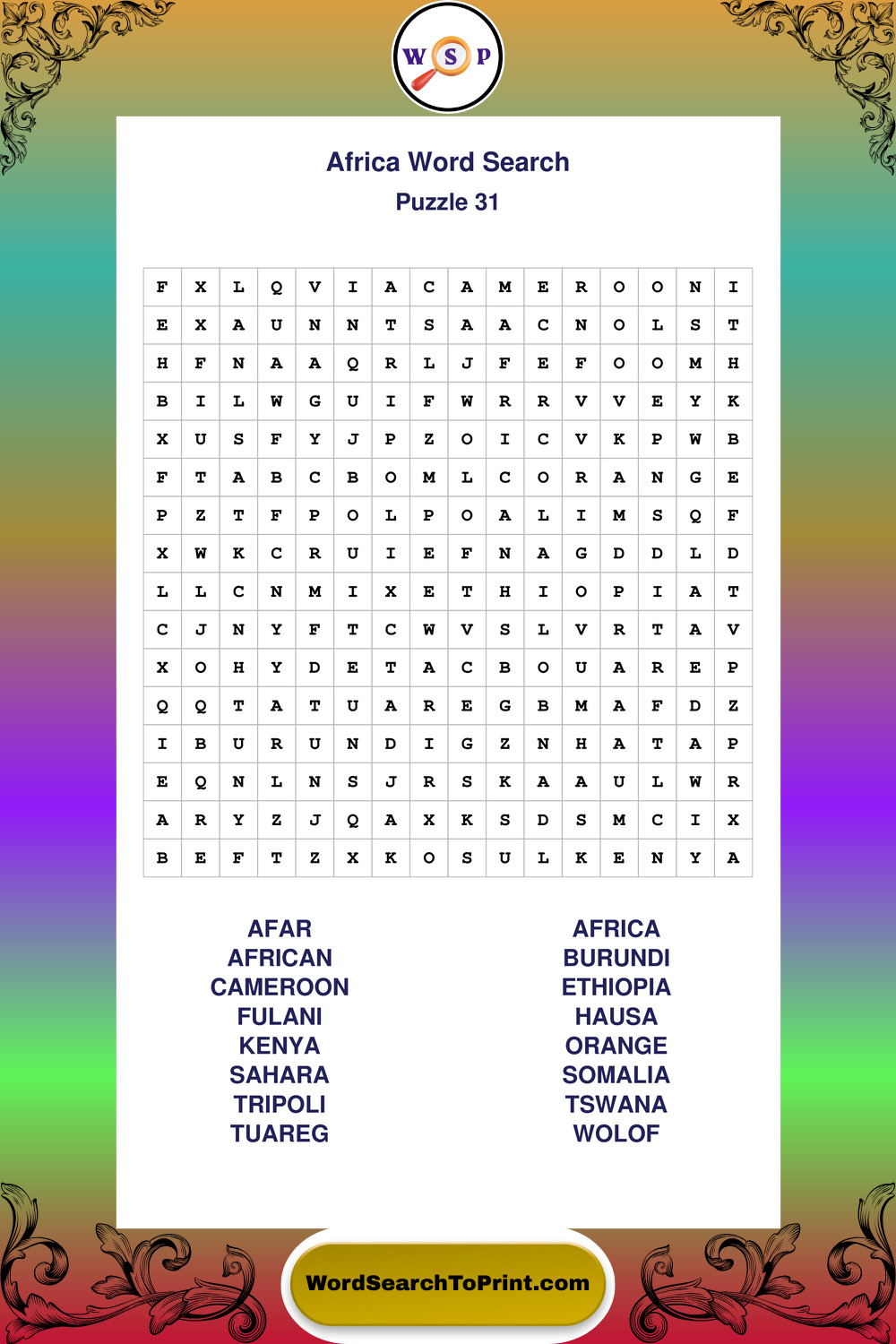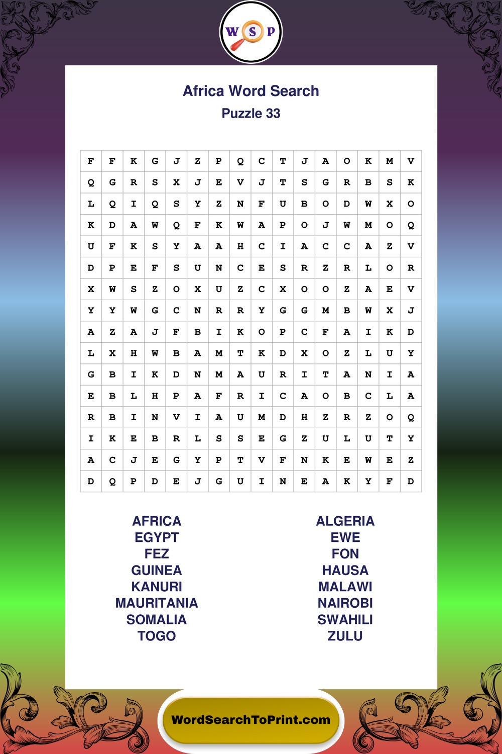 Printable Africa Wordsearch Puzzles