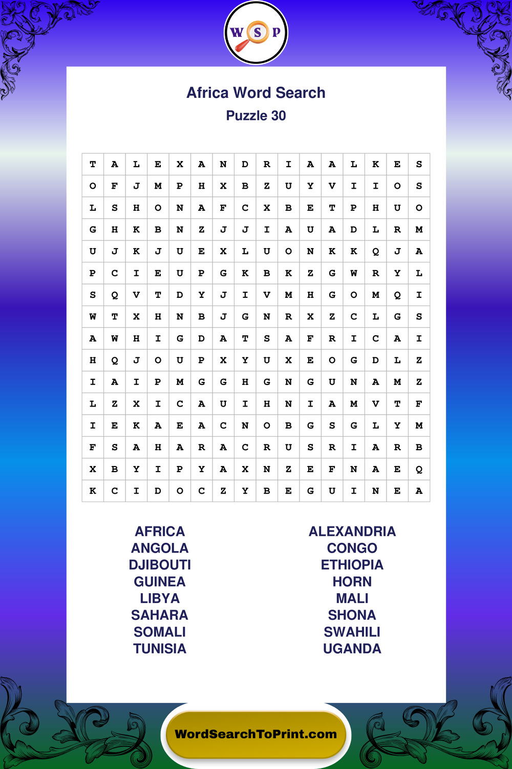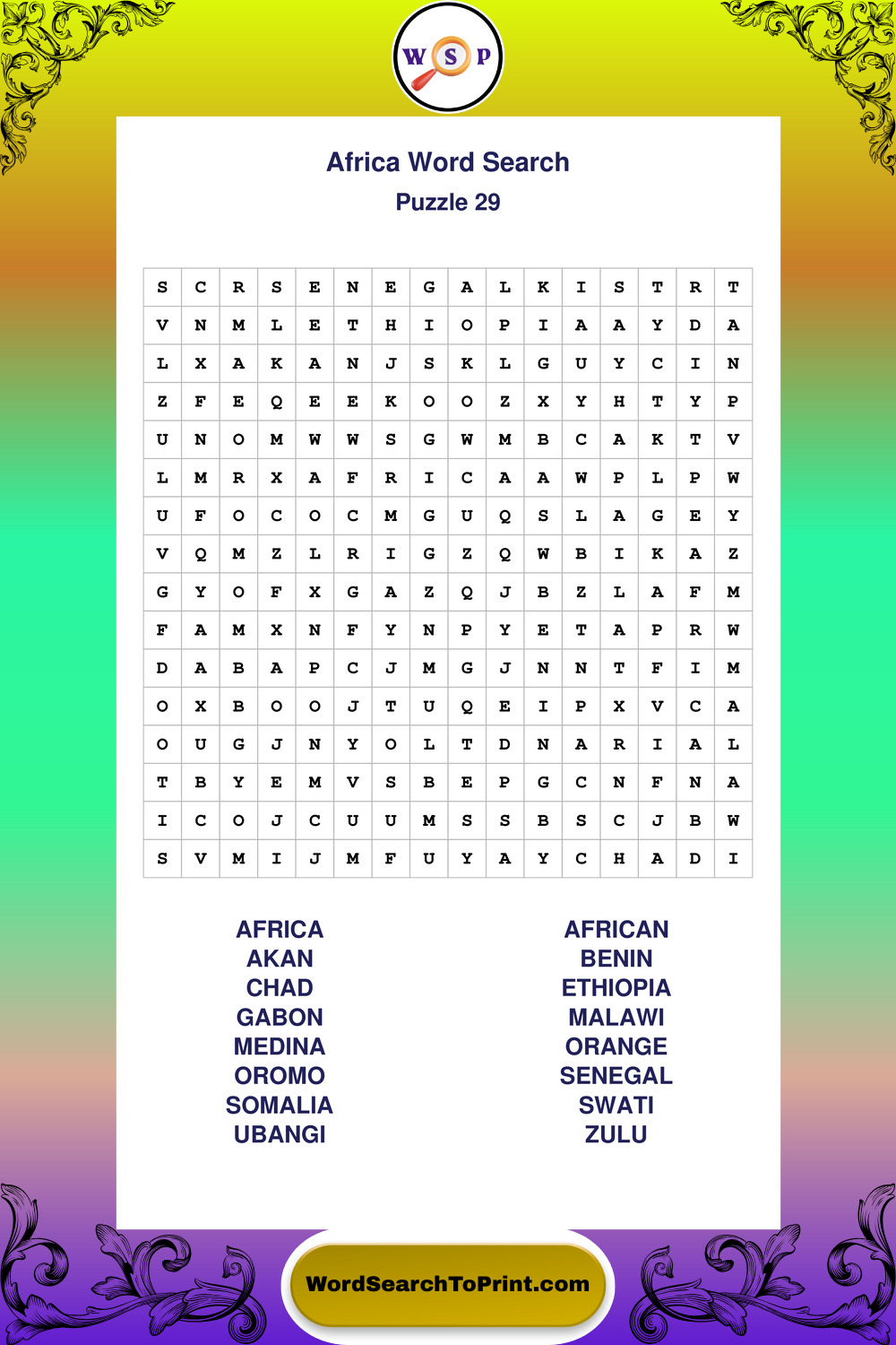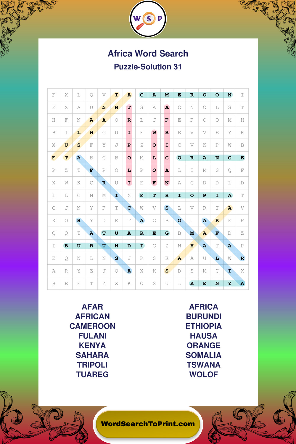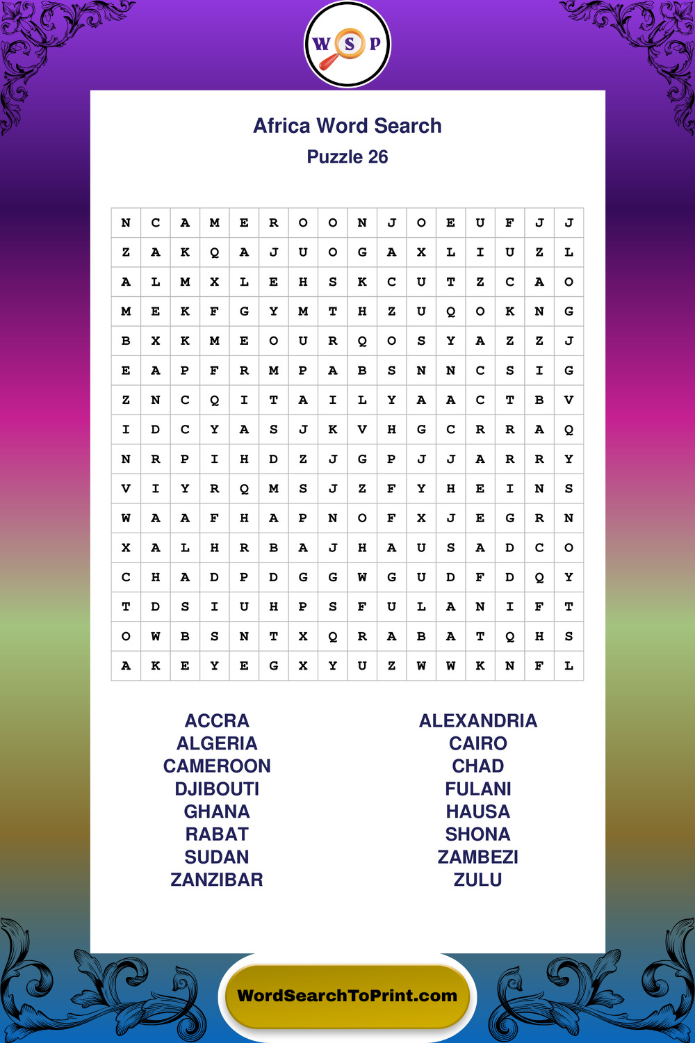 Printable Africa Wordsearch Puzzles