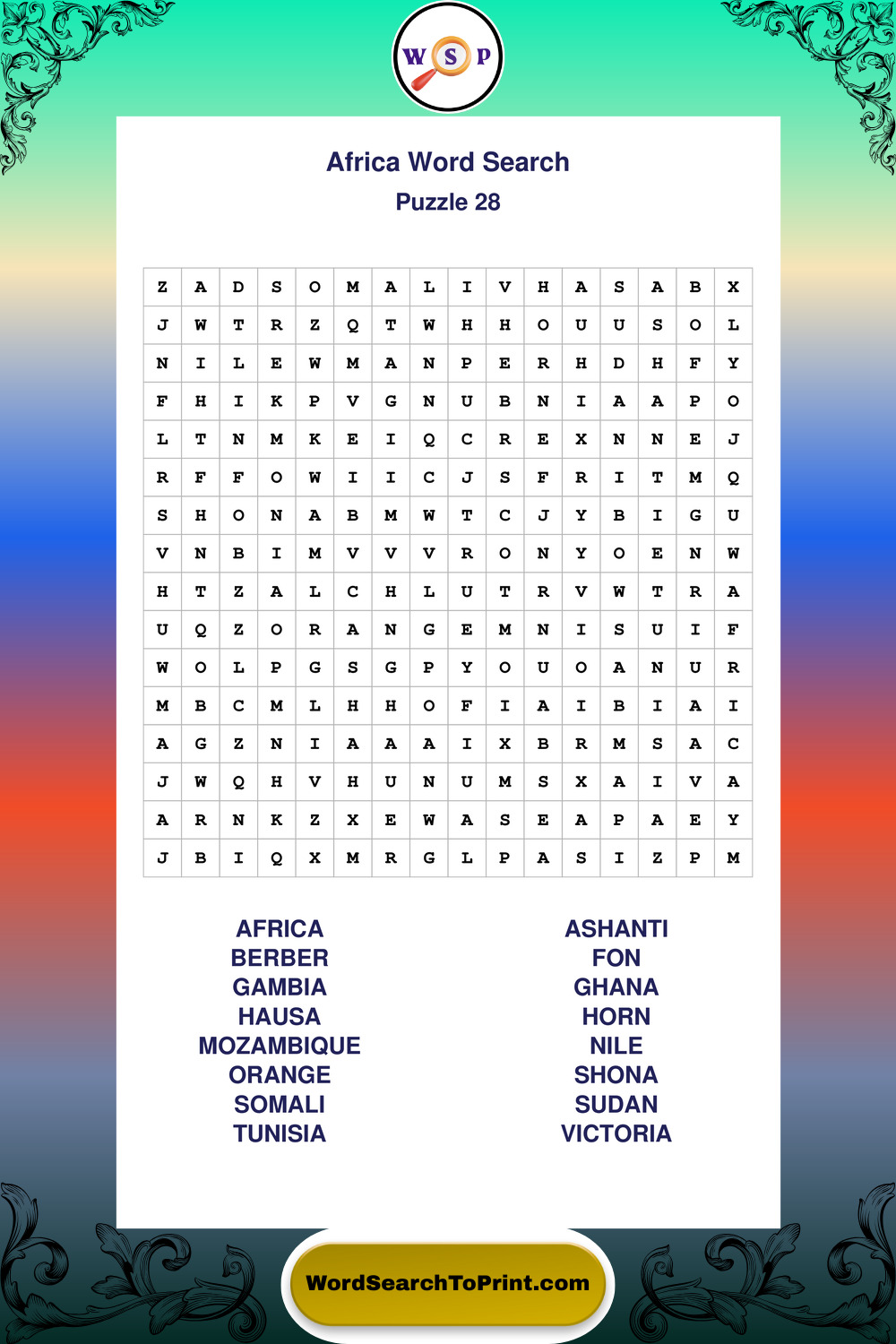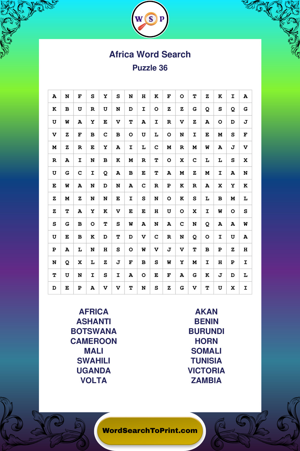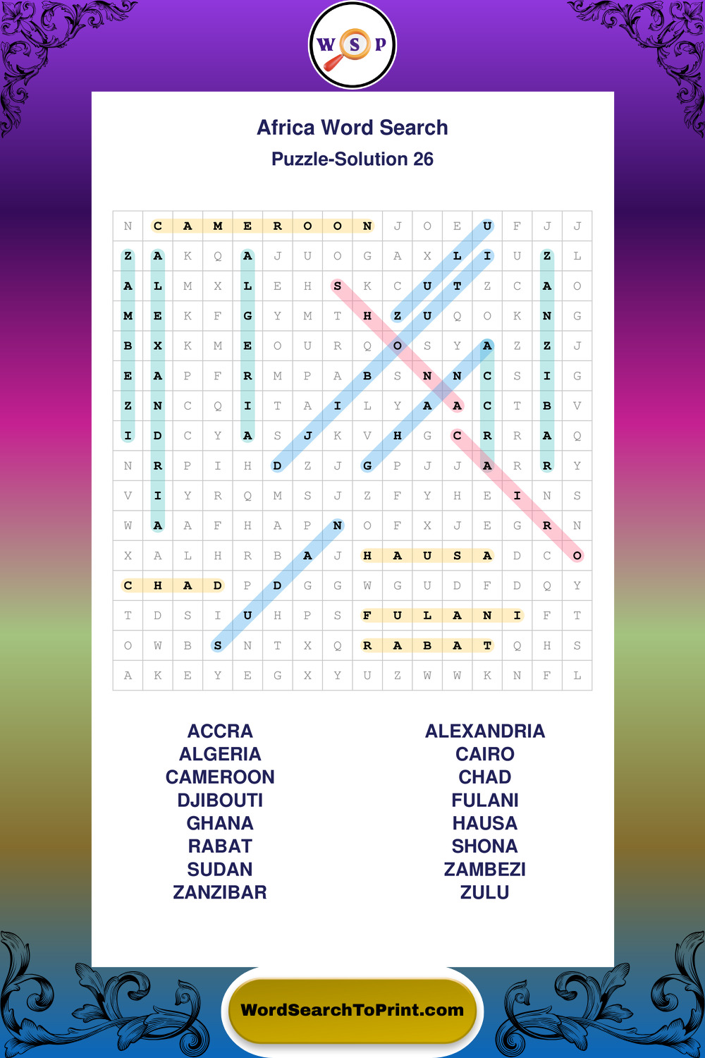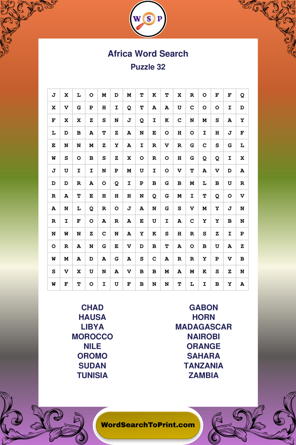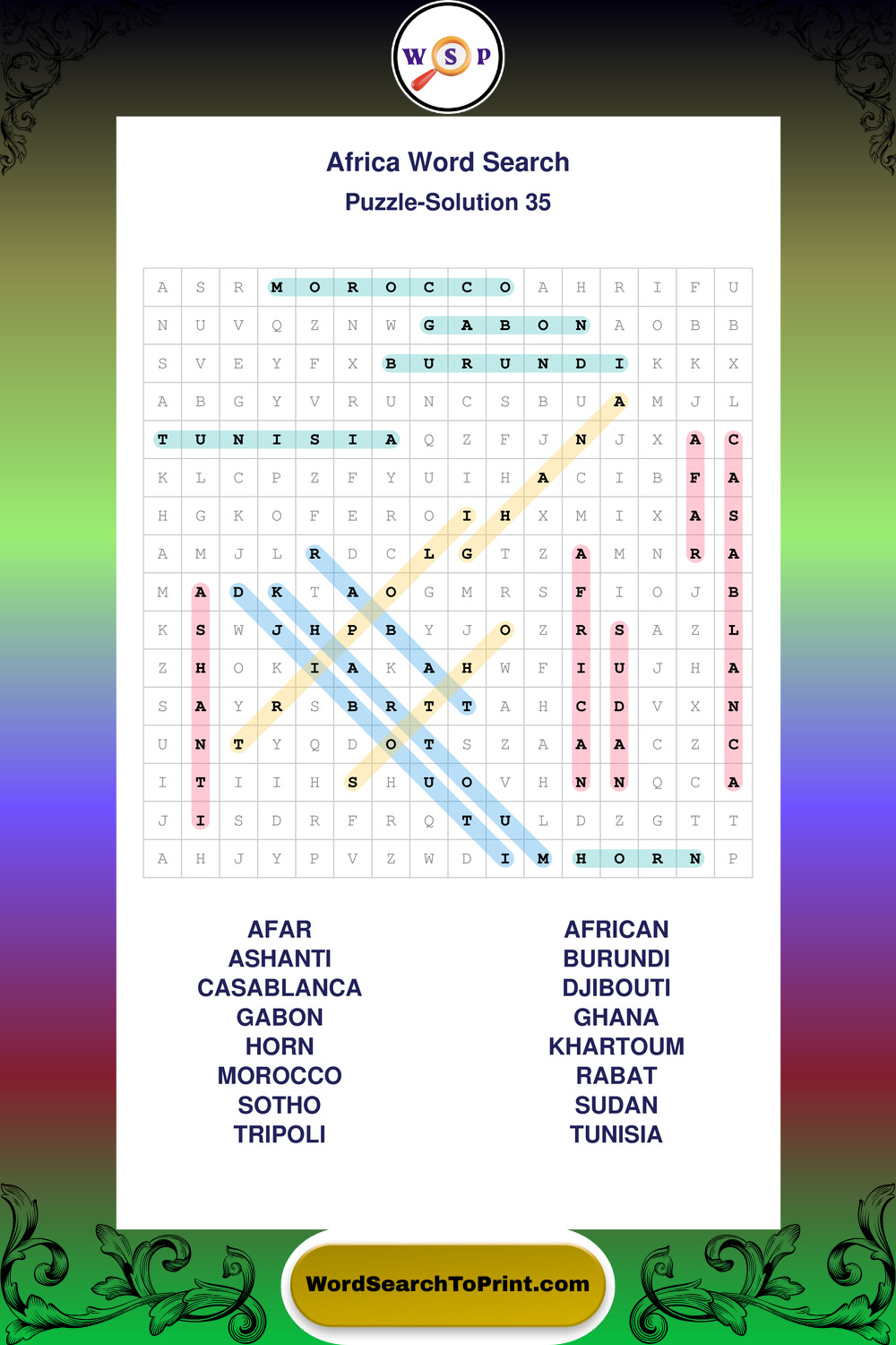 Printable Africa Wordsearch Puzzles