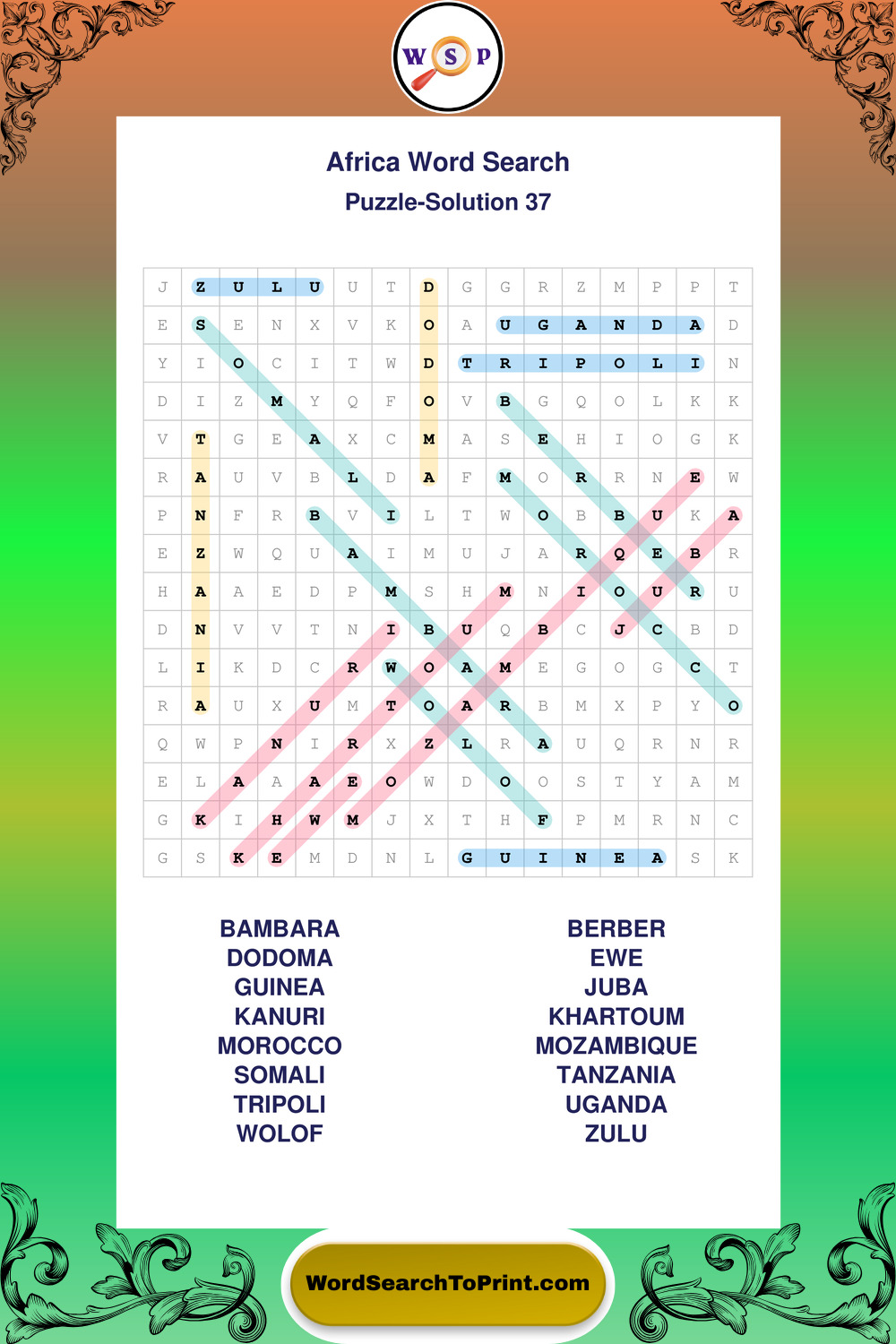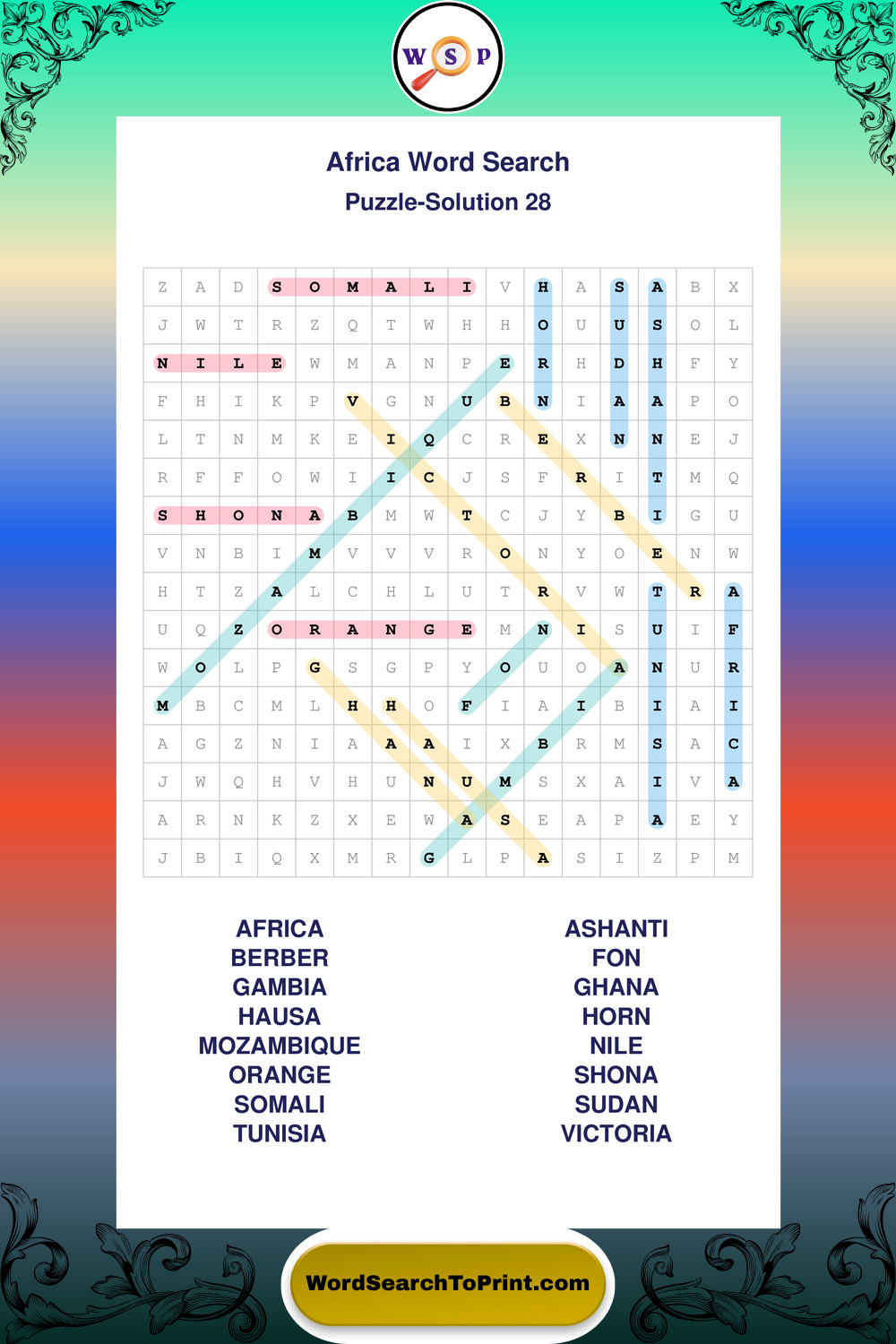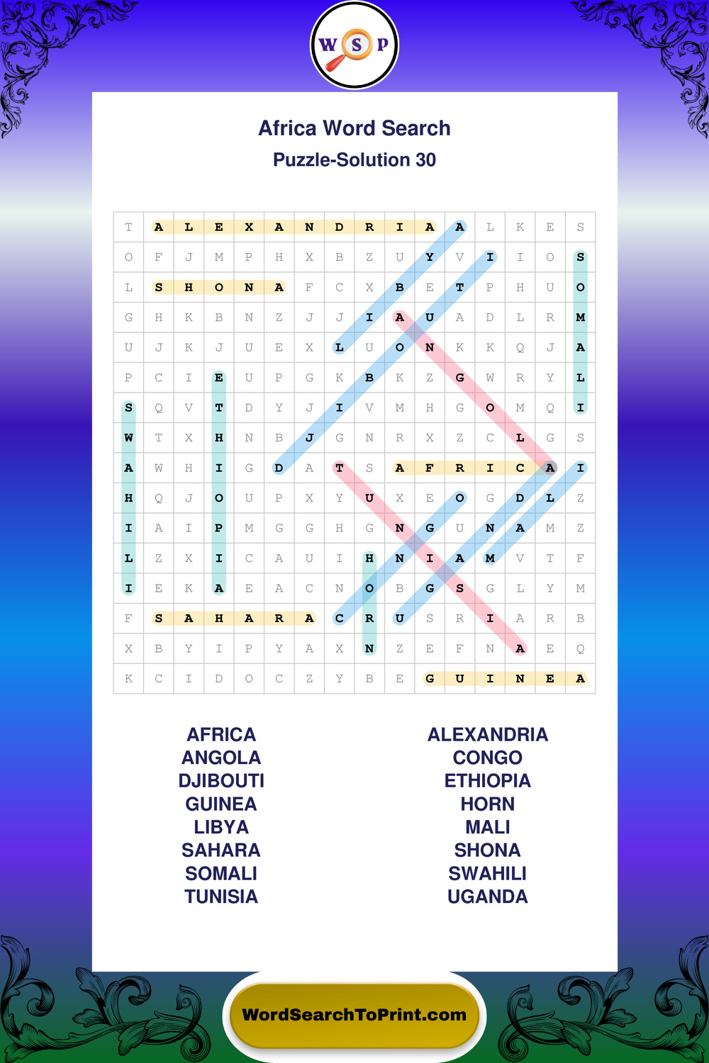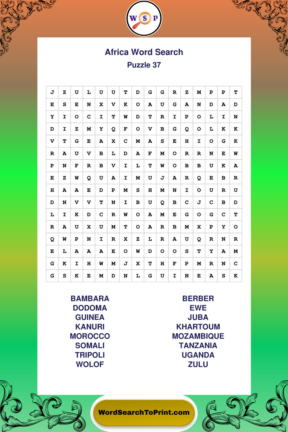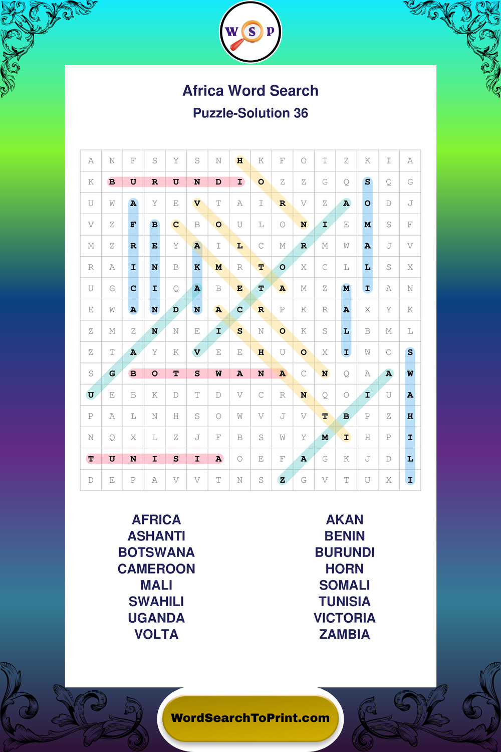 Printable Africa Wordsearch Puzzles
