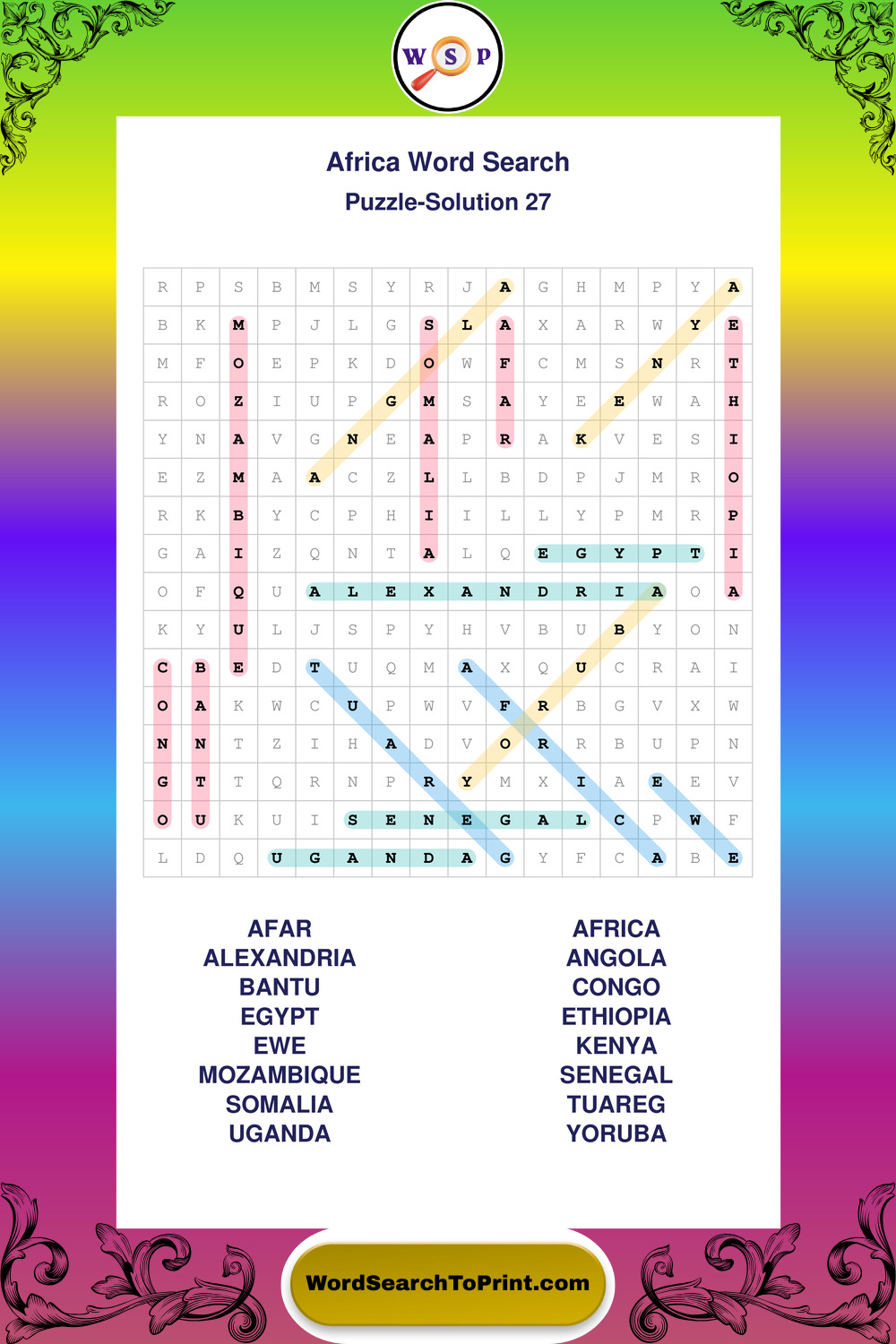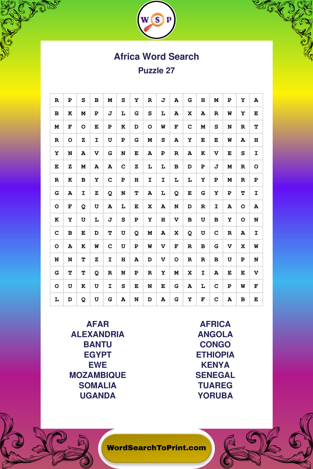 Find easy-to-read large print Africa wordsearches designed for peaceful focus and simple, enjoyable solving.