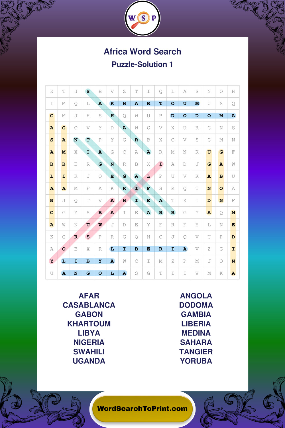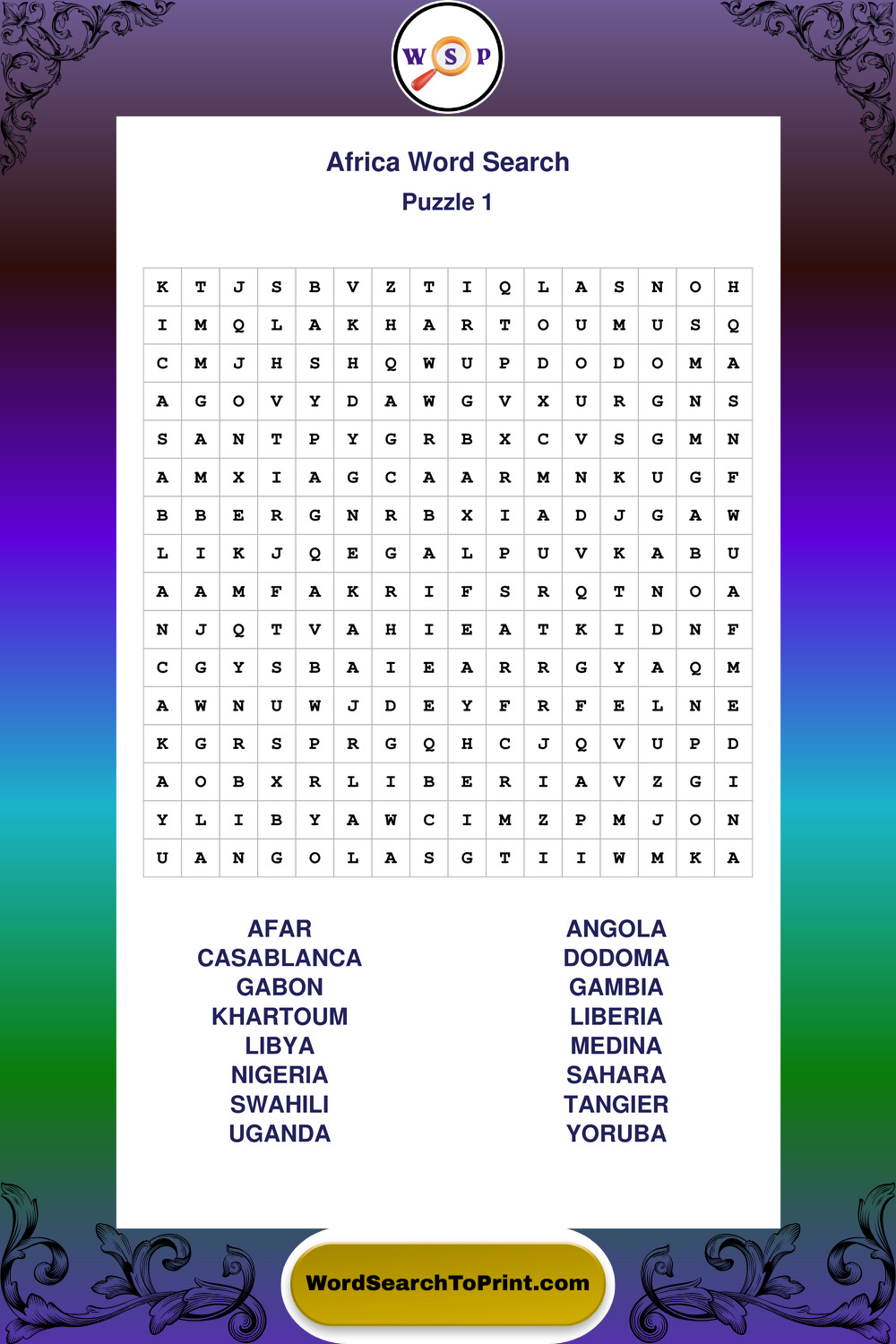 Printable Africa Wordsearch Puzzles