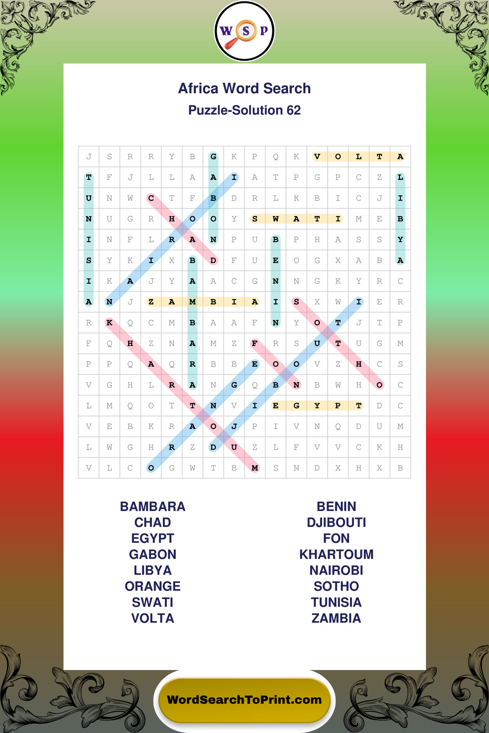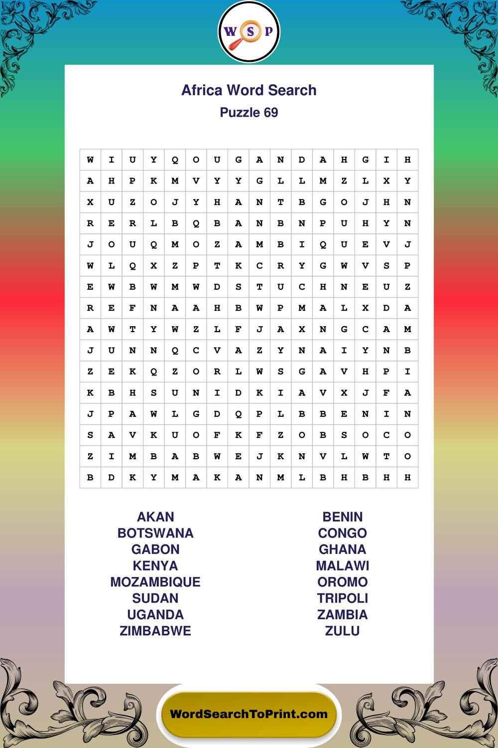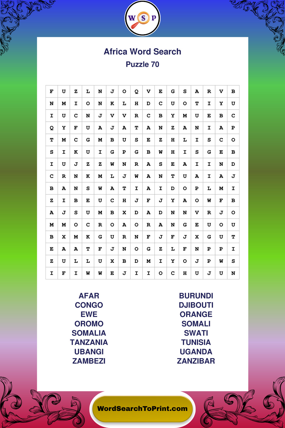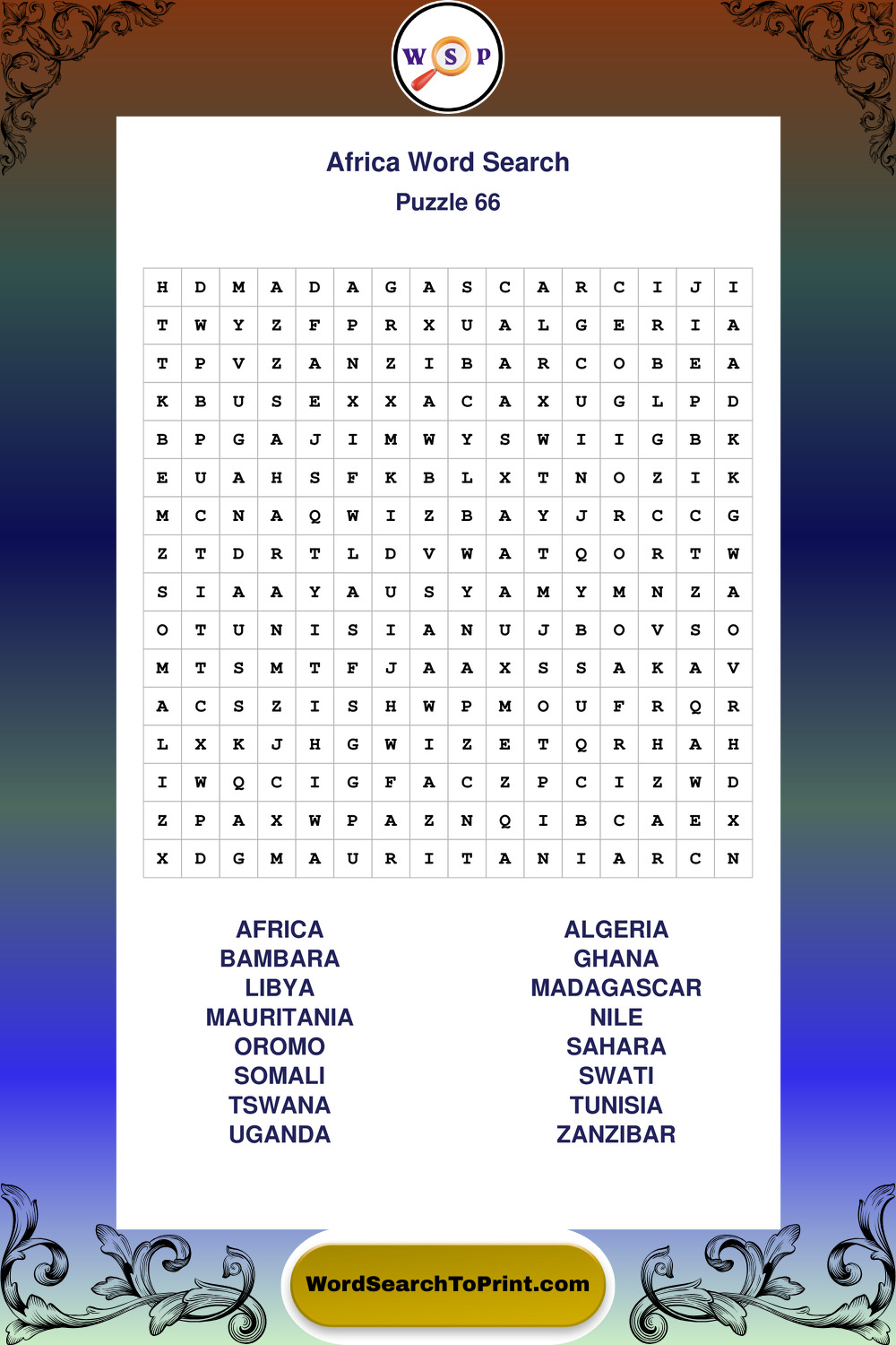 Printable Africa Wordsearch Puzzles