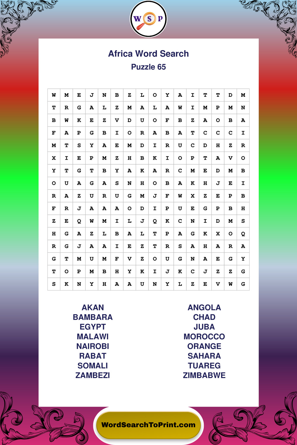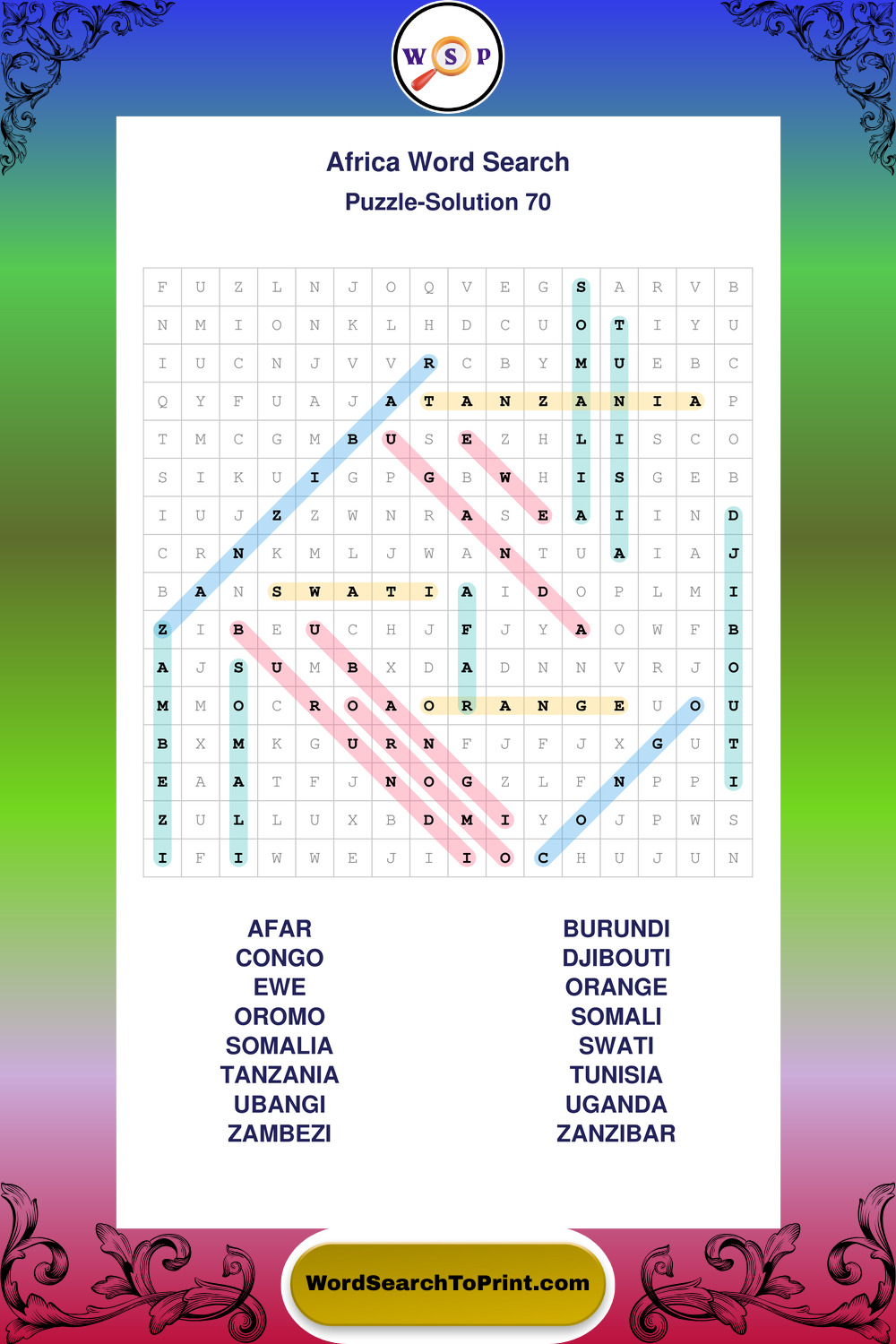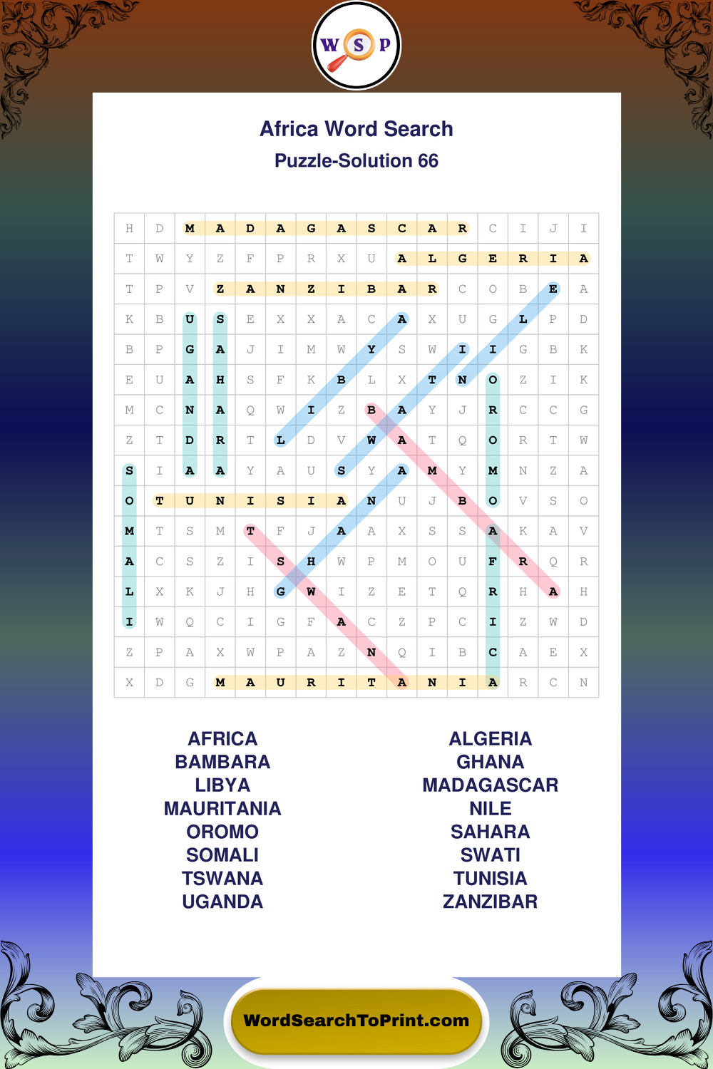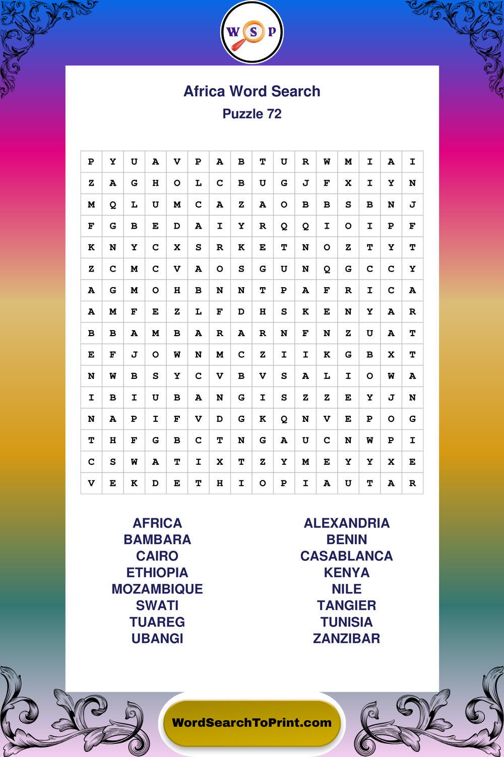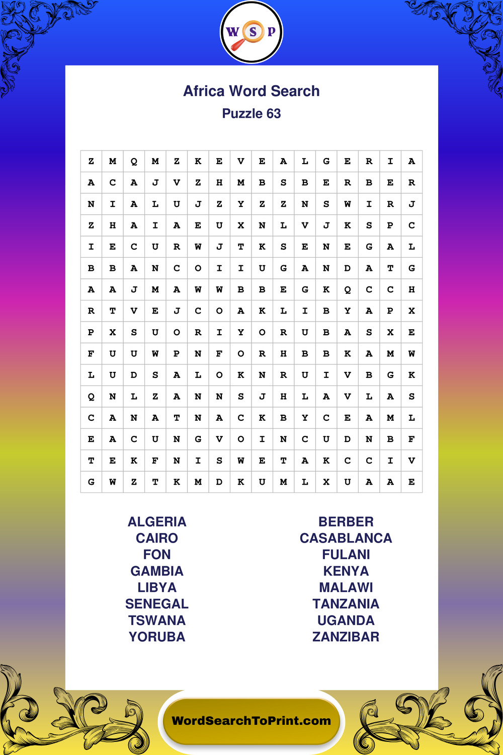 Printable Africa Wordsearch Puzzles