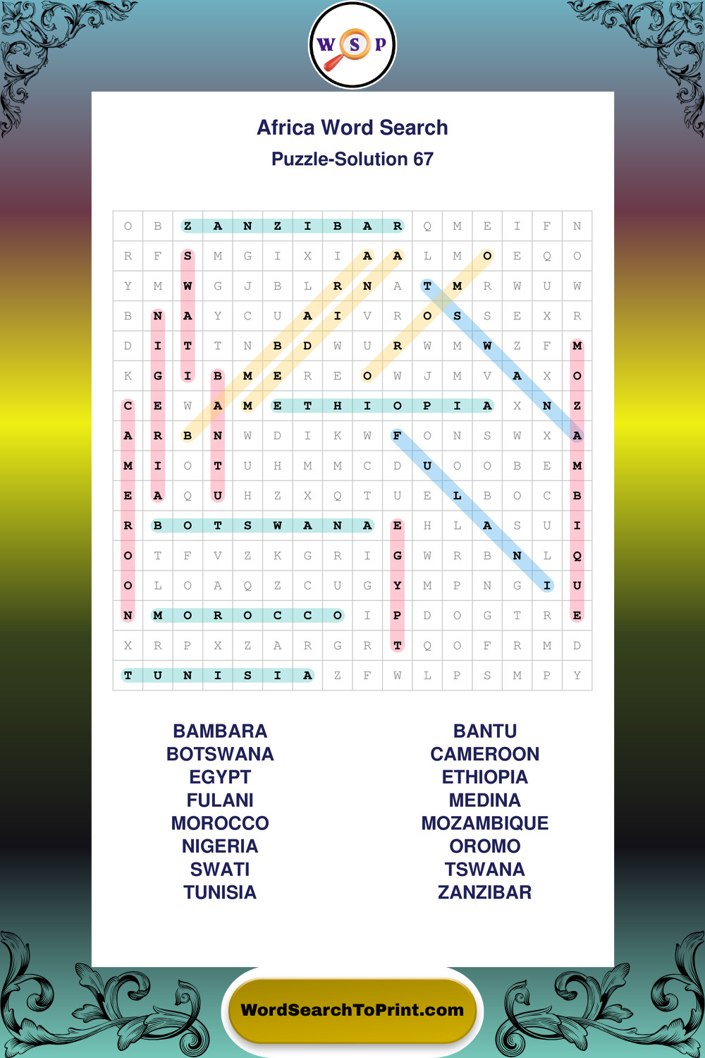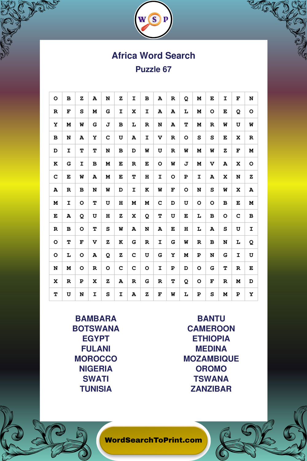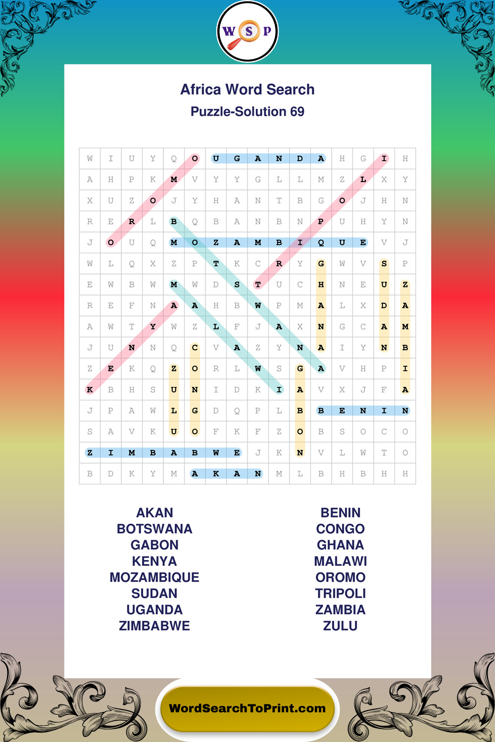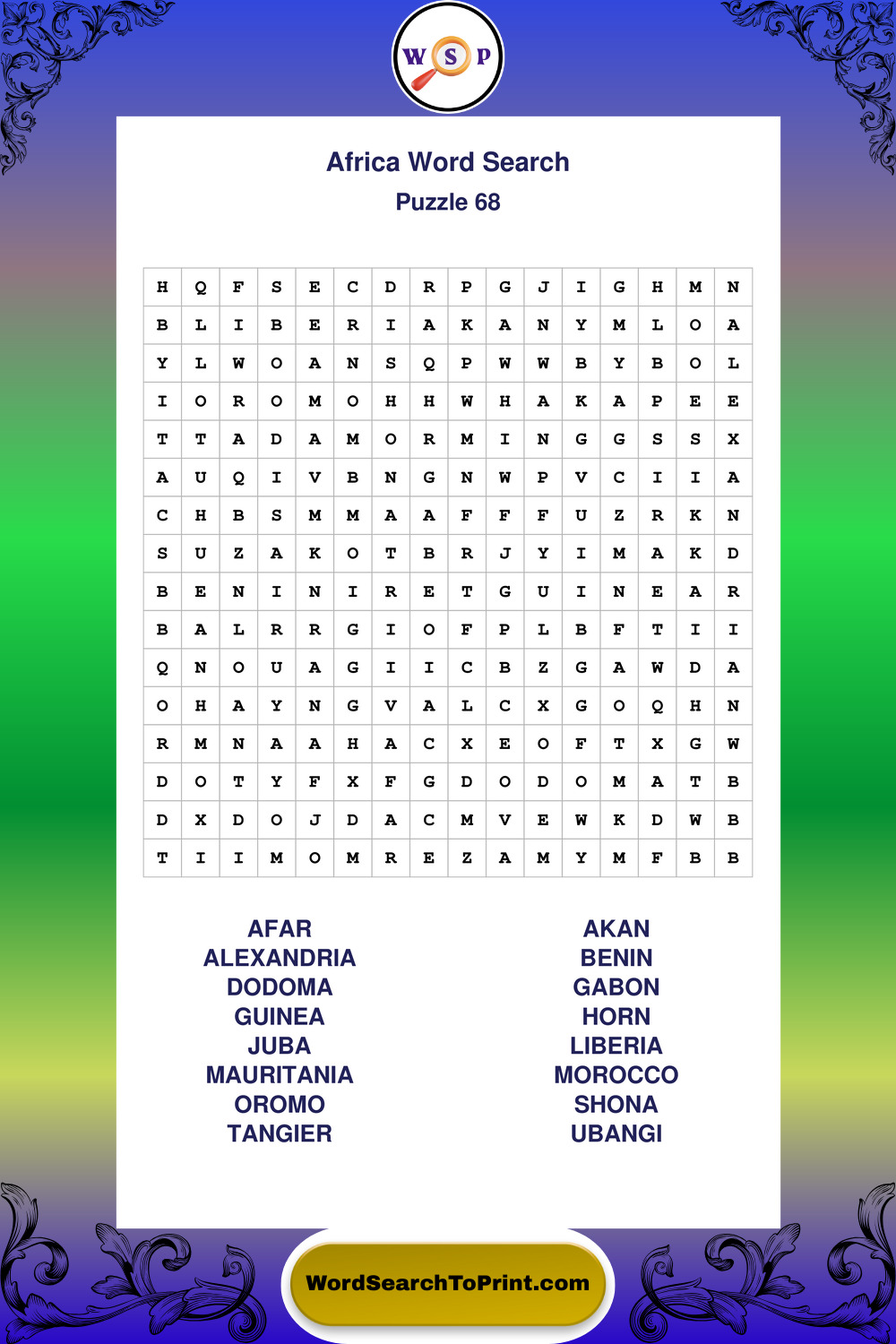 Printable Africa Wordsearch Puzzles