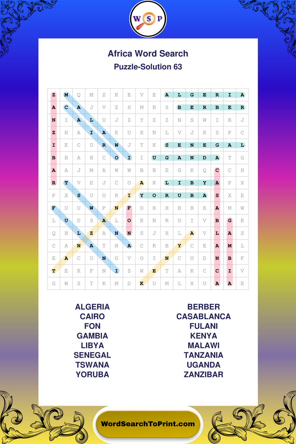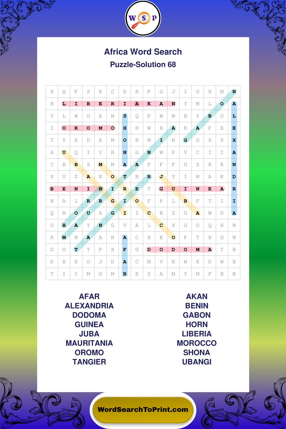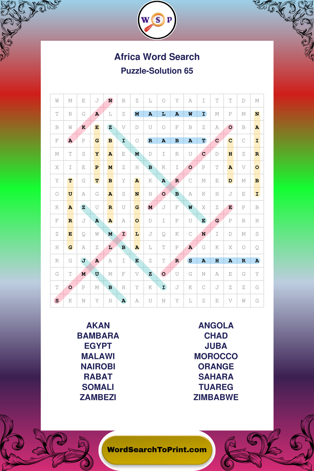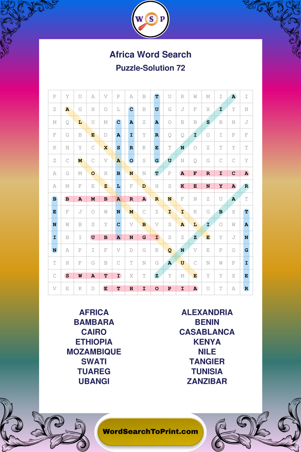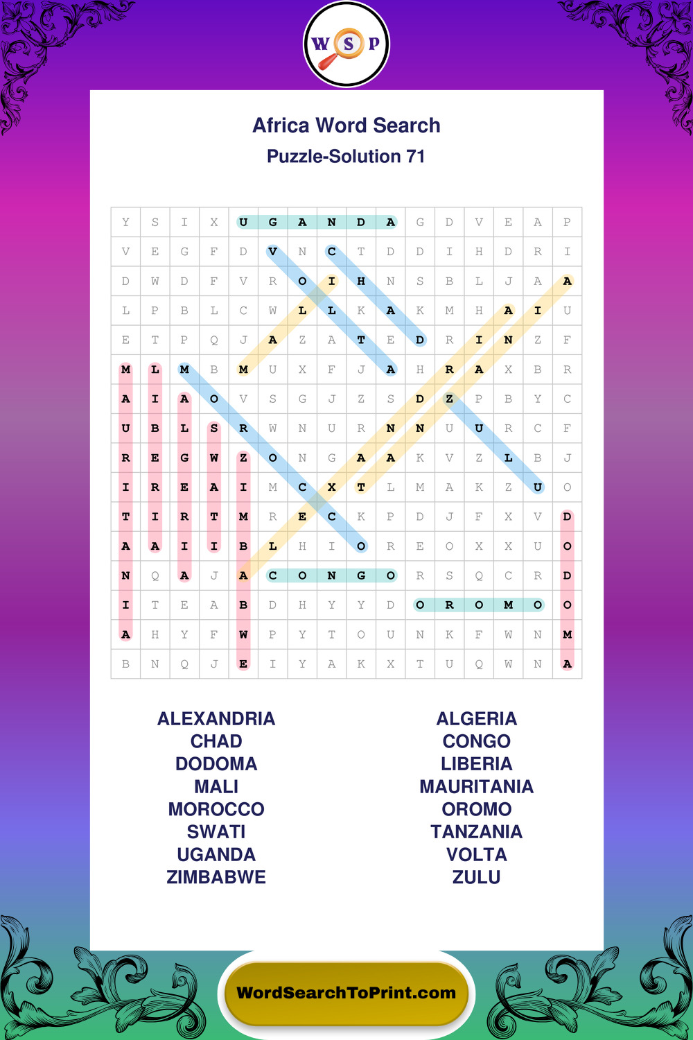 Printable Africa Wordsearch Puzzles