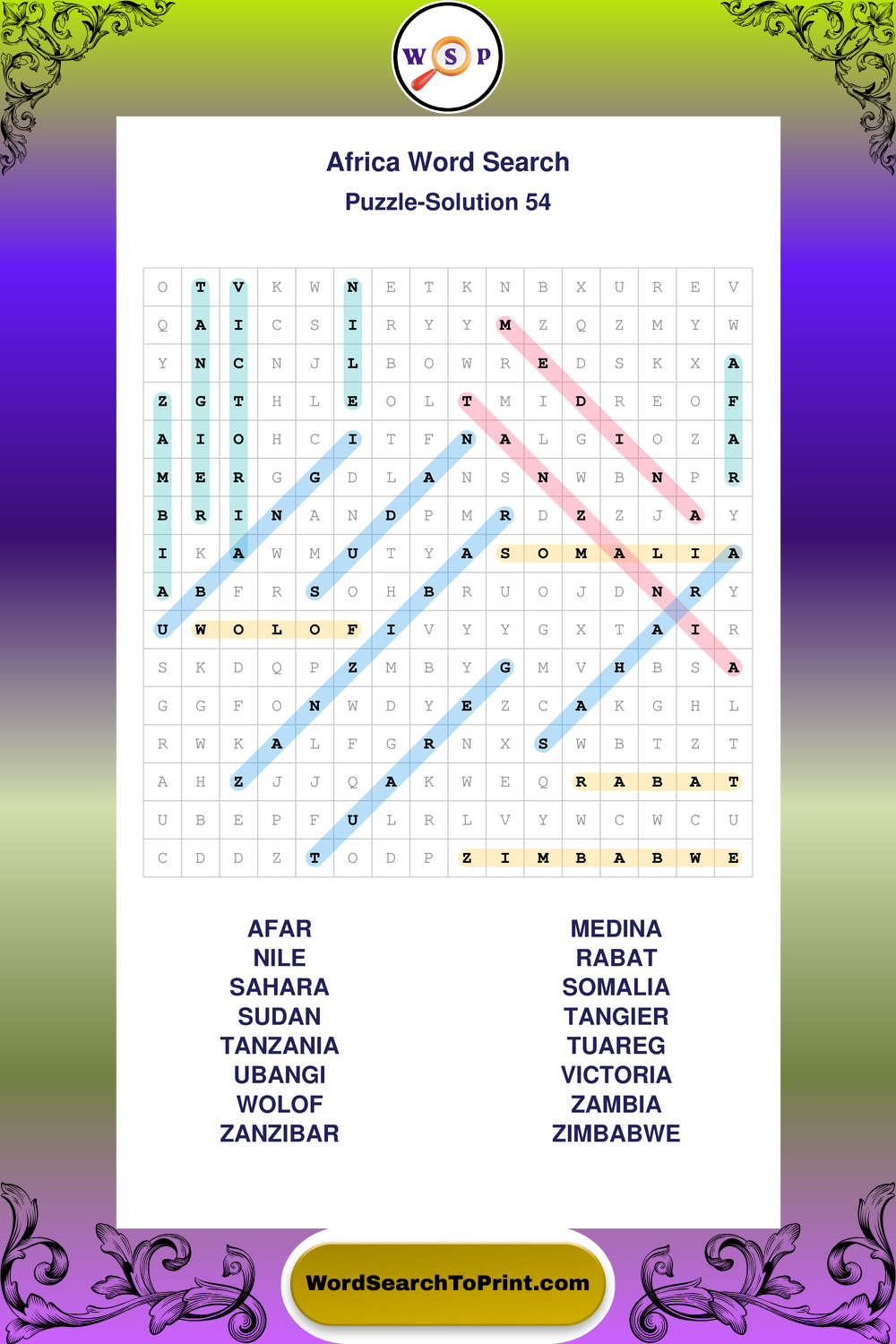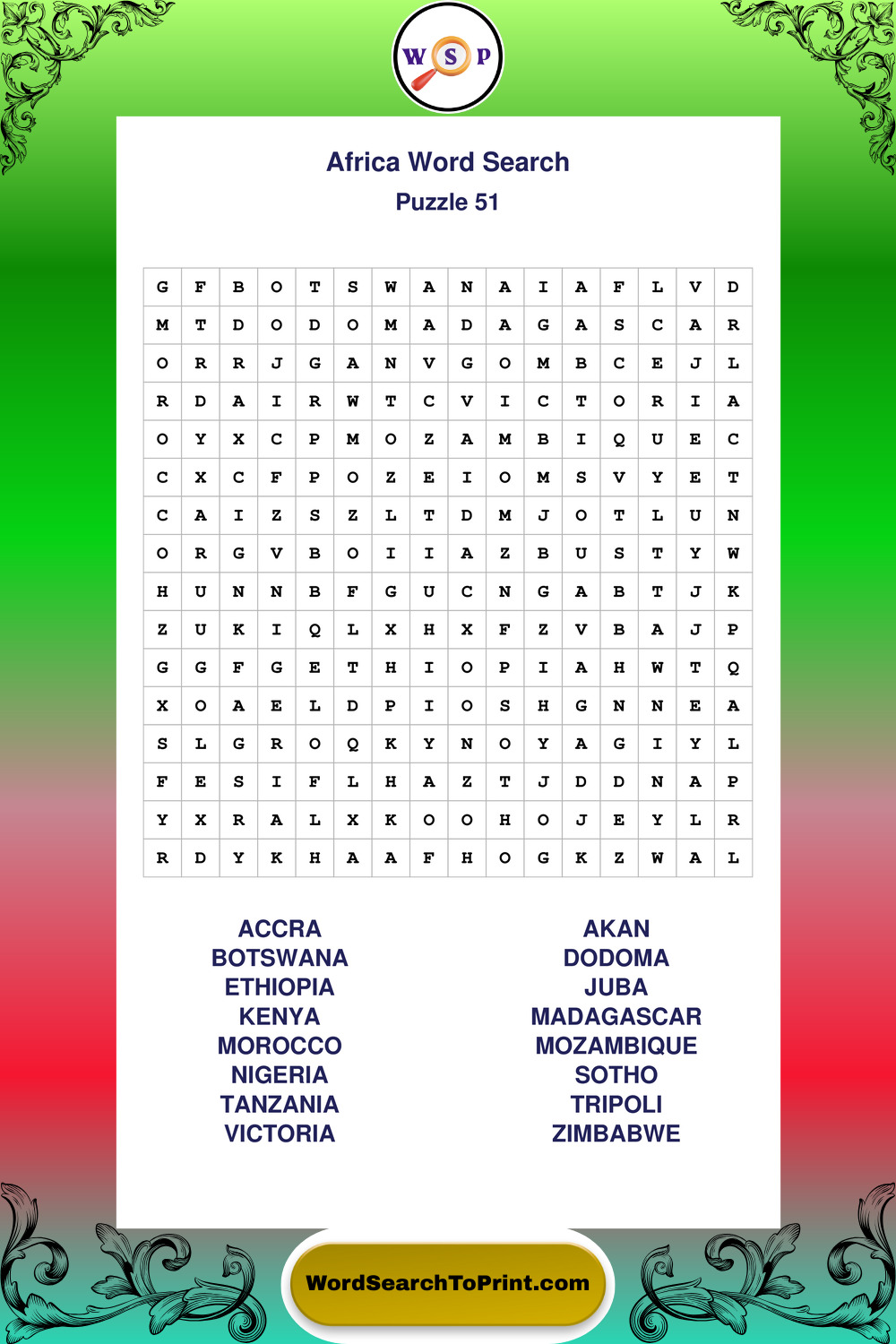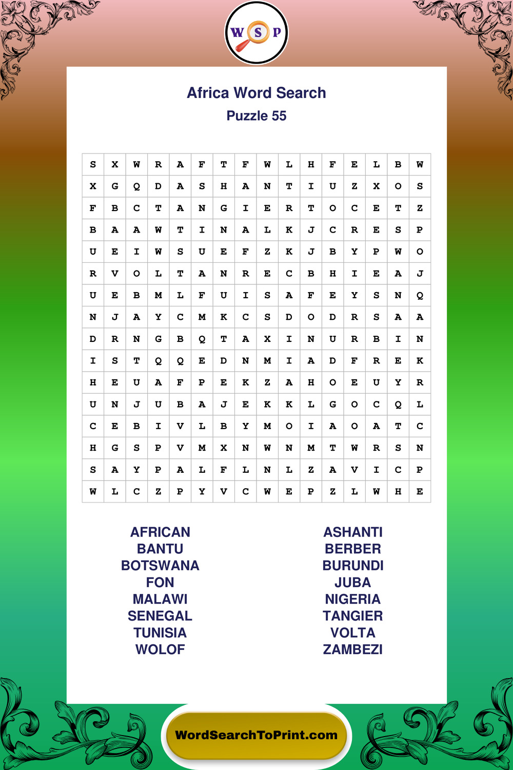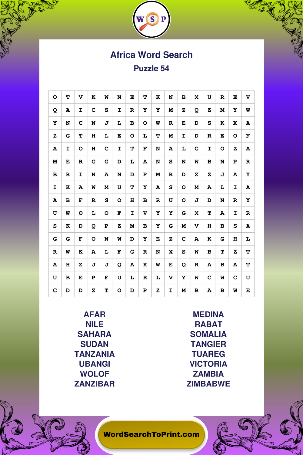 Printable Africa Wordsearch Puzzles