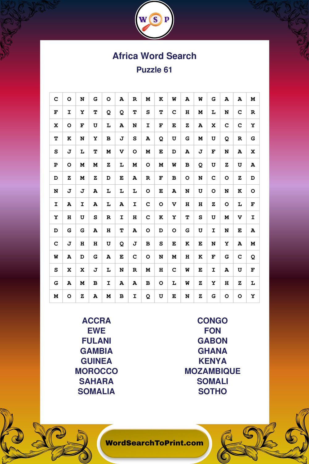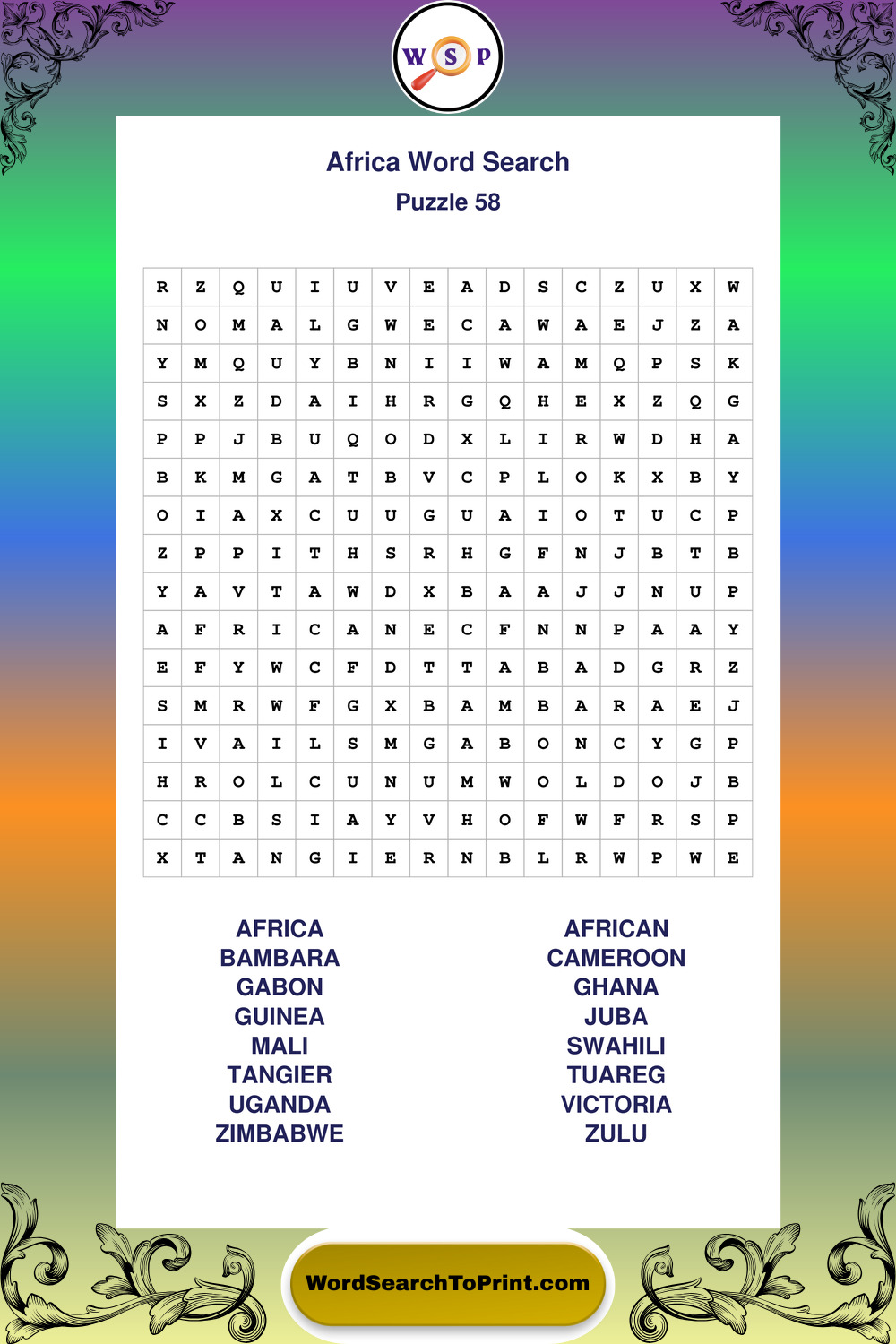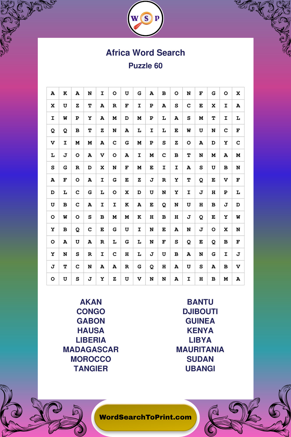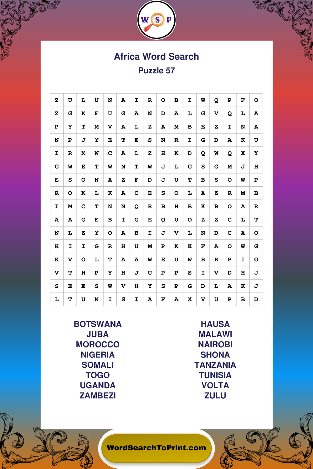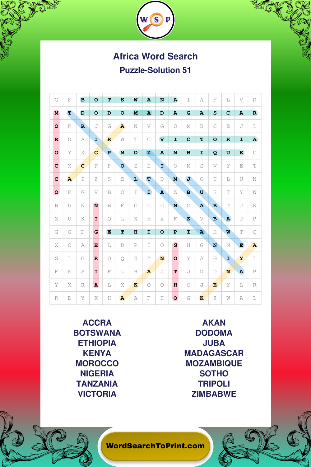 Printable Africa Wordsearch Puzzles